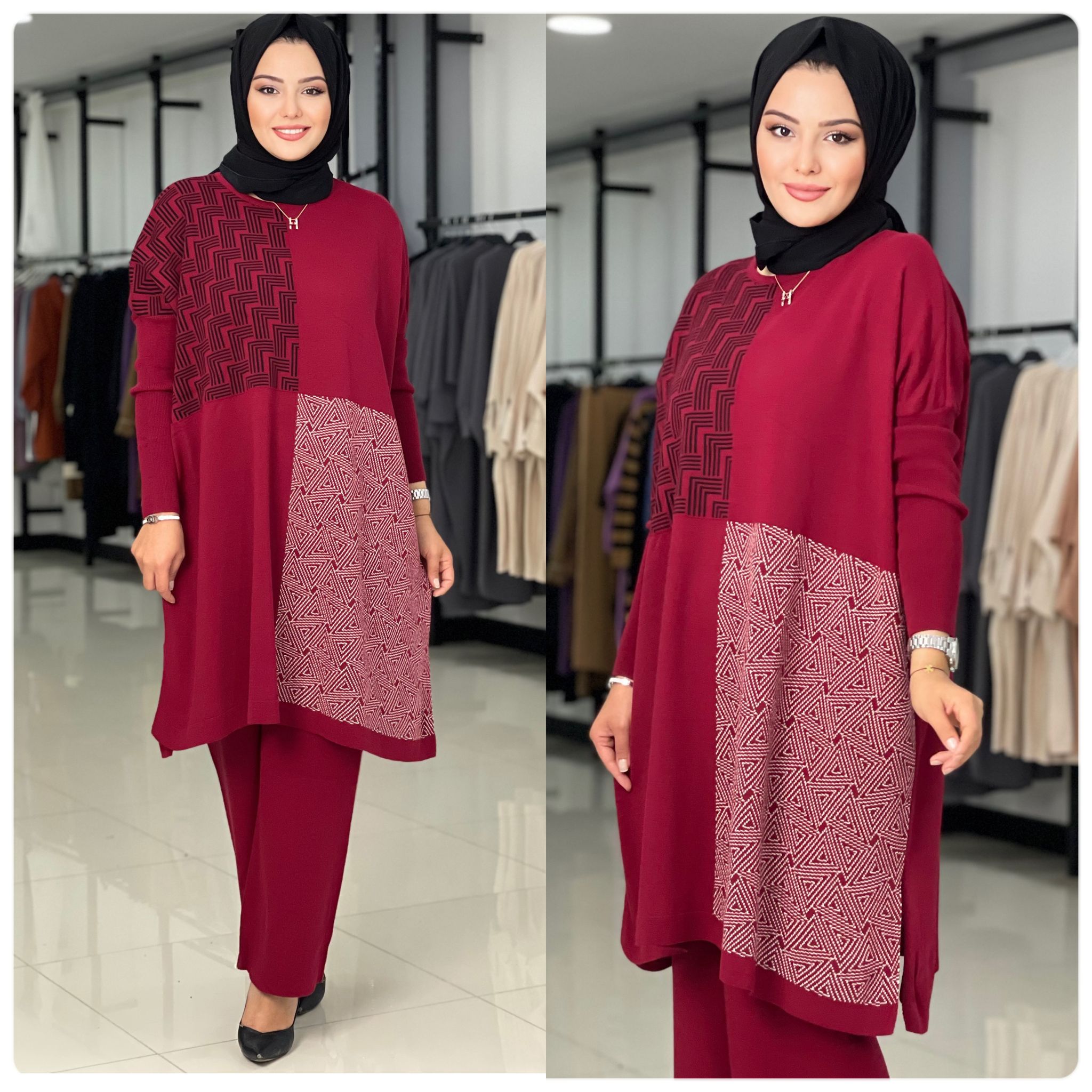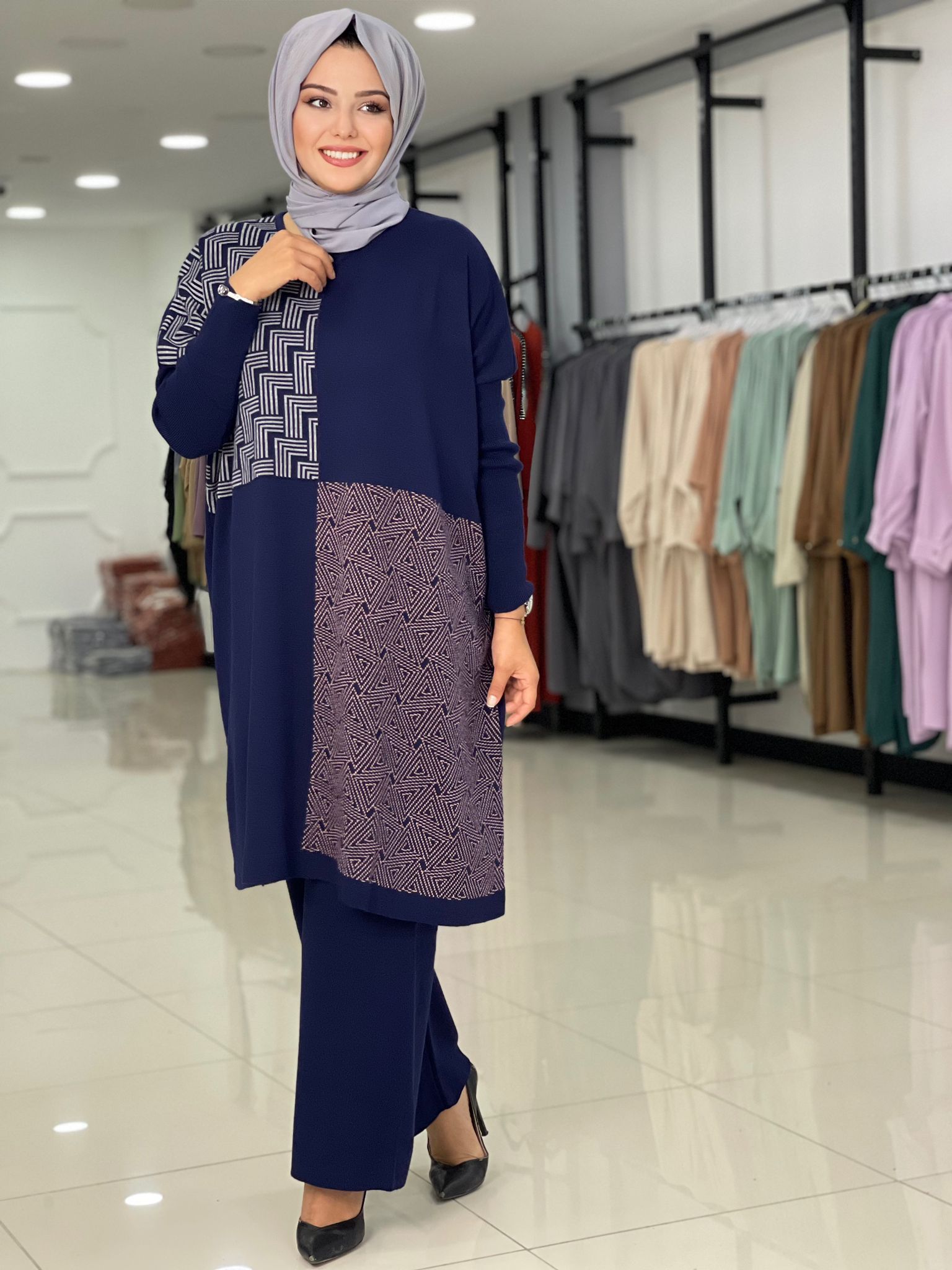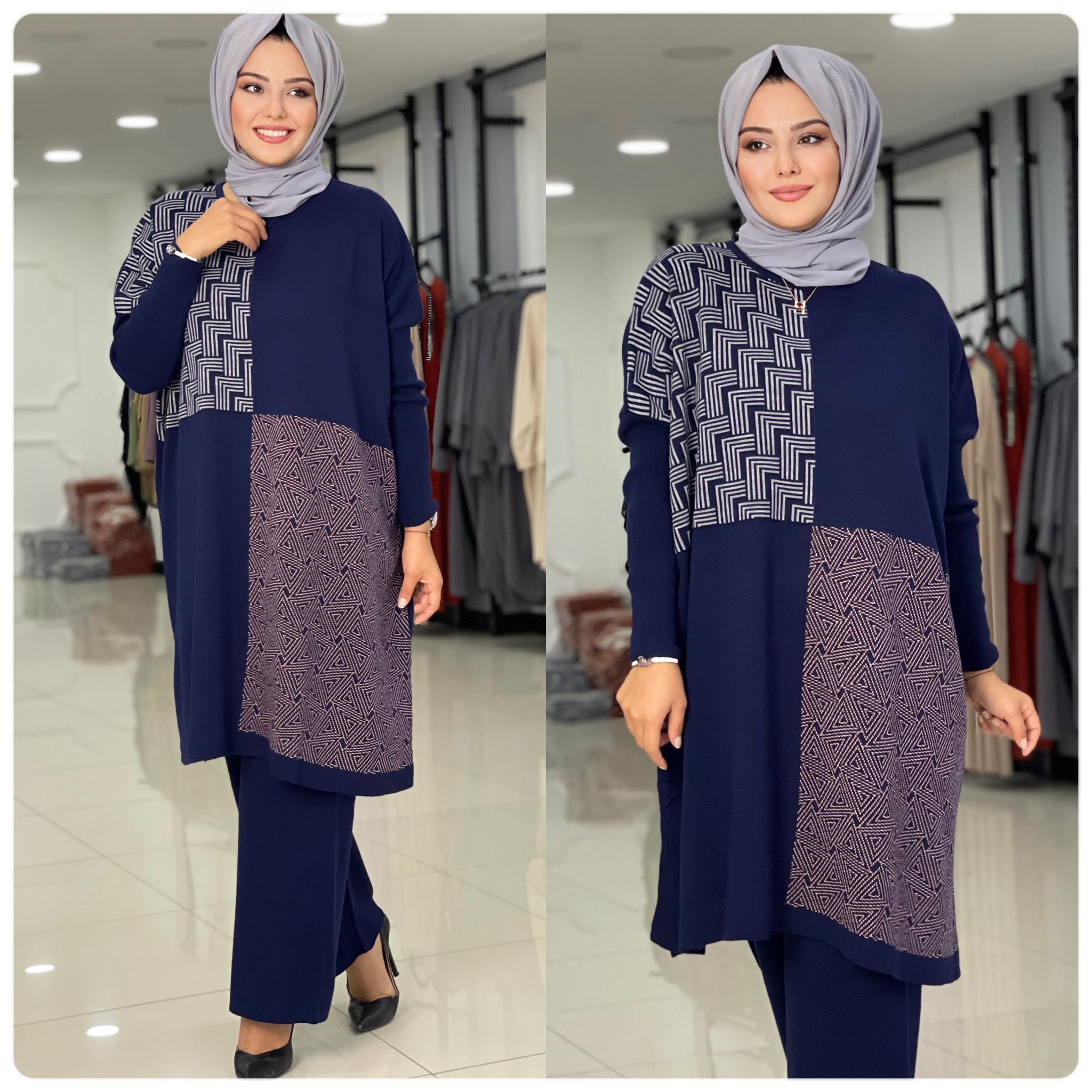 Birbirinden güzel renkleriyle cep detay Aksu triko takım