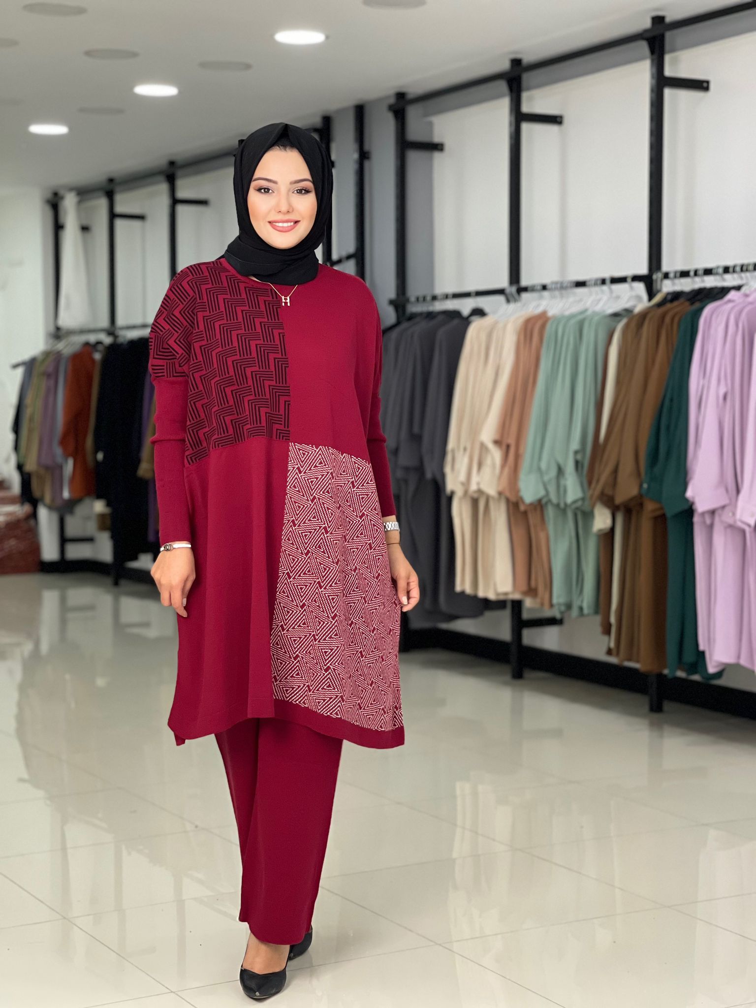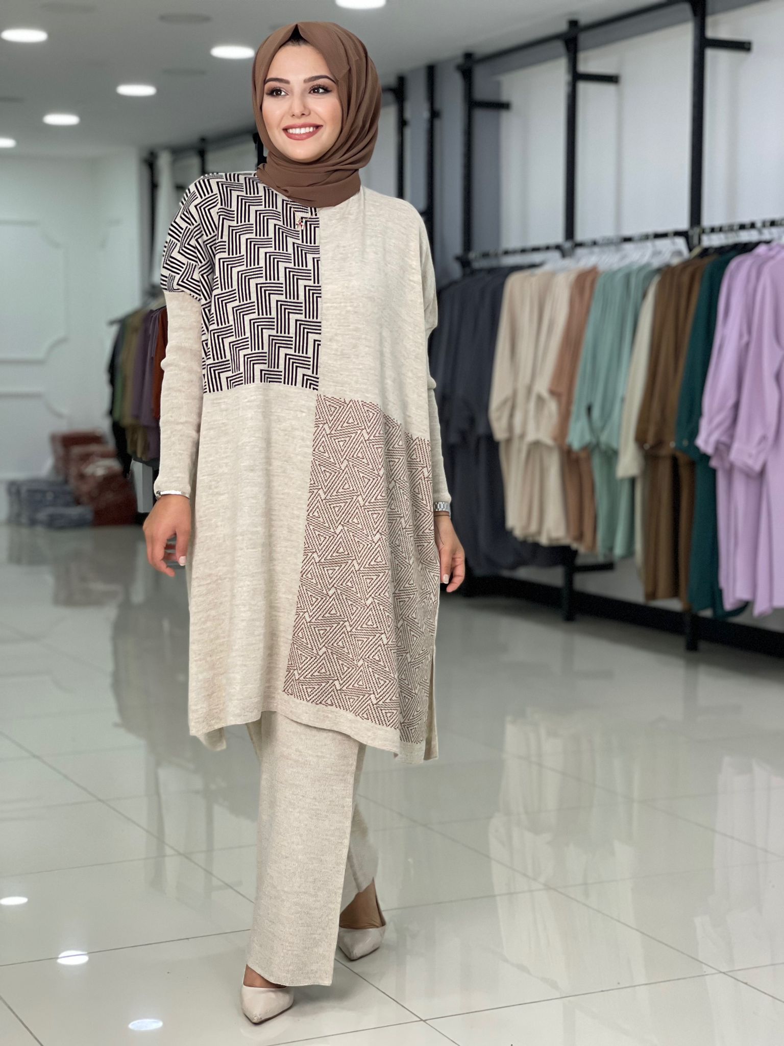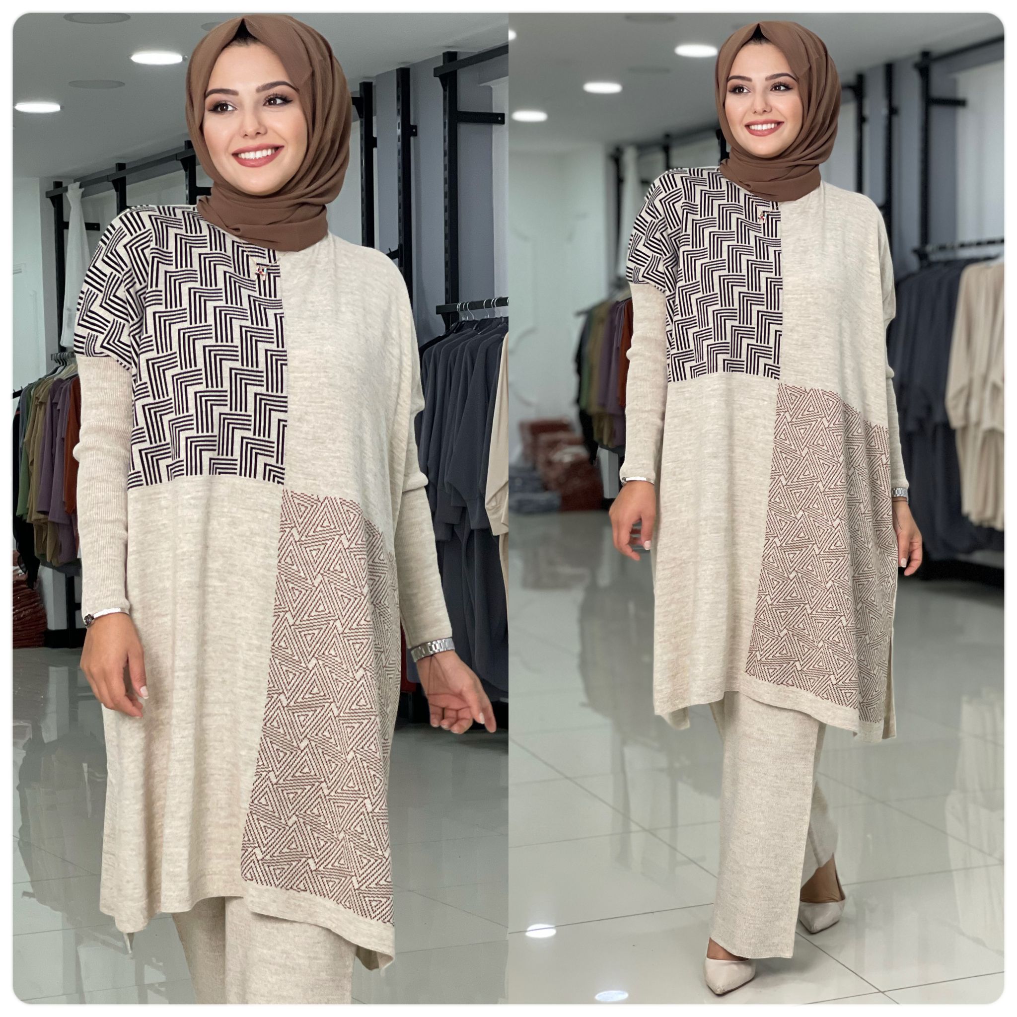 Birbirinden güzel renkleriyle cep detay Aksu triko takım