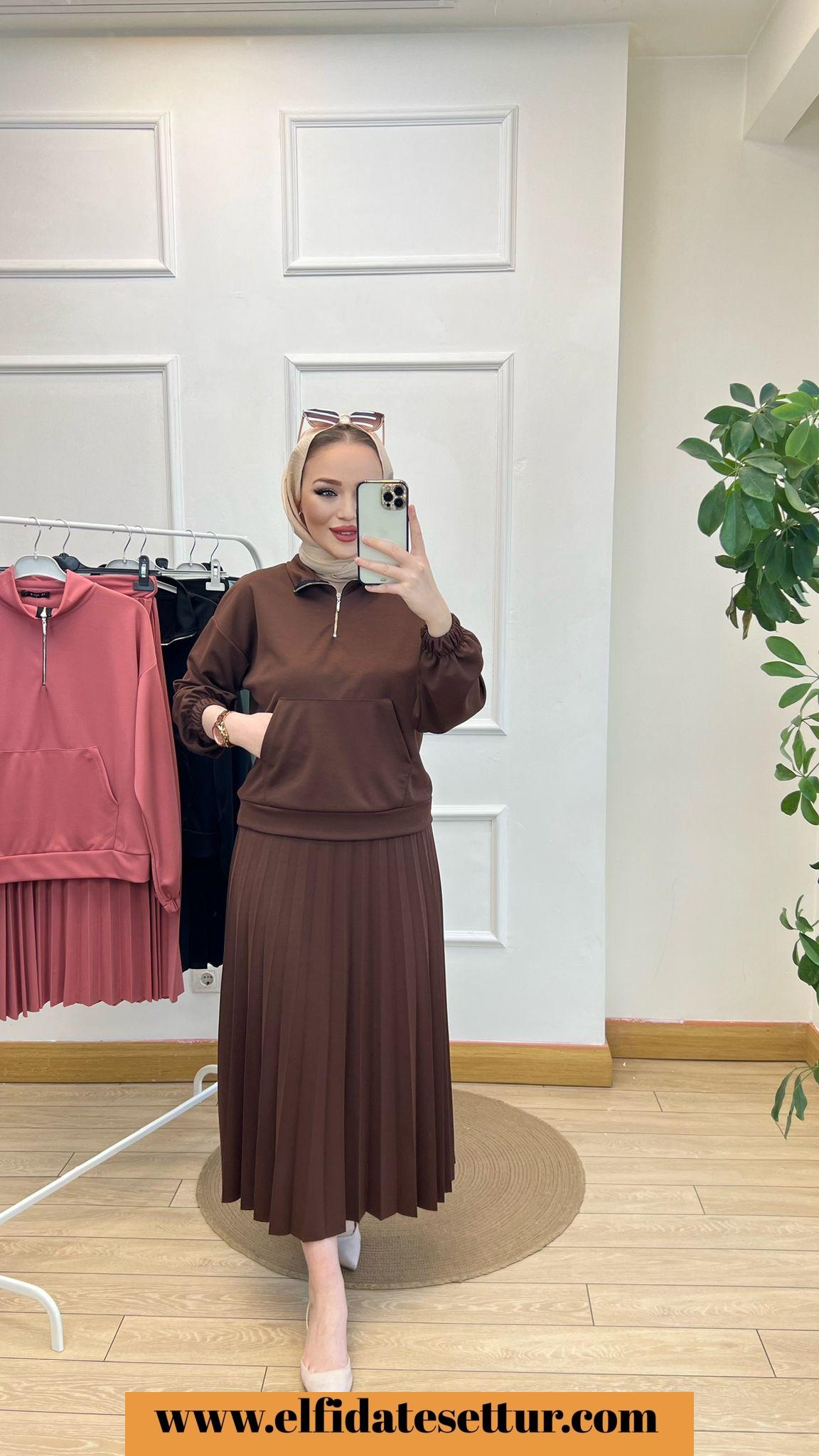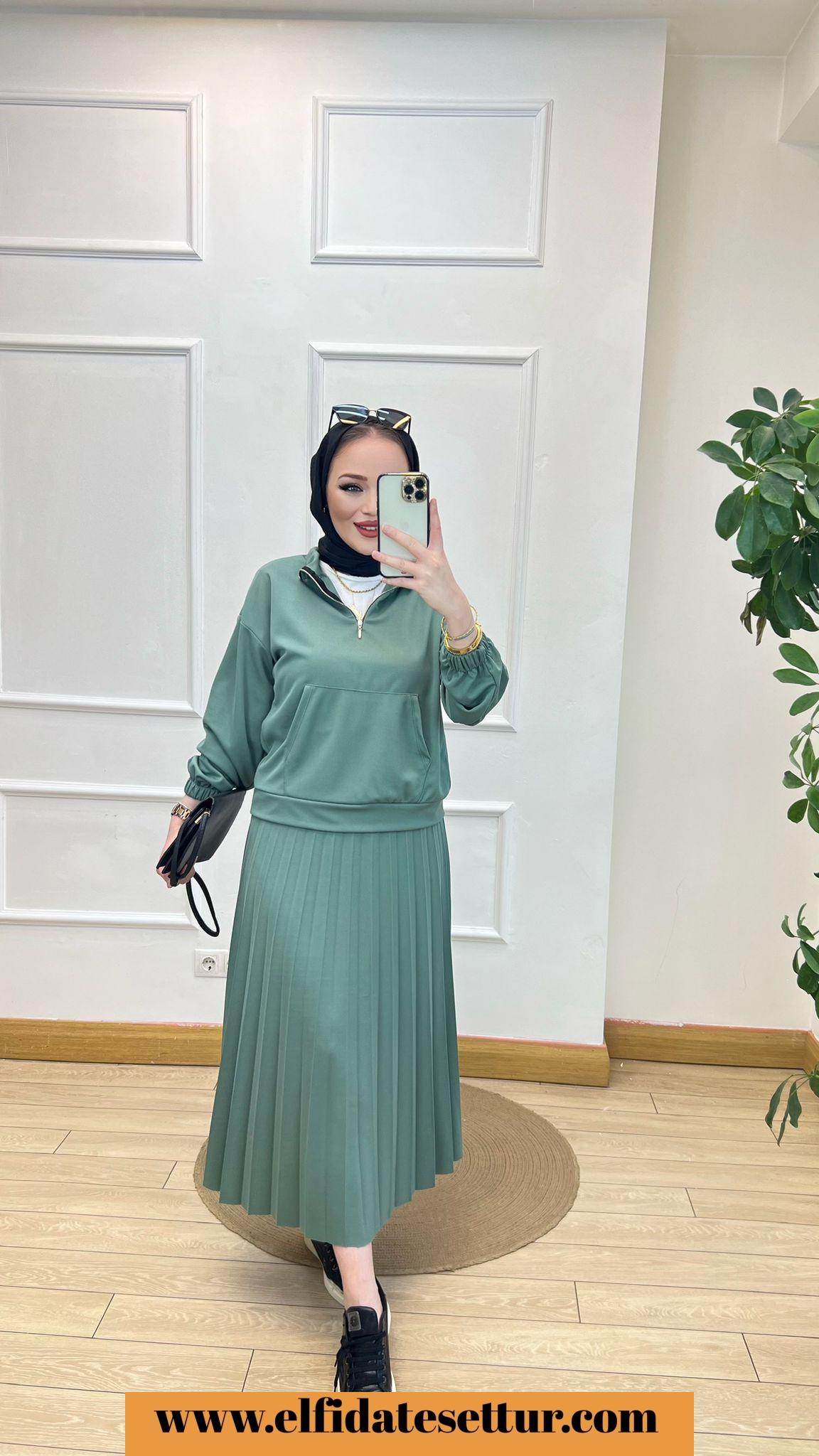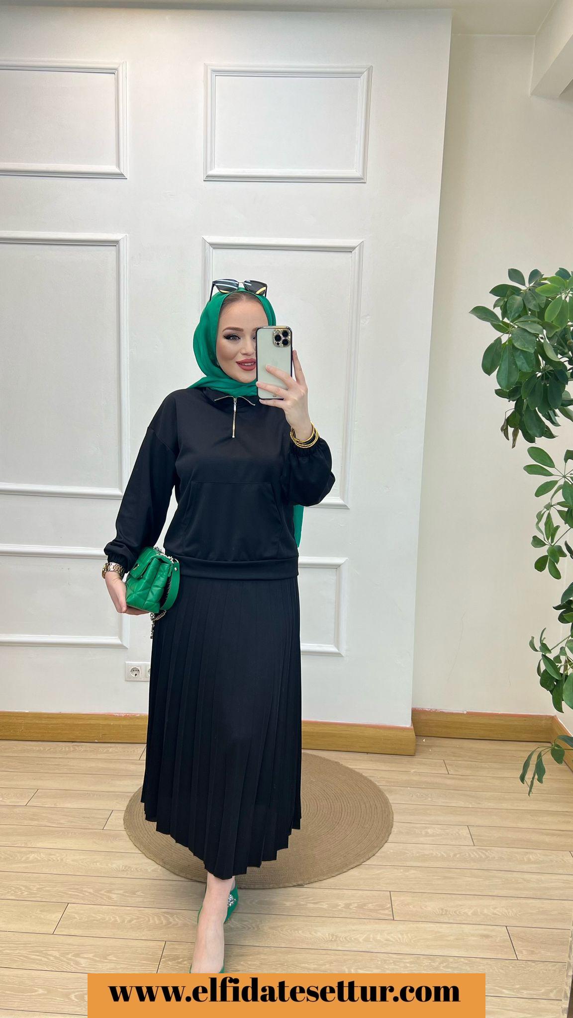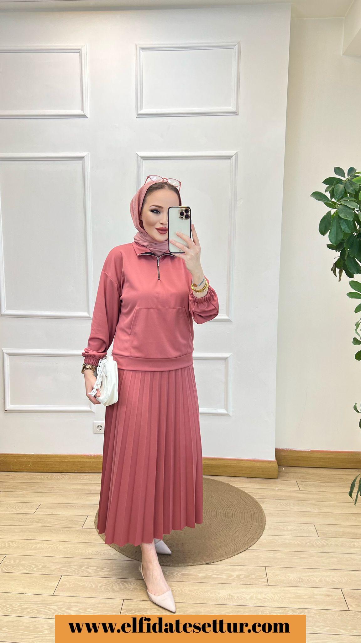Ürün bilgisi: İtal kreptır tunik ceplidir önden fermuarlıdır. Etek bel lastikli üst kol lastiklidir.