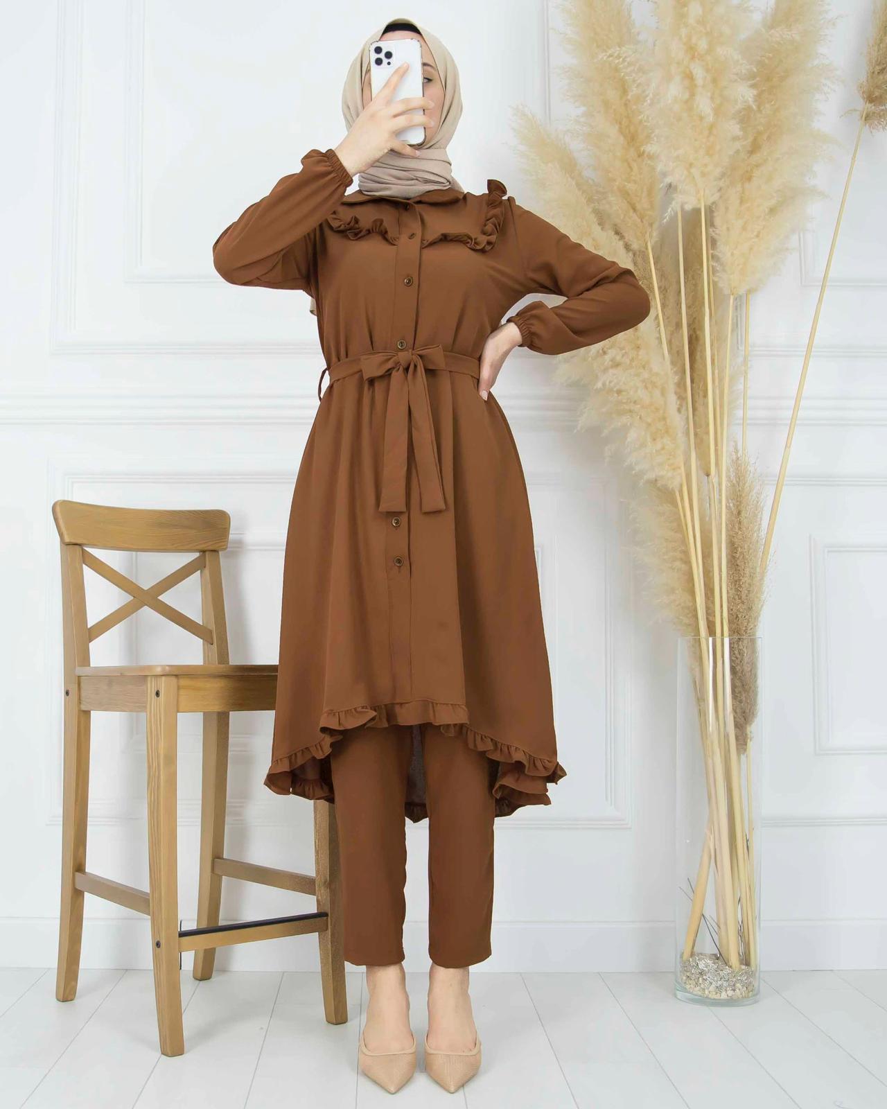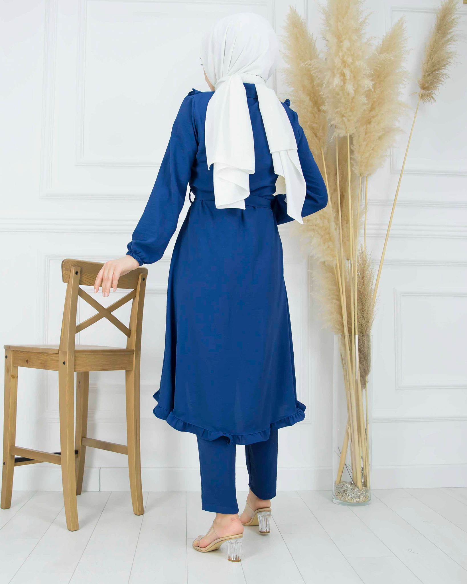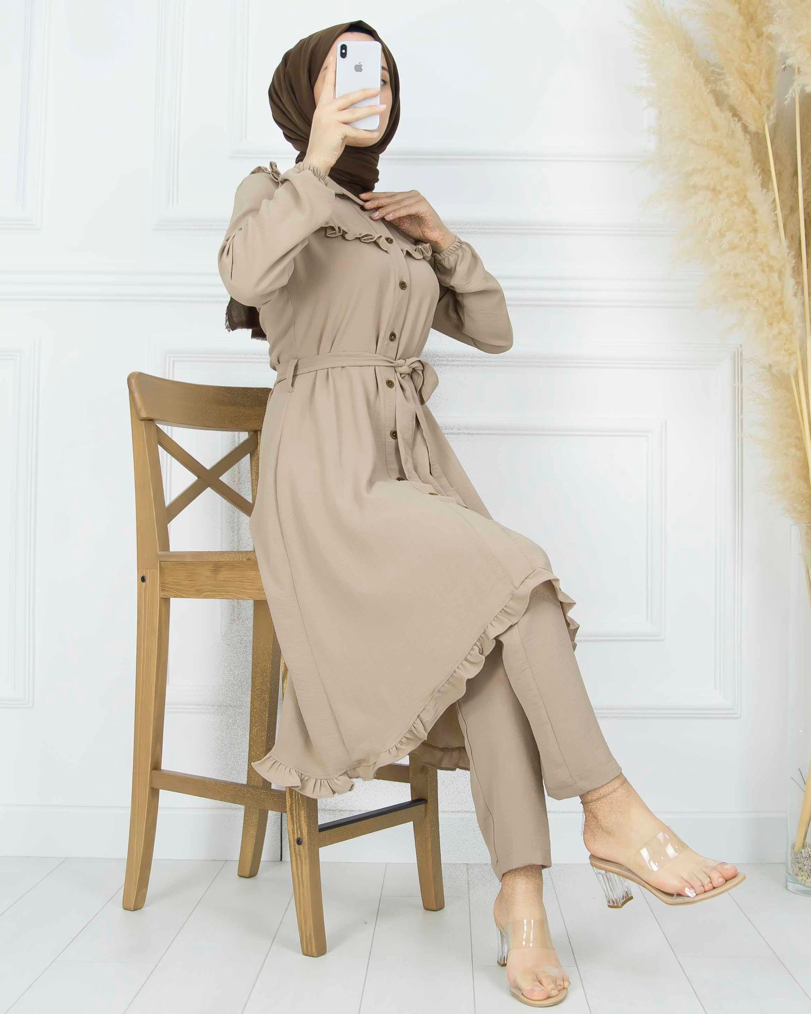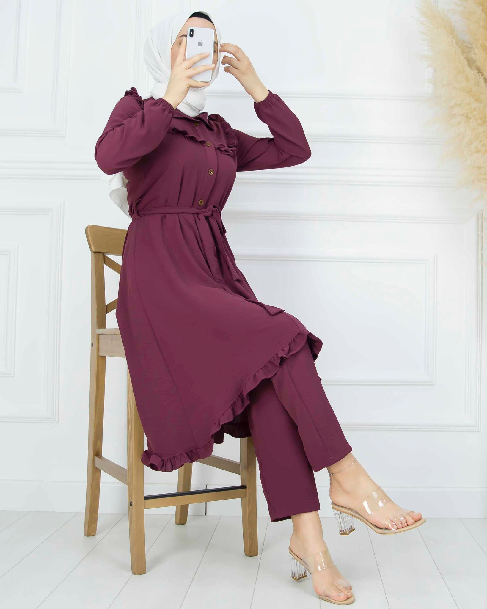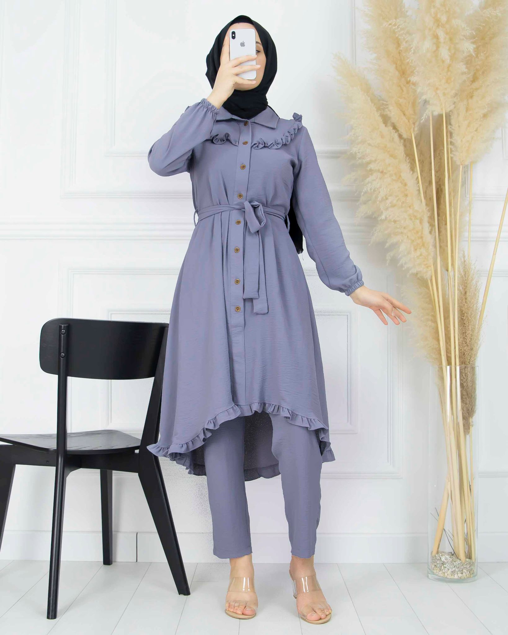 Yazlıktır-Ön kısmı düğmelidir-Kendi kumaşından kemerlidir-Bilek kısmı lastiklidir-pantolon beli lastiklidir