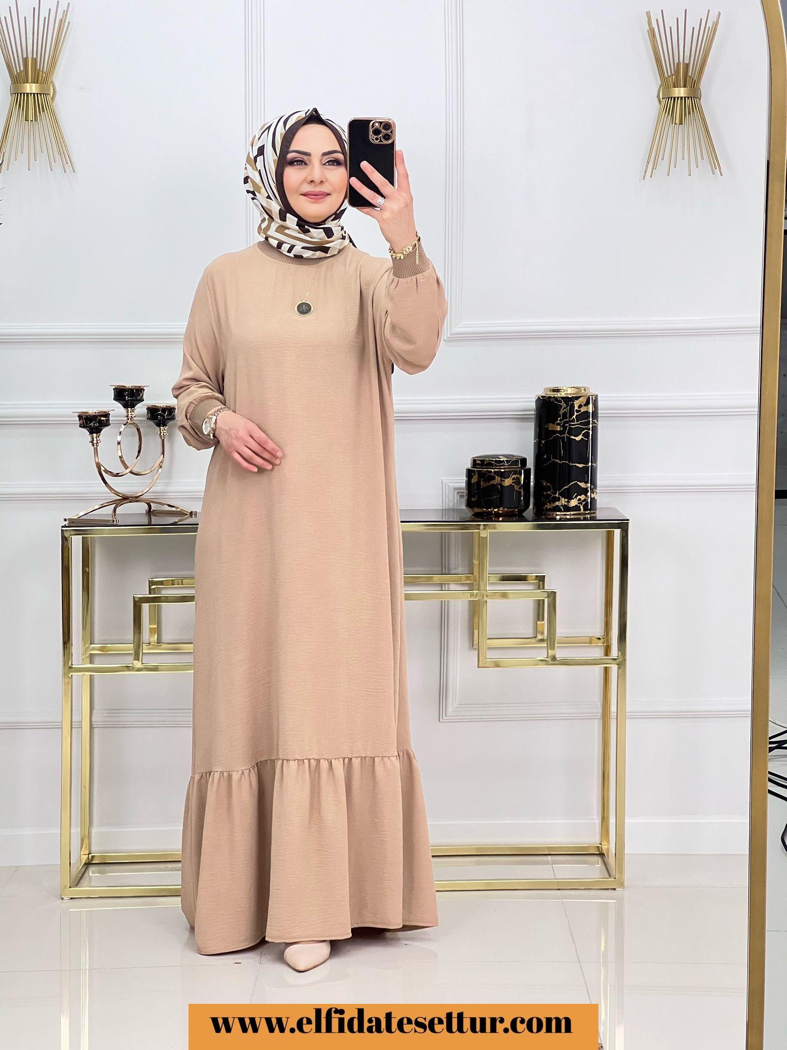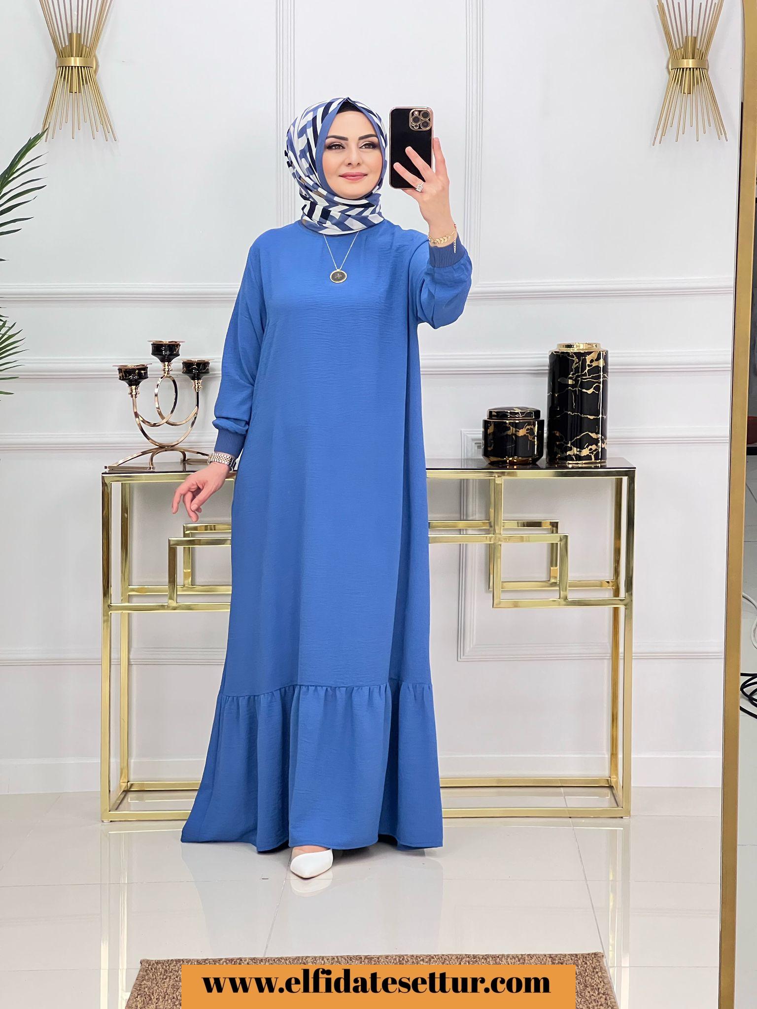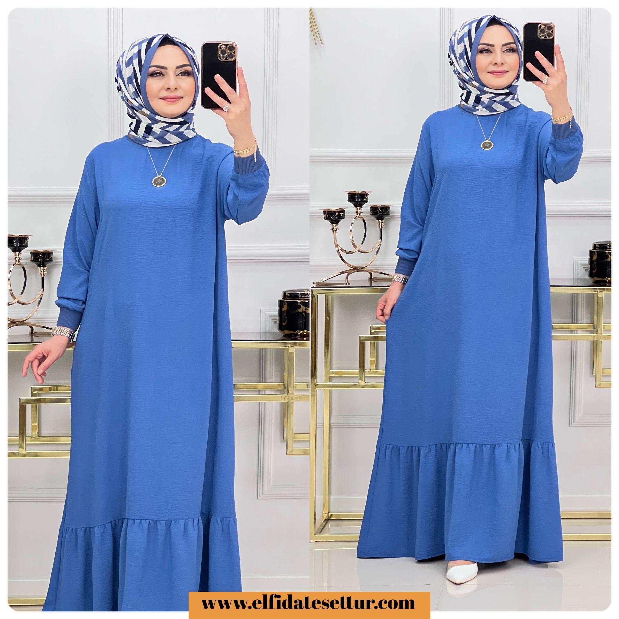Kolları ribanalı ithal ayrobin kumaş Ayda elbisemiz