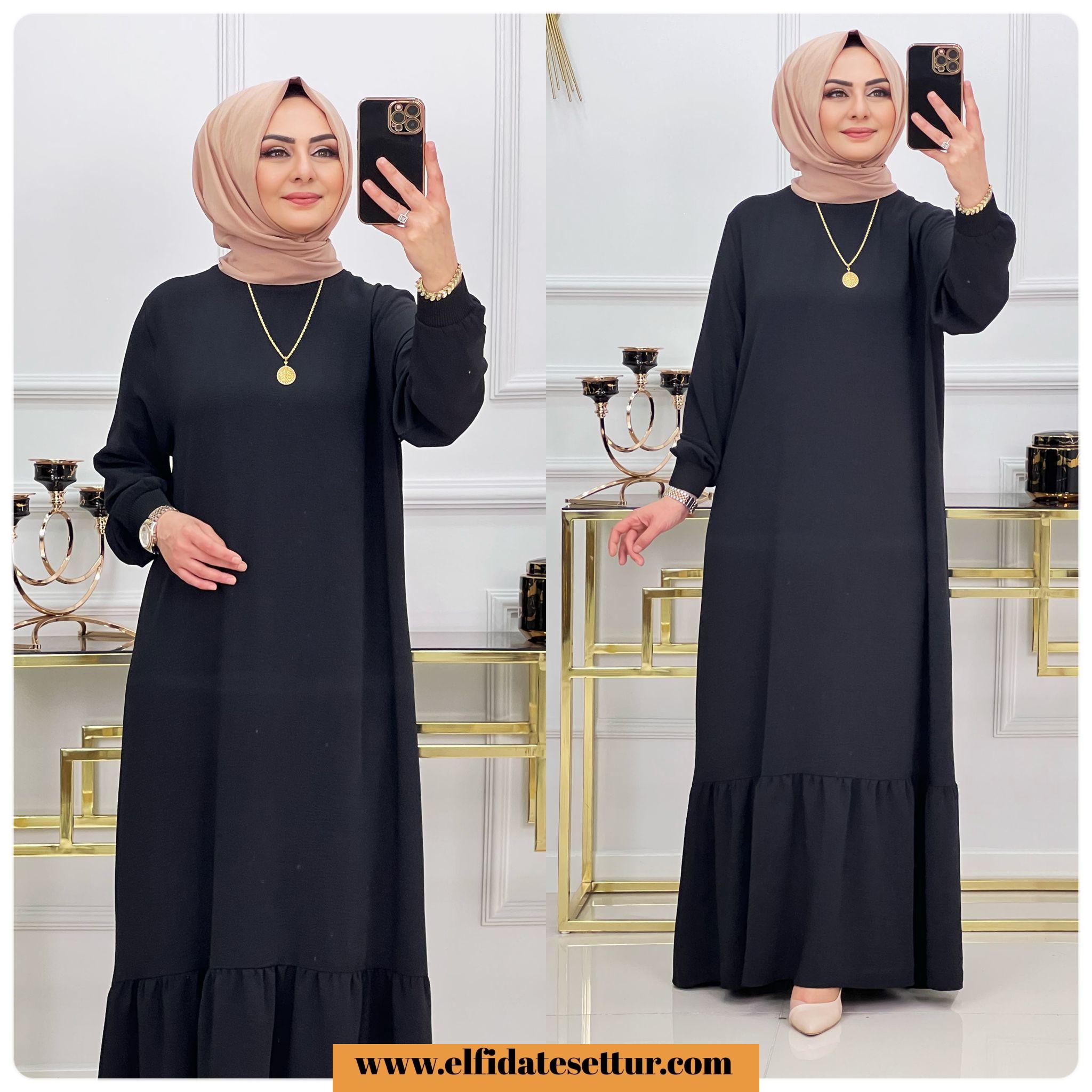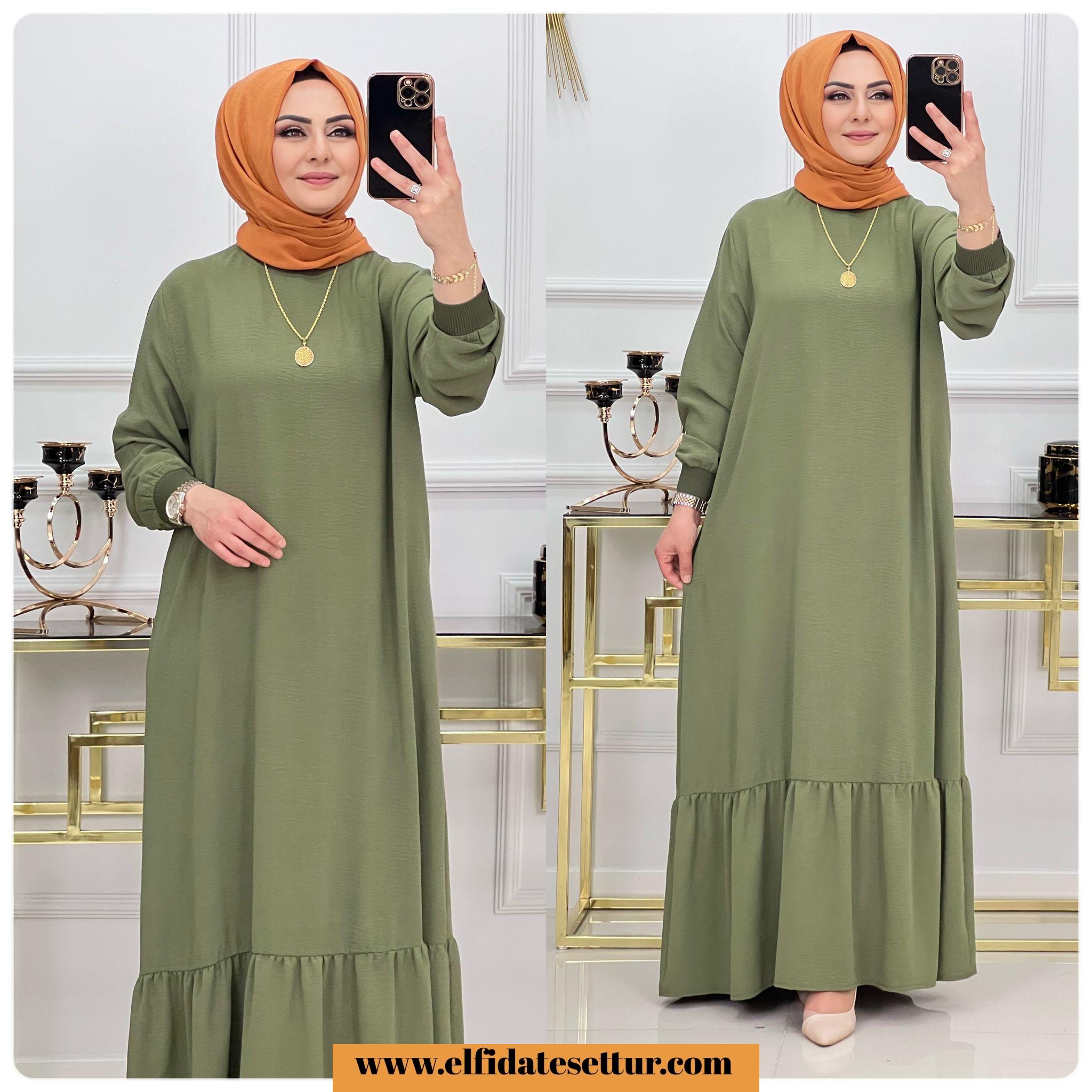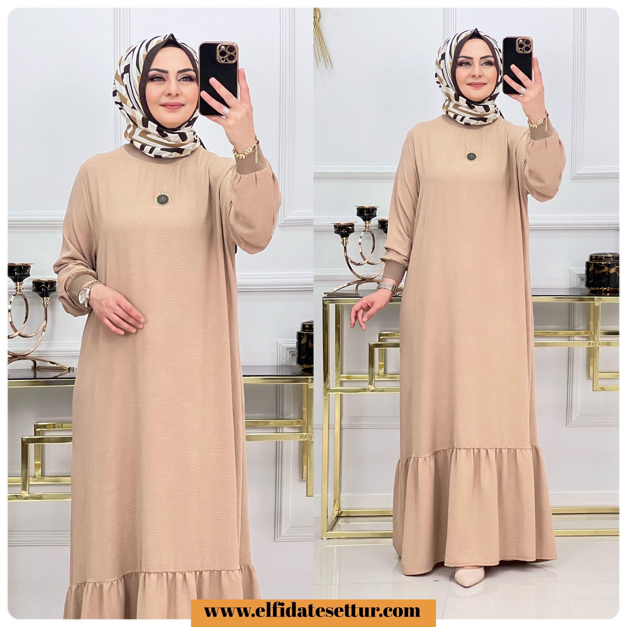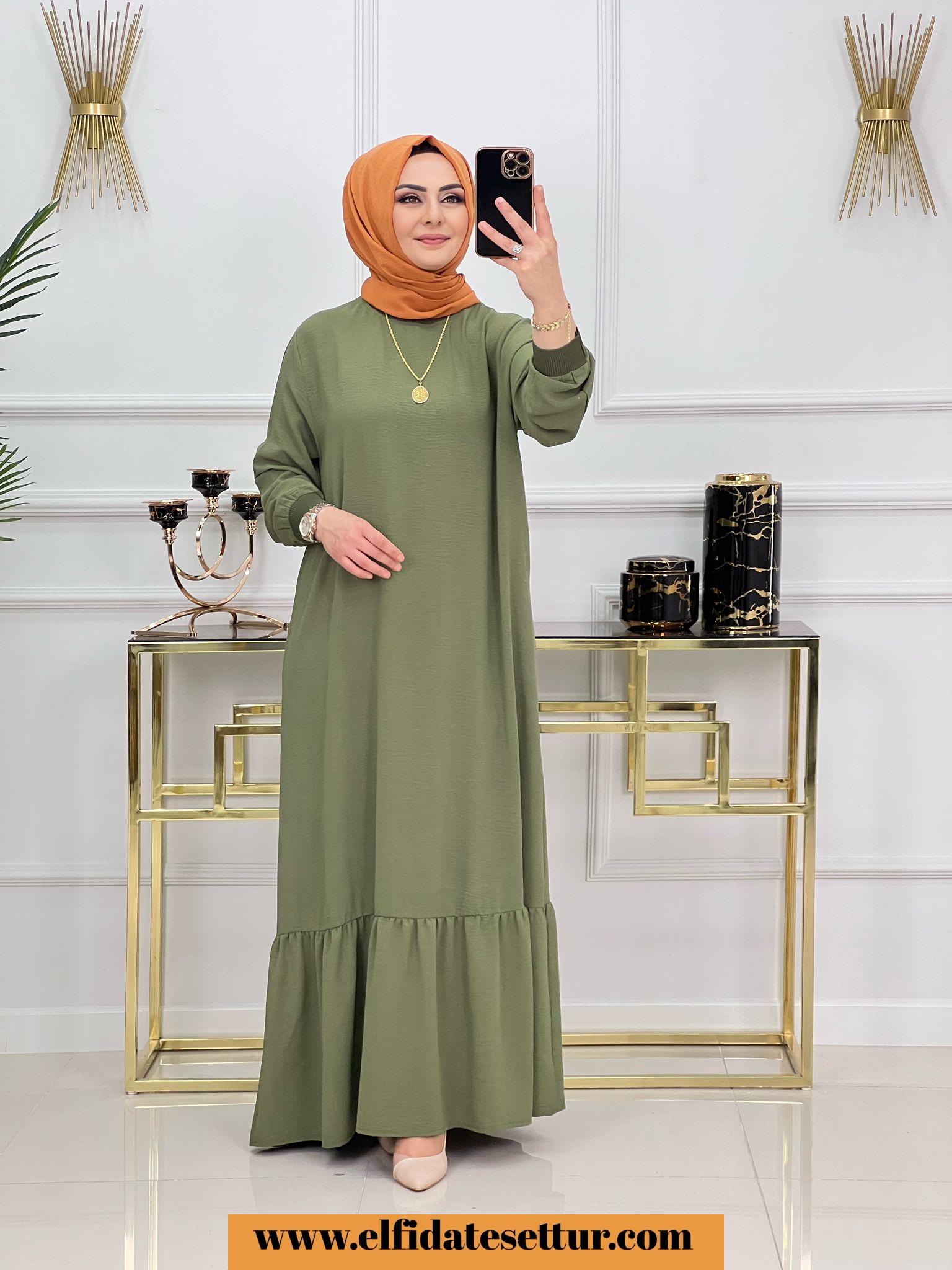 Kolları ribanalı ithal ayrobin kumaş Ayda elbisemiz