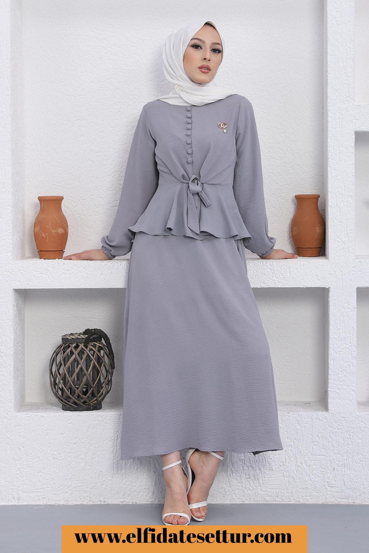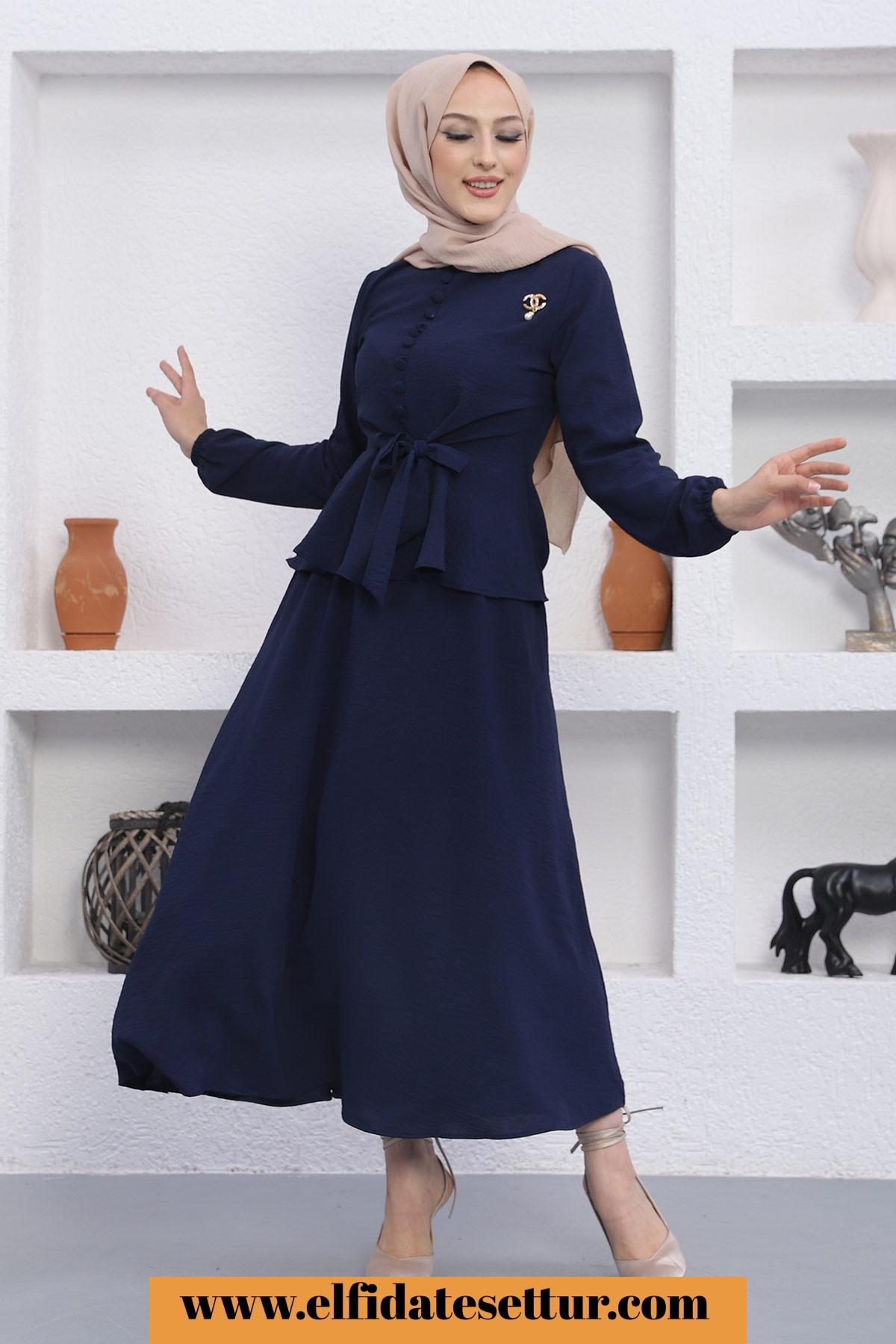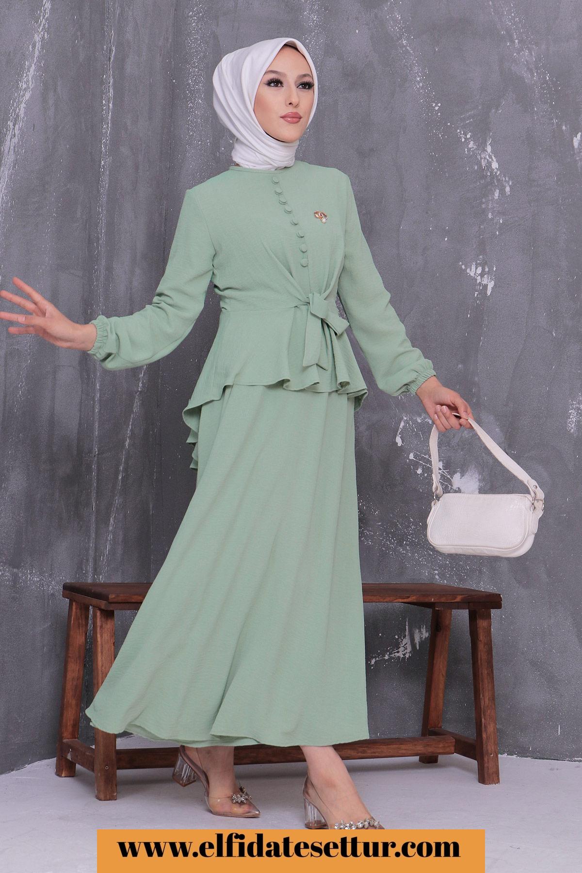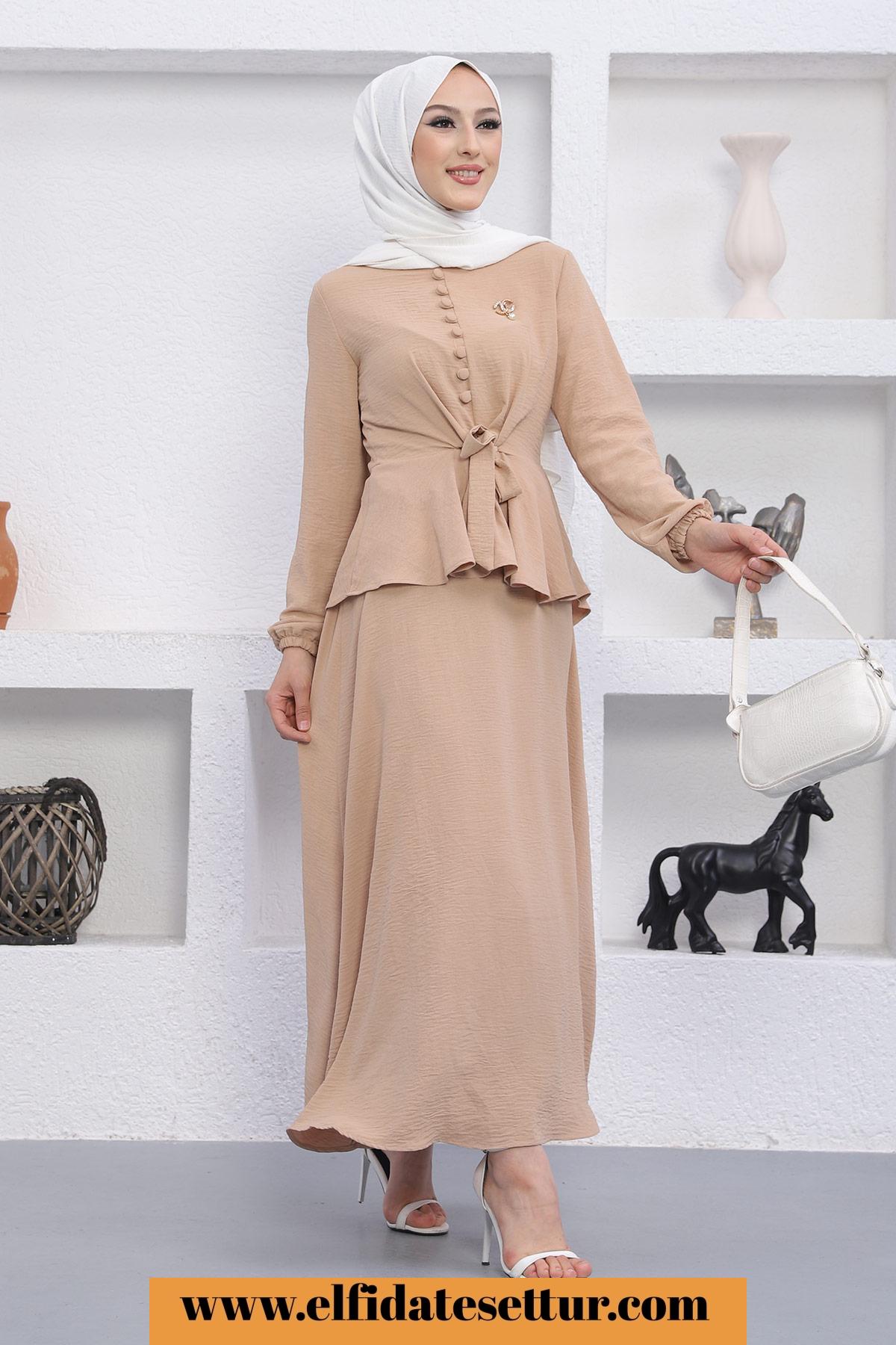 🌷Üst Düğmeli Bağlama Detaylı Etekli Tesettür Takım