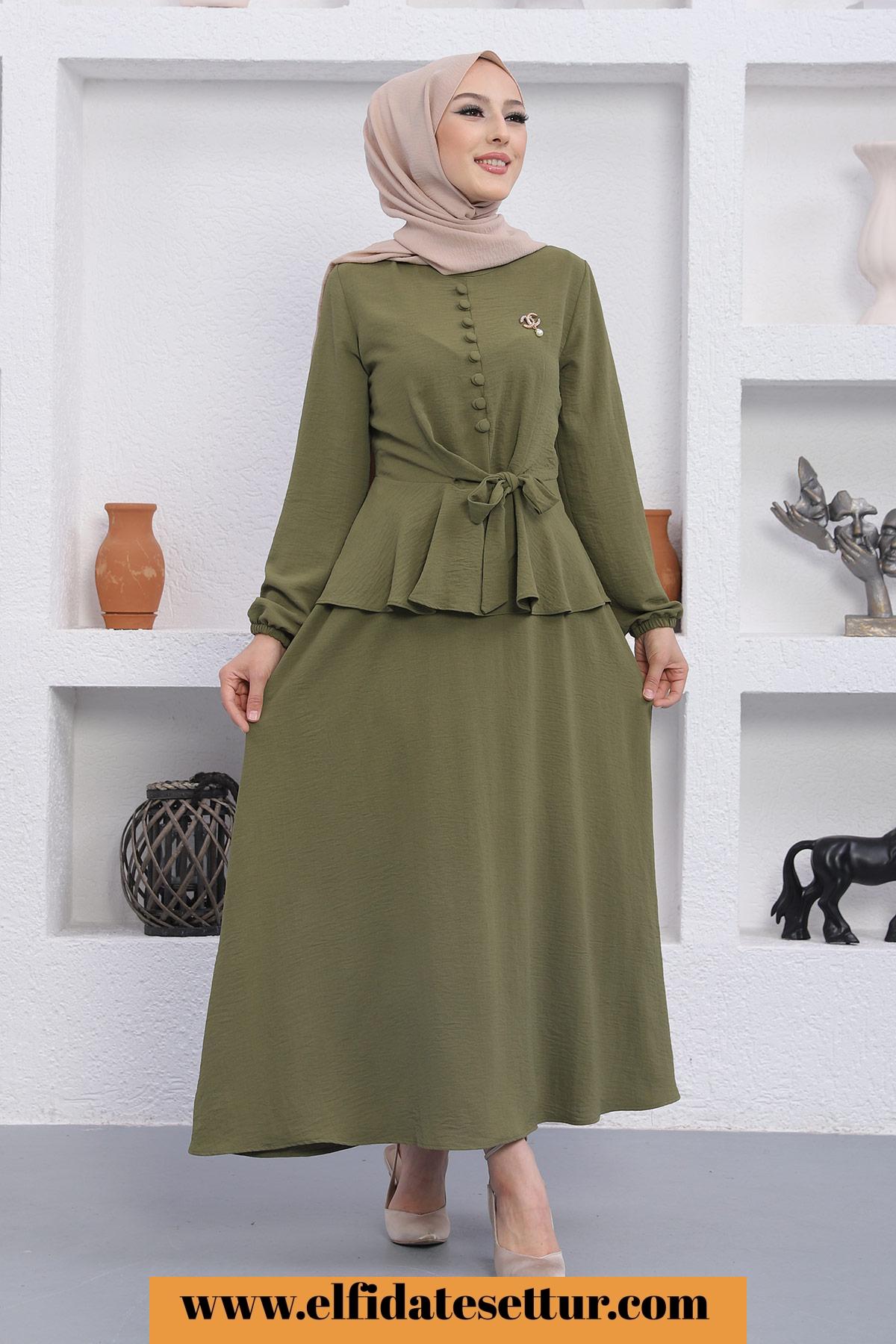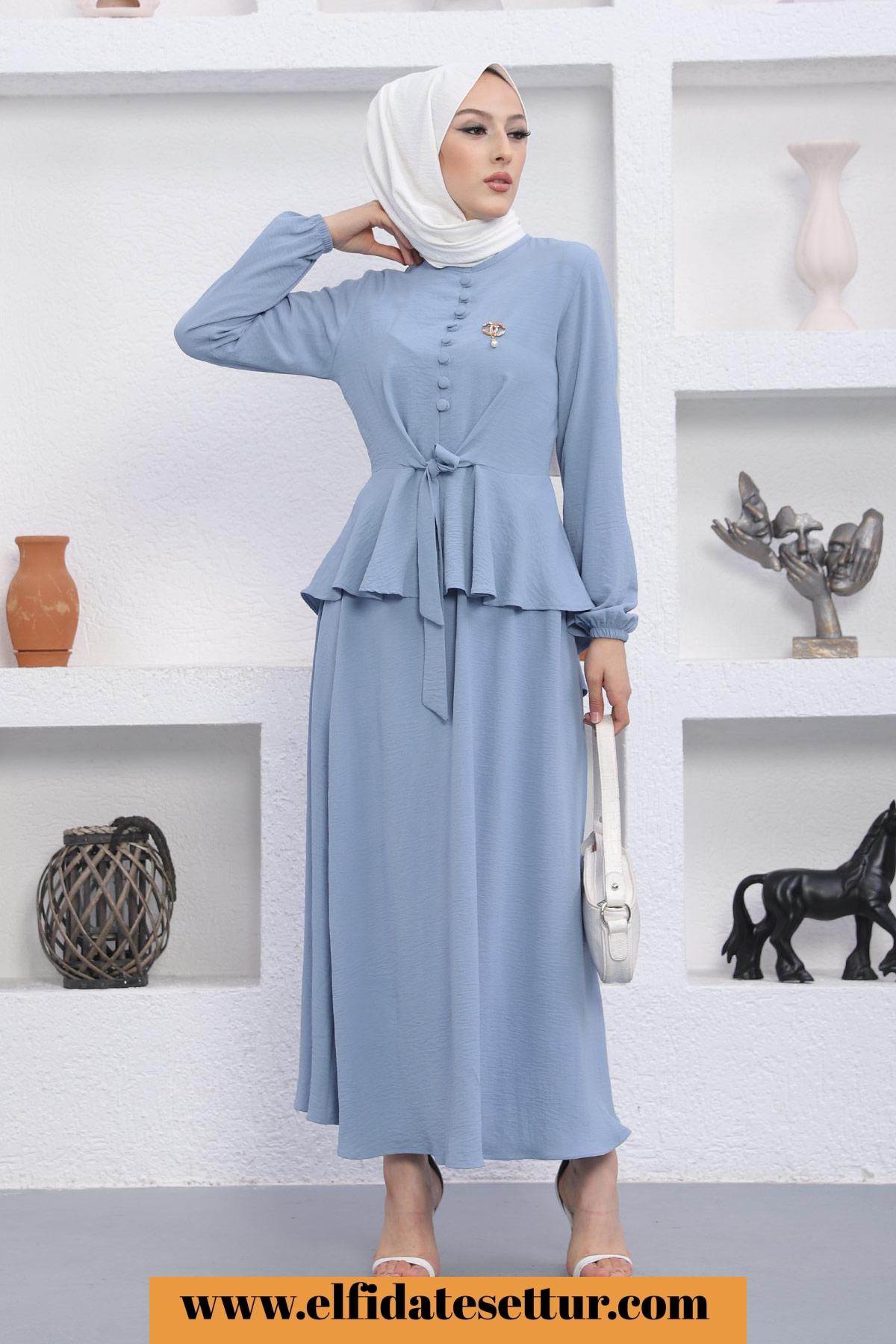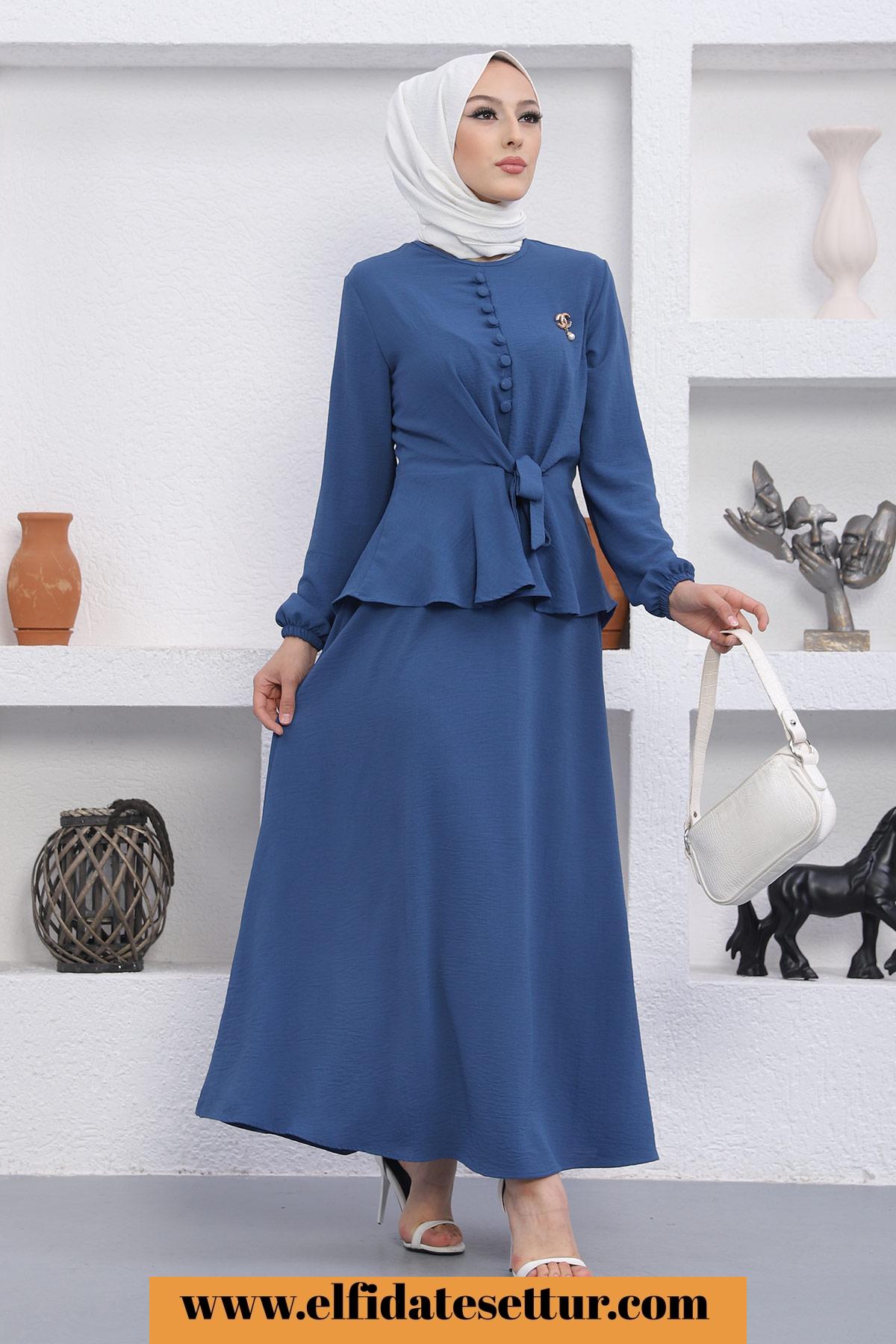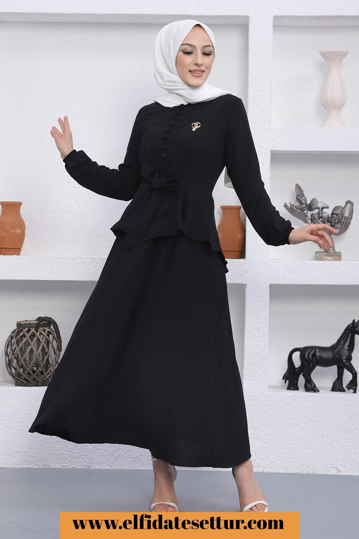 🌷Üst Düğmeli Bağlama Detaylı Etekli Tesettür Takım