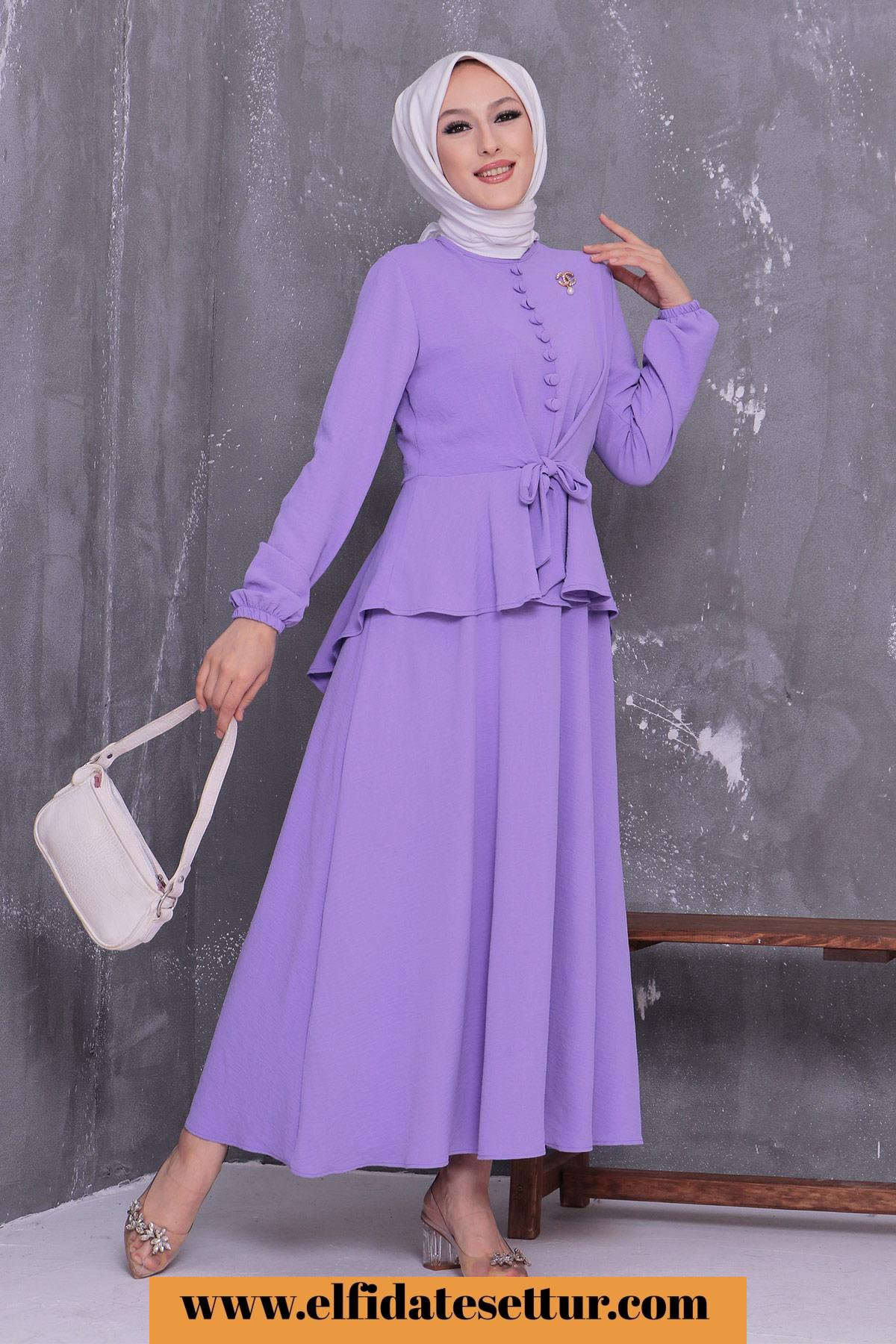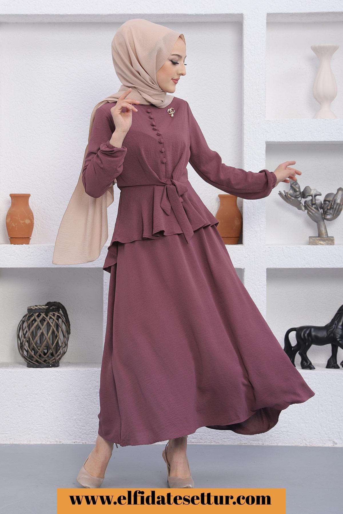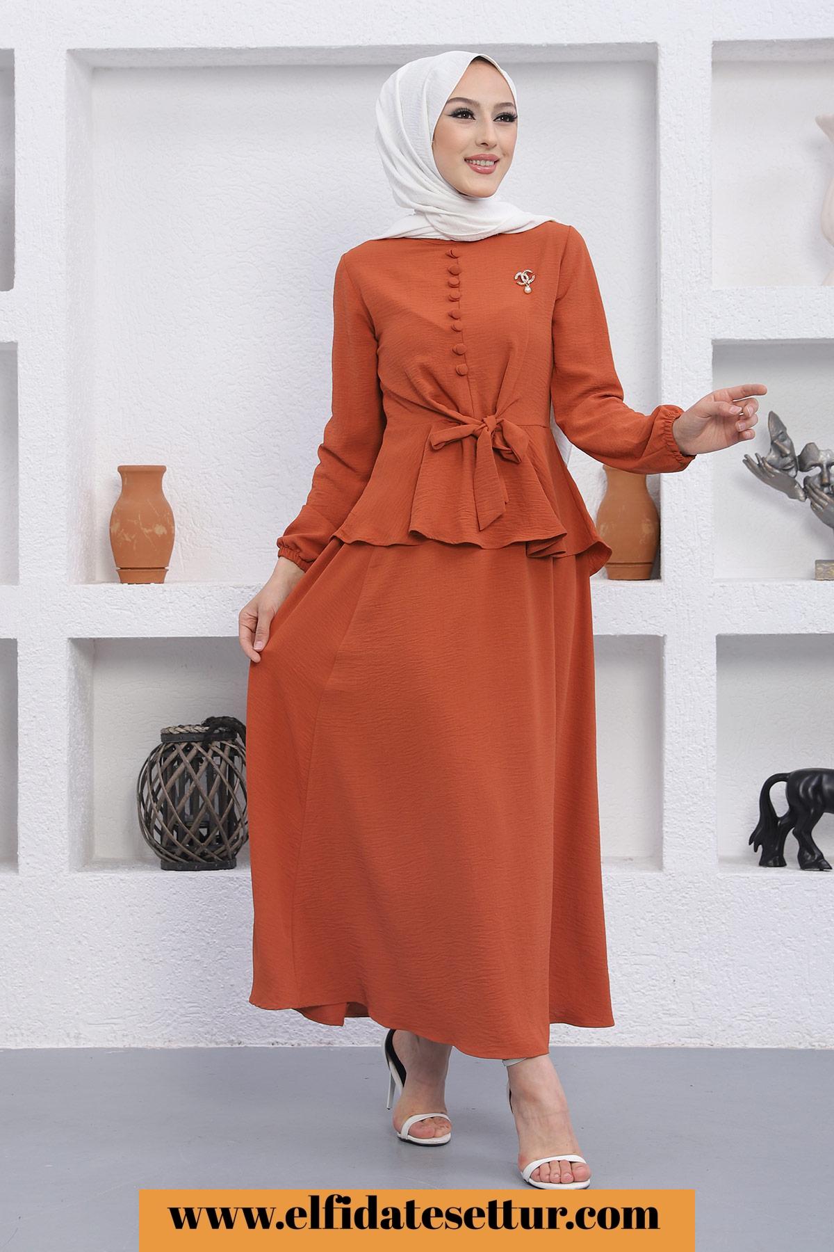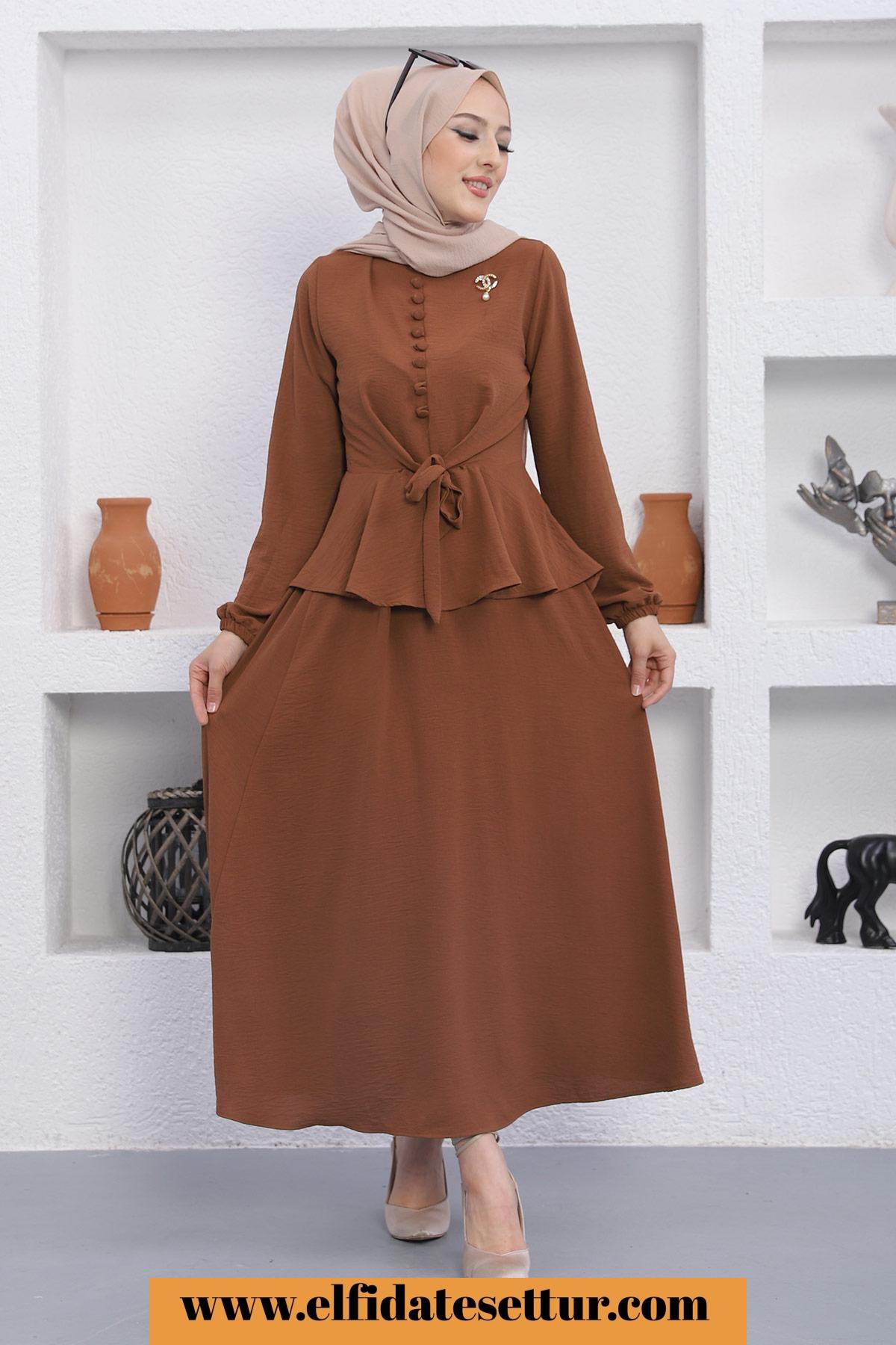 🌷Üst Düğmeli Bağlama Detaylı Etekli Tesettür Takım