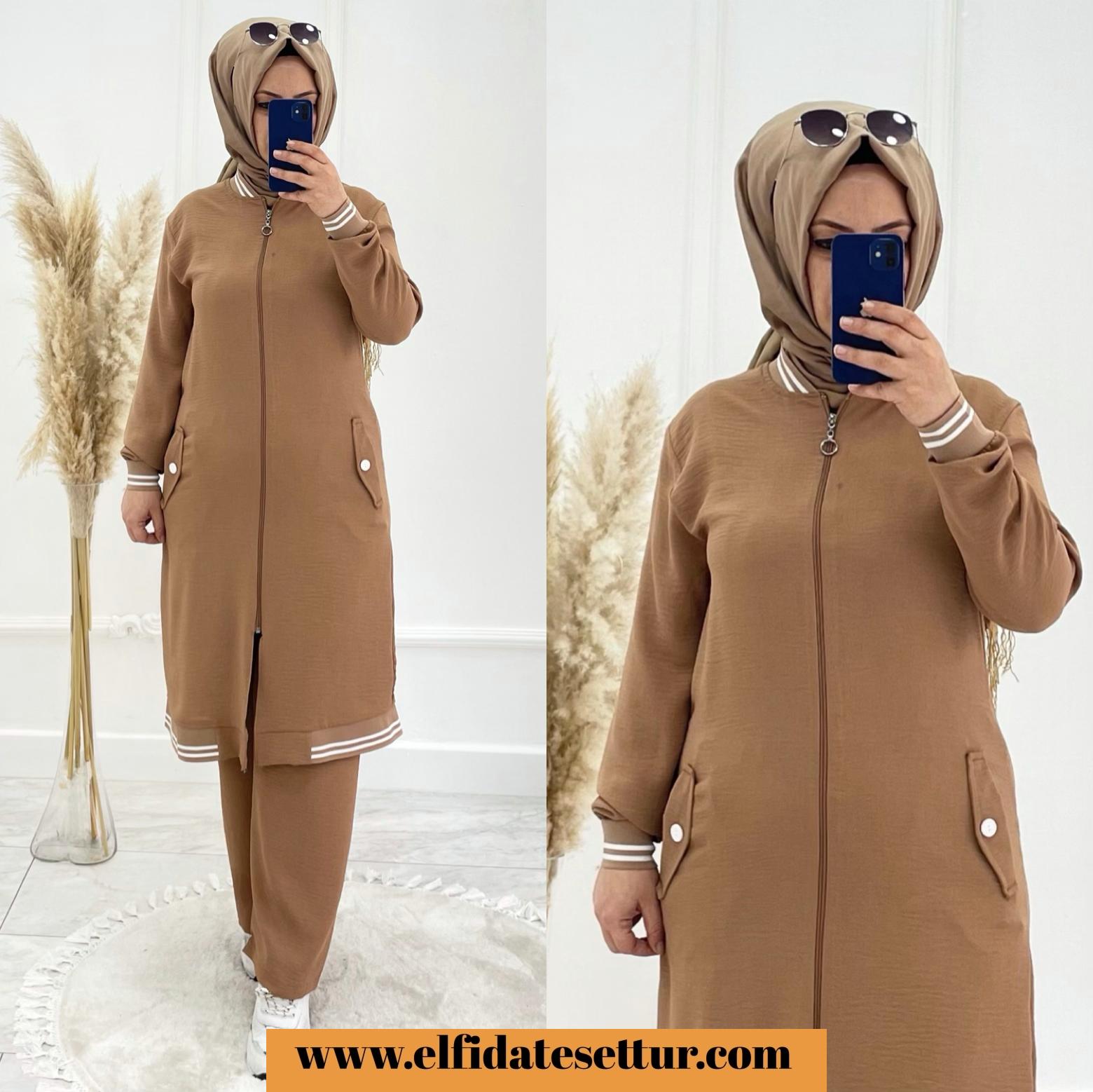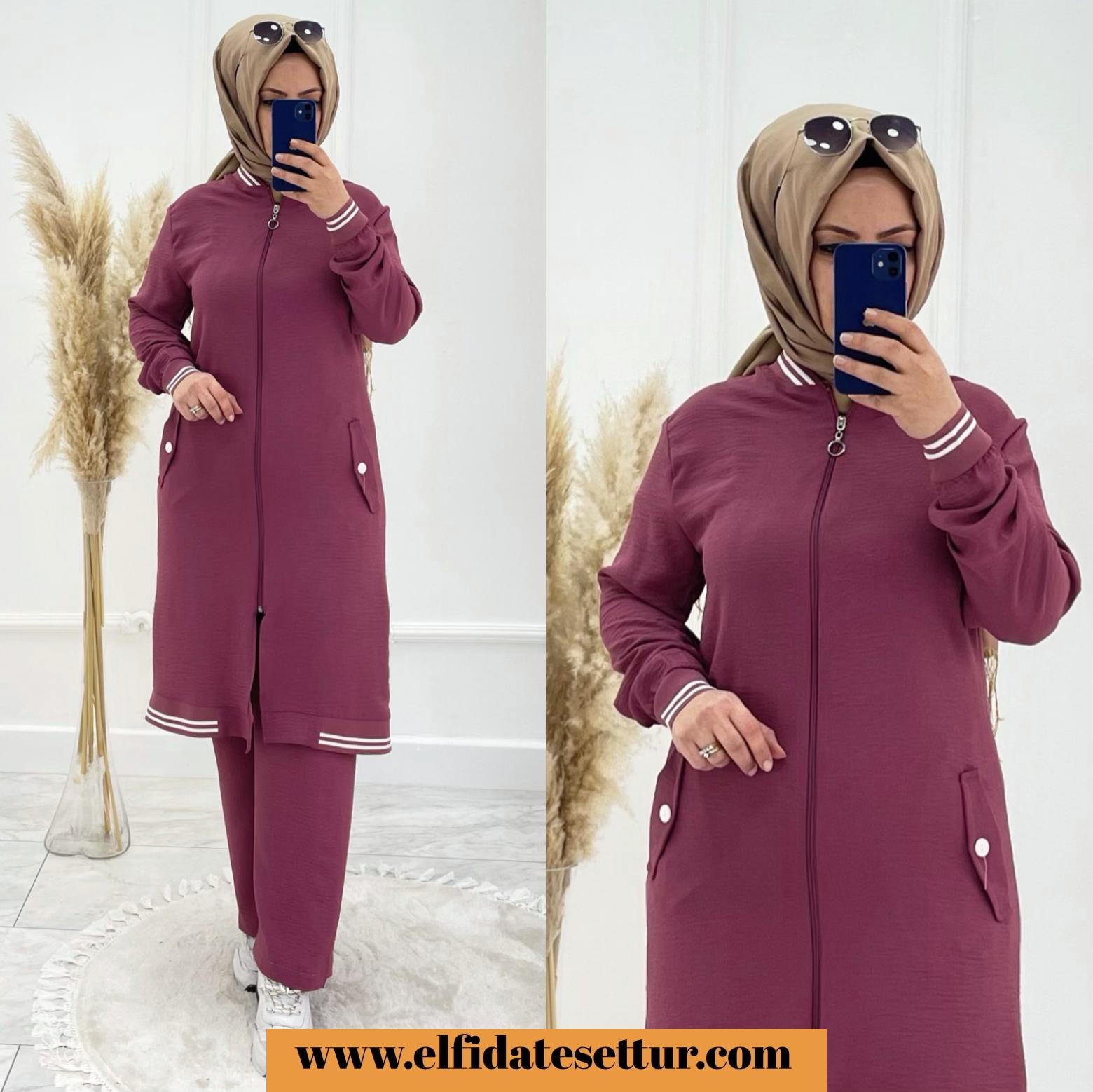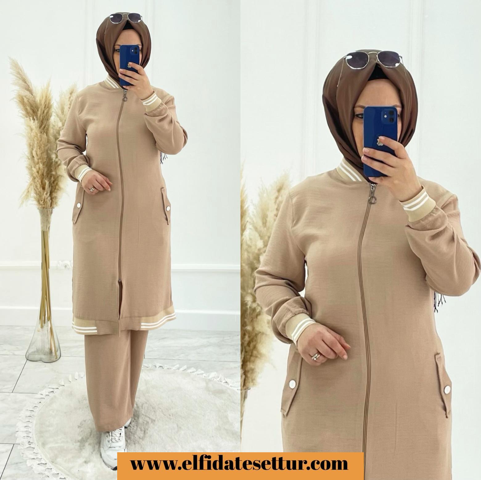 💐tunik fermuarlı pantolon beli lastikli tunik cepli