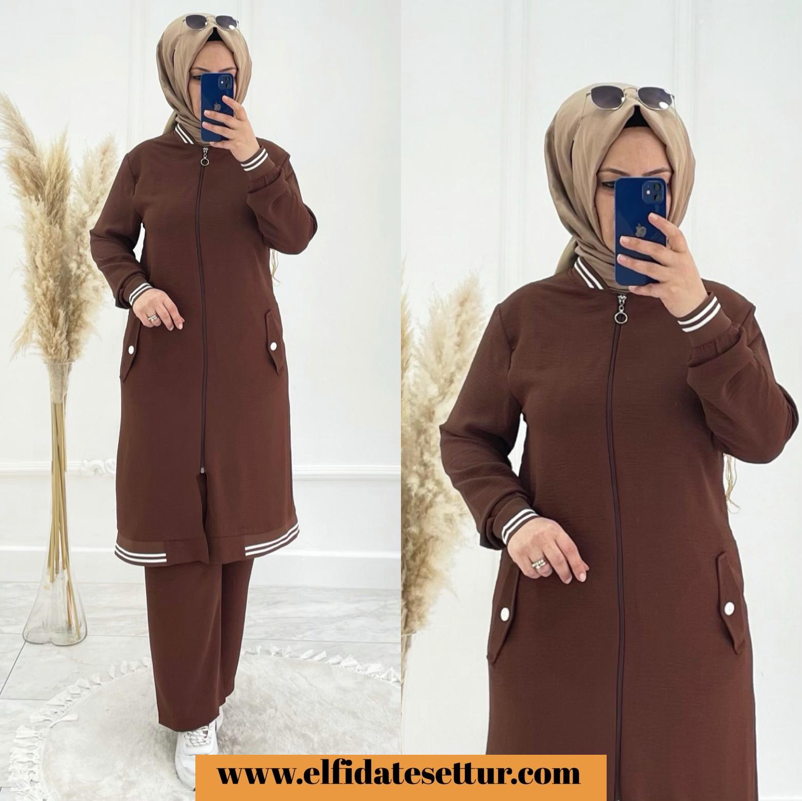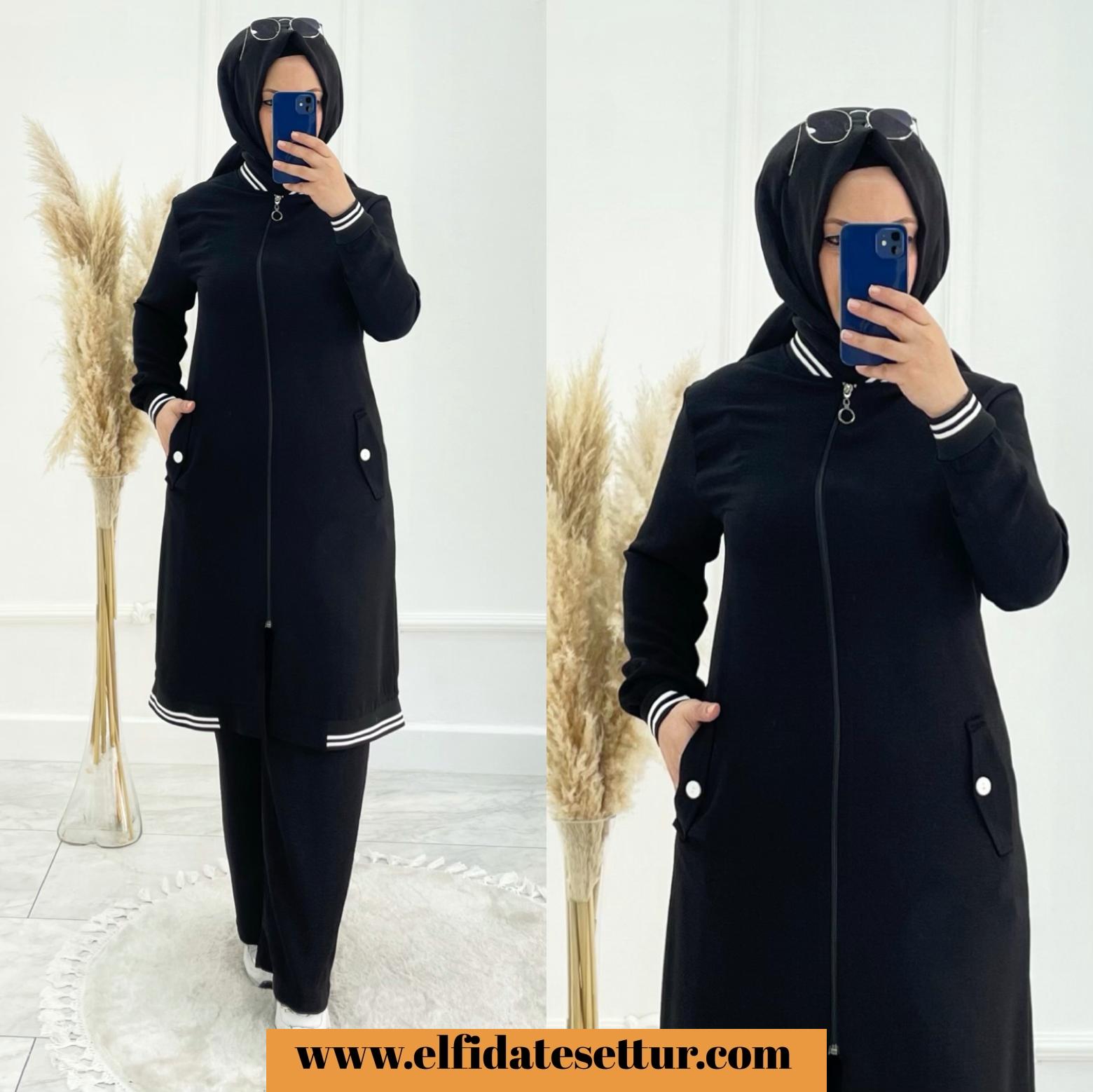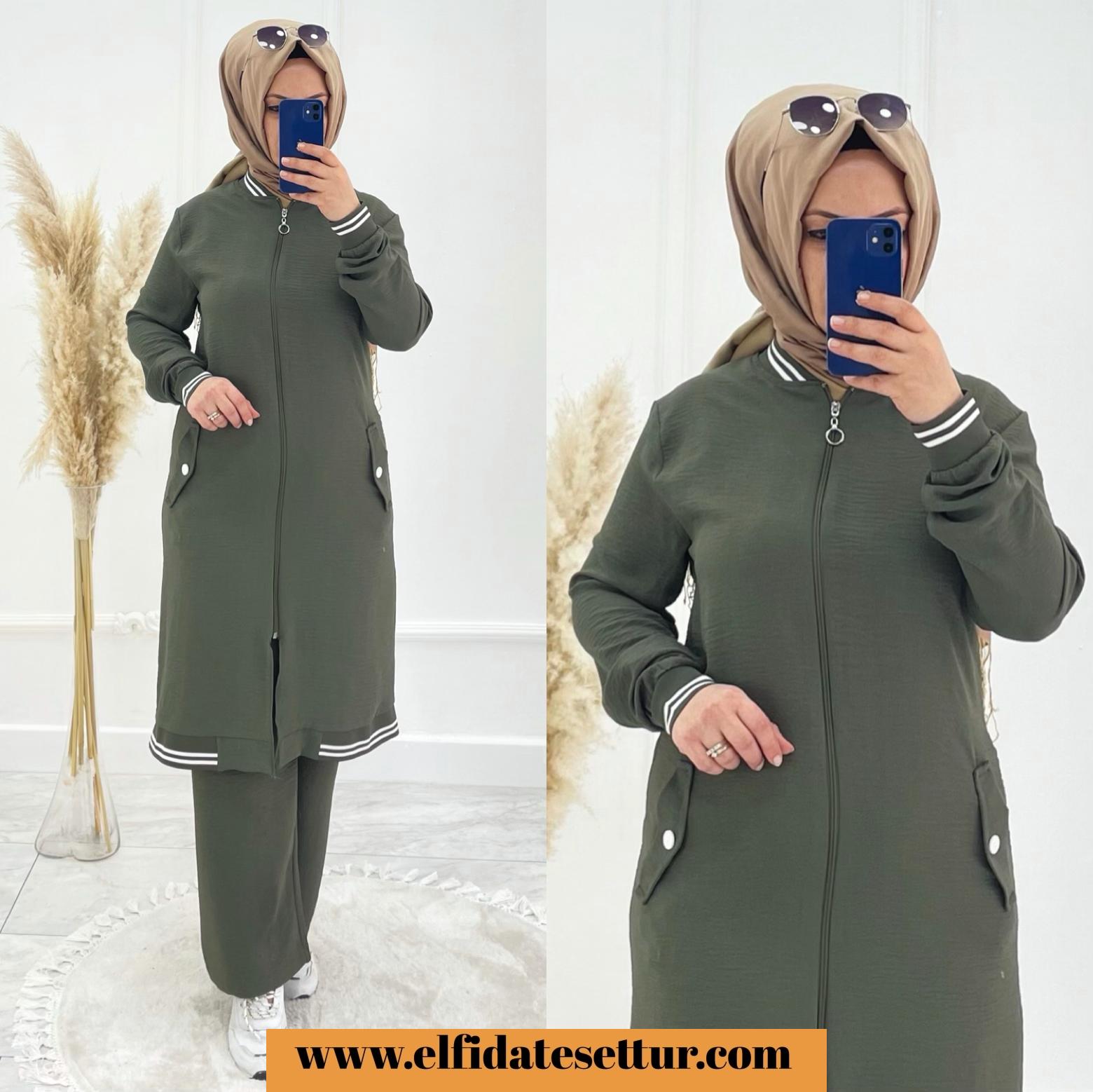 💐tunik fermuarlı pantolon beli lastikli tunik cepli