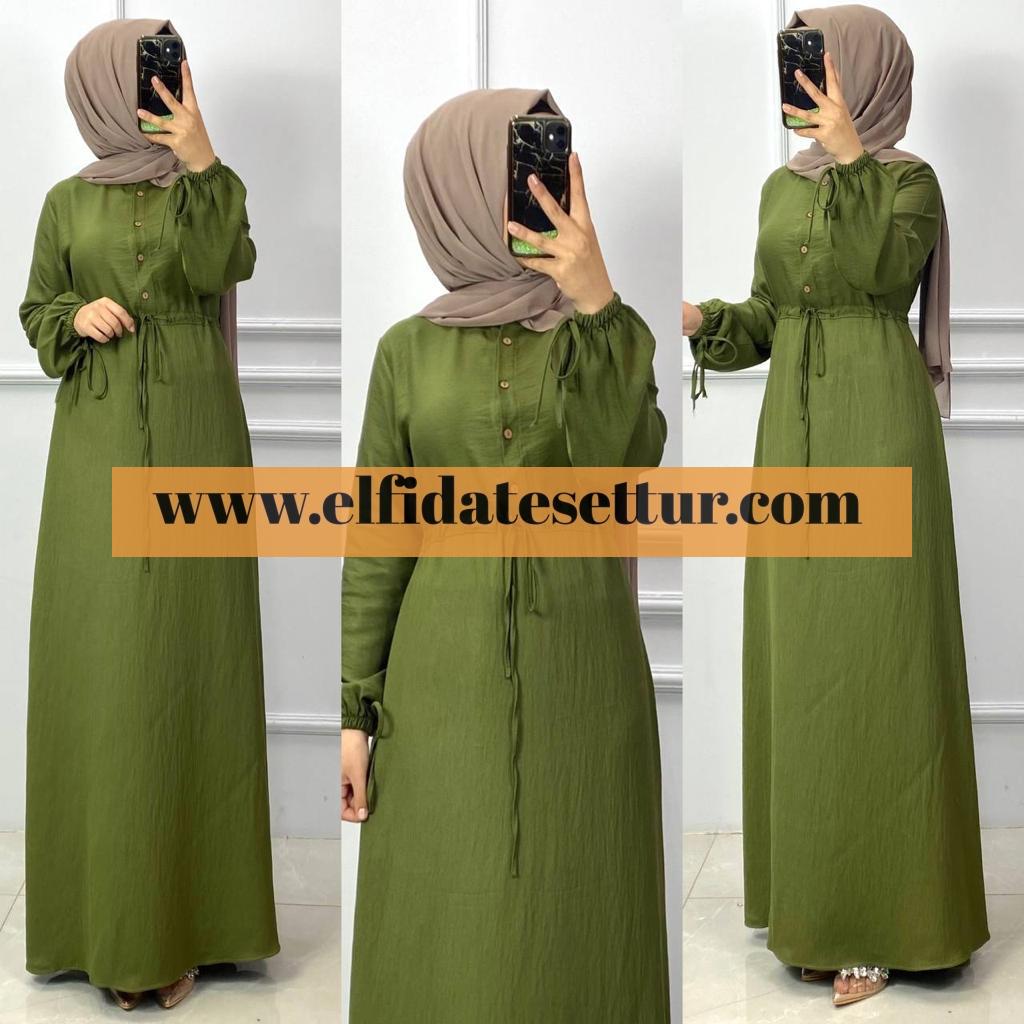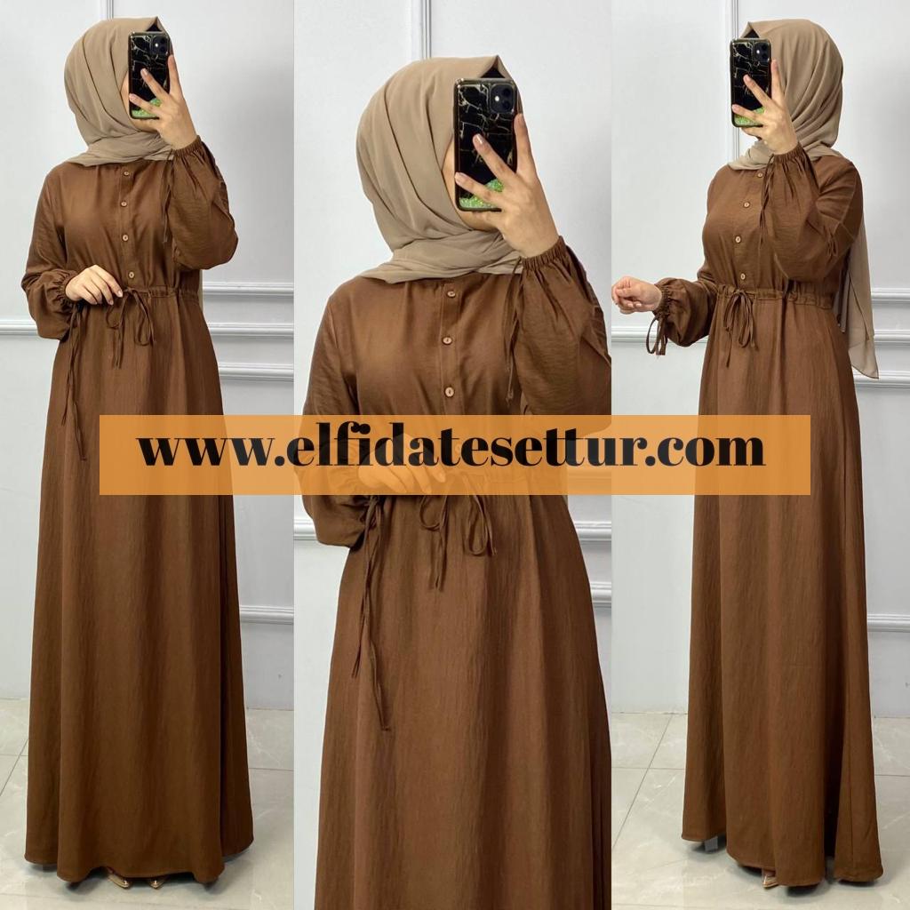 Üstten bele kadar açılabilir düğmelidir, Tünel bağcıklı büzgü bel, İç göstermez ayrobin kumaş, boy 140 cm, kol uçları bağcıklıdır