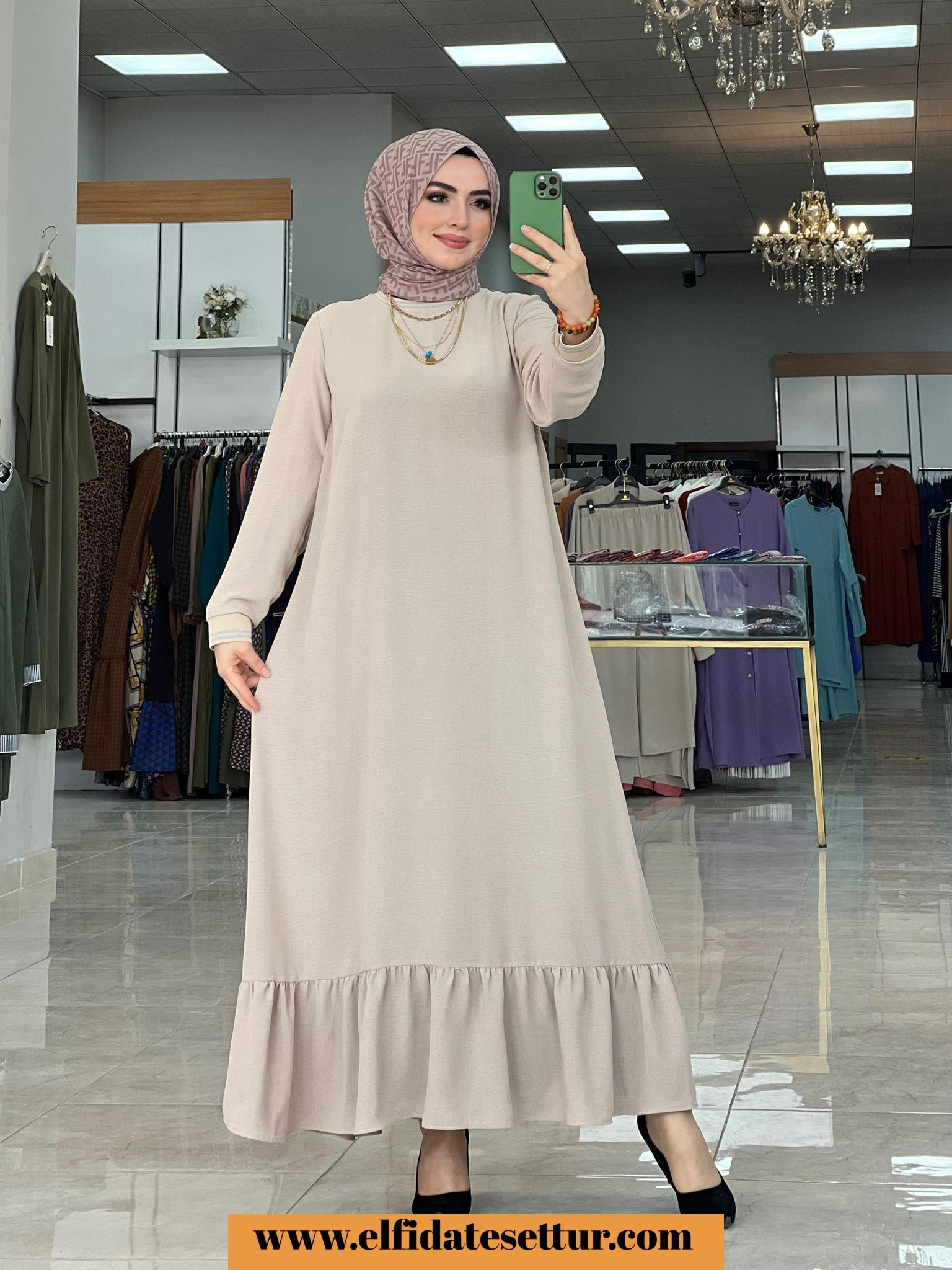 Kumaşı ayrobindir. ürün boyu 136 cm 1 beden (40-42) göğüs 110 cm basen 126 cm 2 beden (44-46) göğüs 118 cm basen 136 cm 3 beden (48-50) göğüs 120 cm basen 138 cm 4 beden (52-54) göğüs 126 cm basen 140 cm