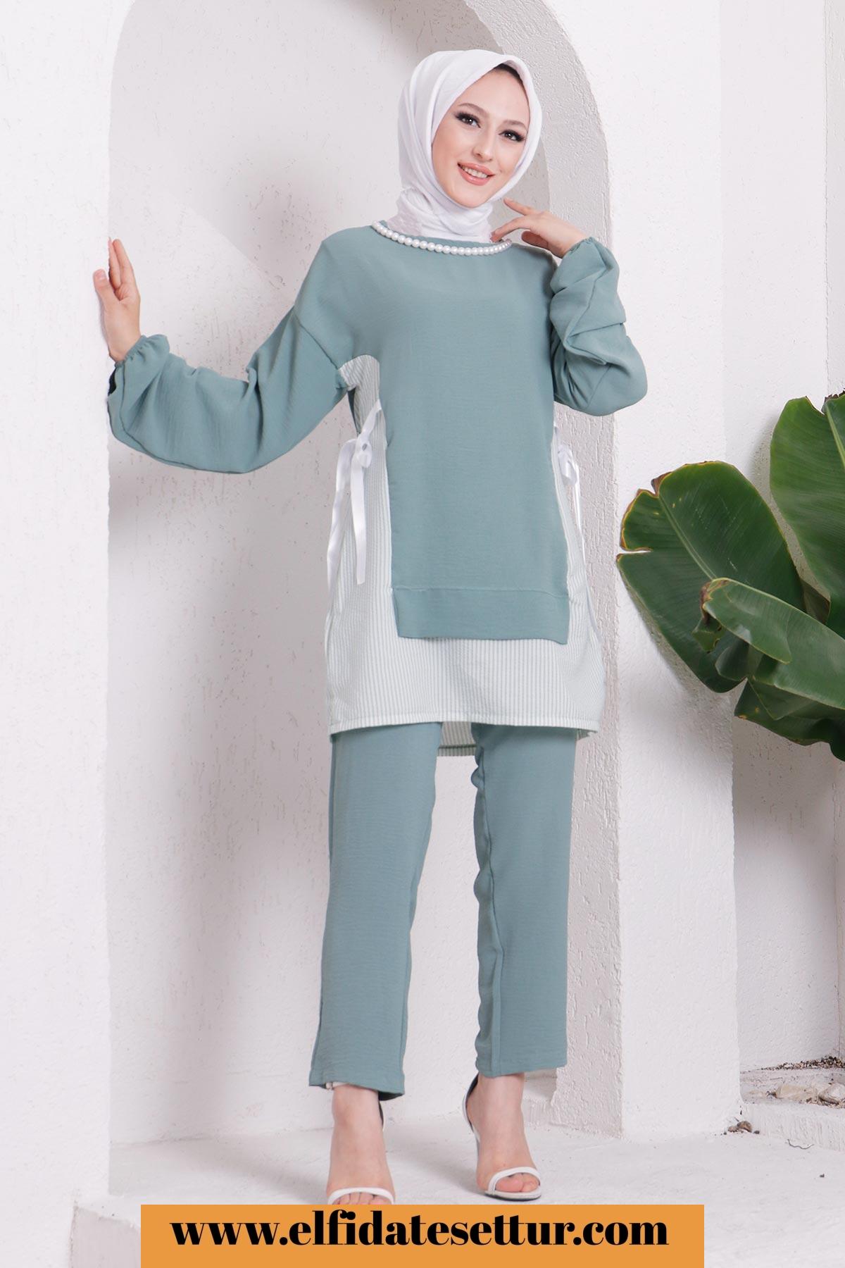🌷İnci Kolyeli Ayrobin Tesettür İkili Takım