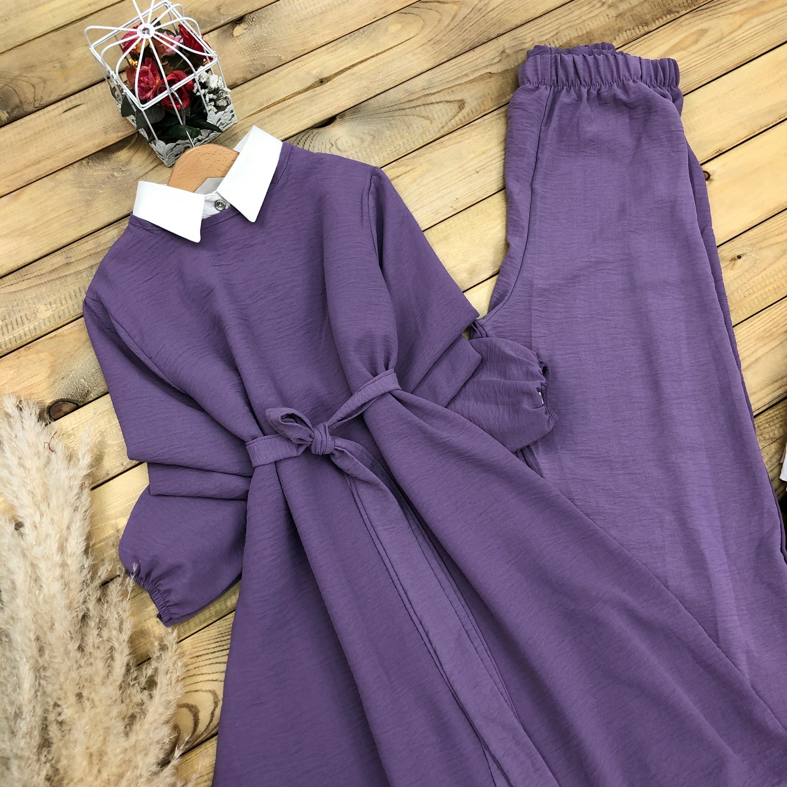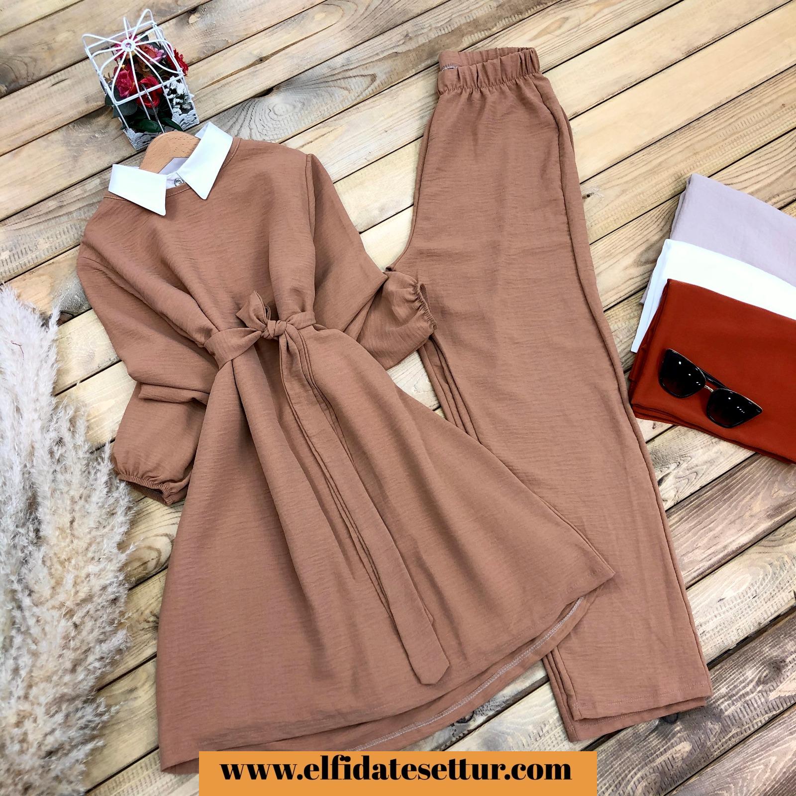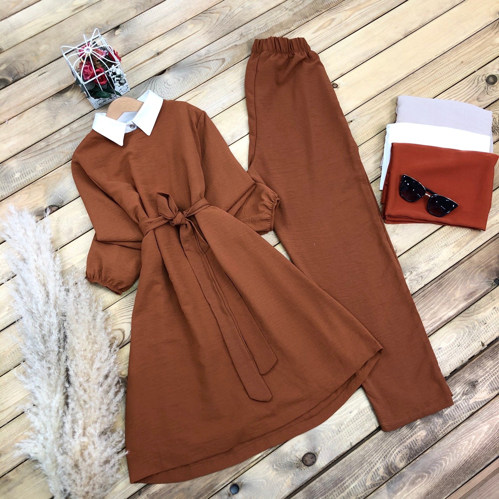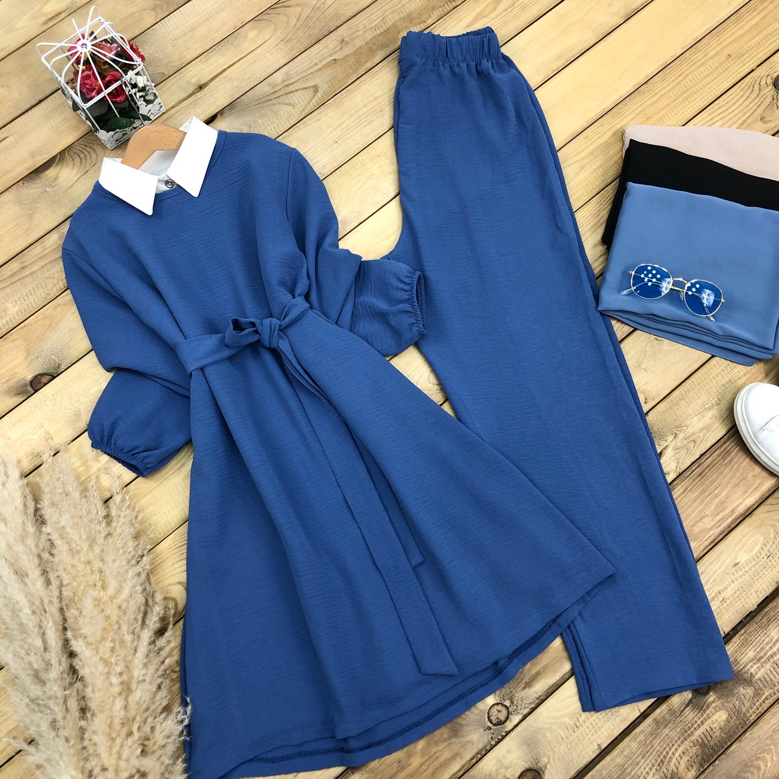 Tam kalıp birebir bedendir. Astarsızdır. Pantolon beli lastiklidir. Esneme payı yoktur. Gömlek dahil değildir. Tunik arkadan düğmelidir. Kuşaklıdır. İsteğe bağlı olarak kuşaksızda kullanılabilir.