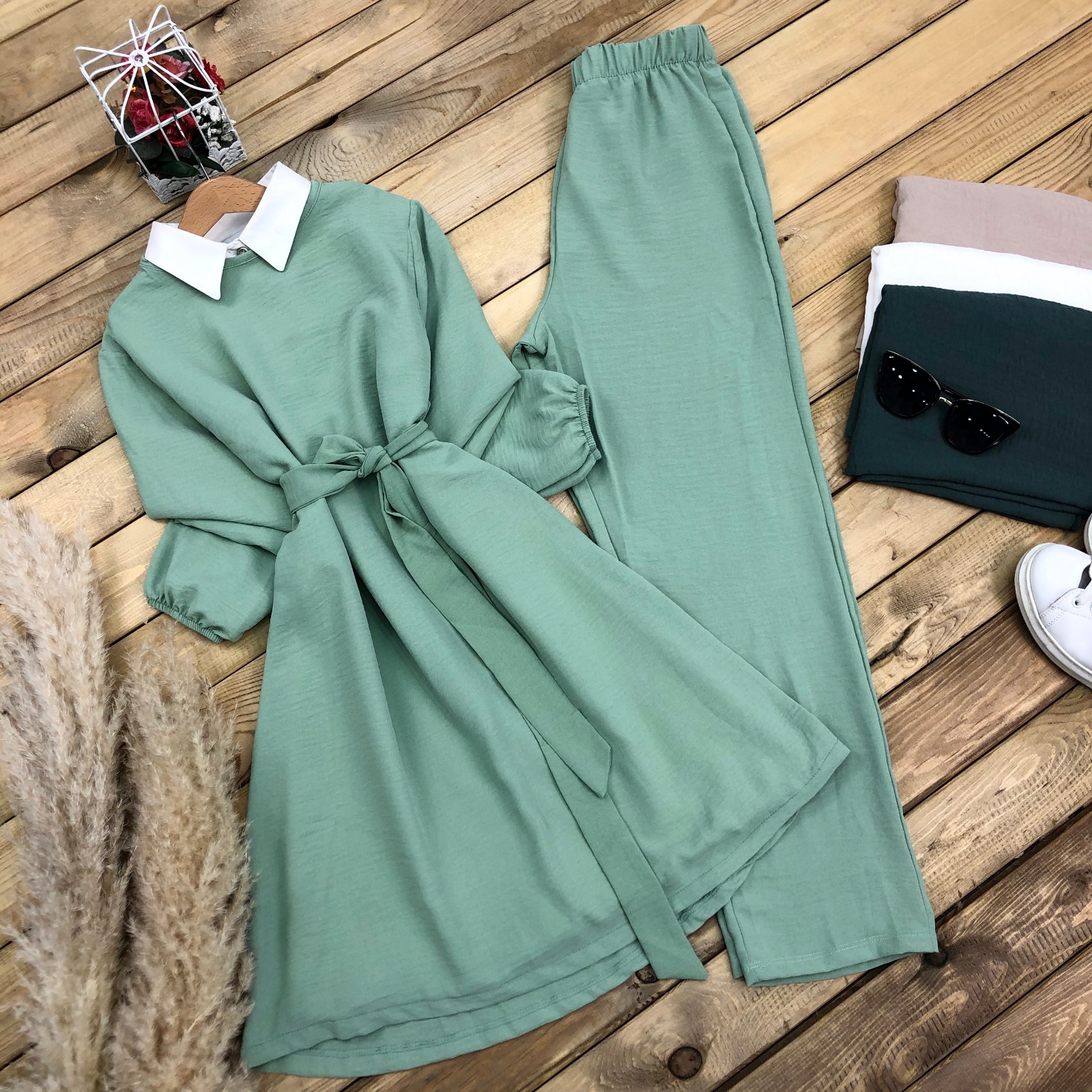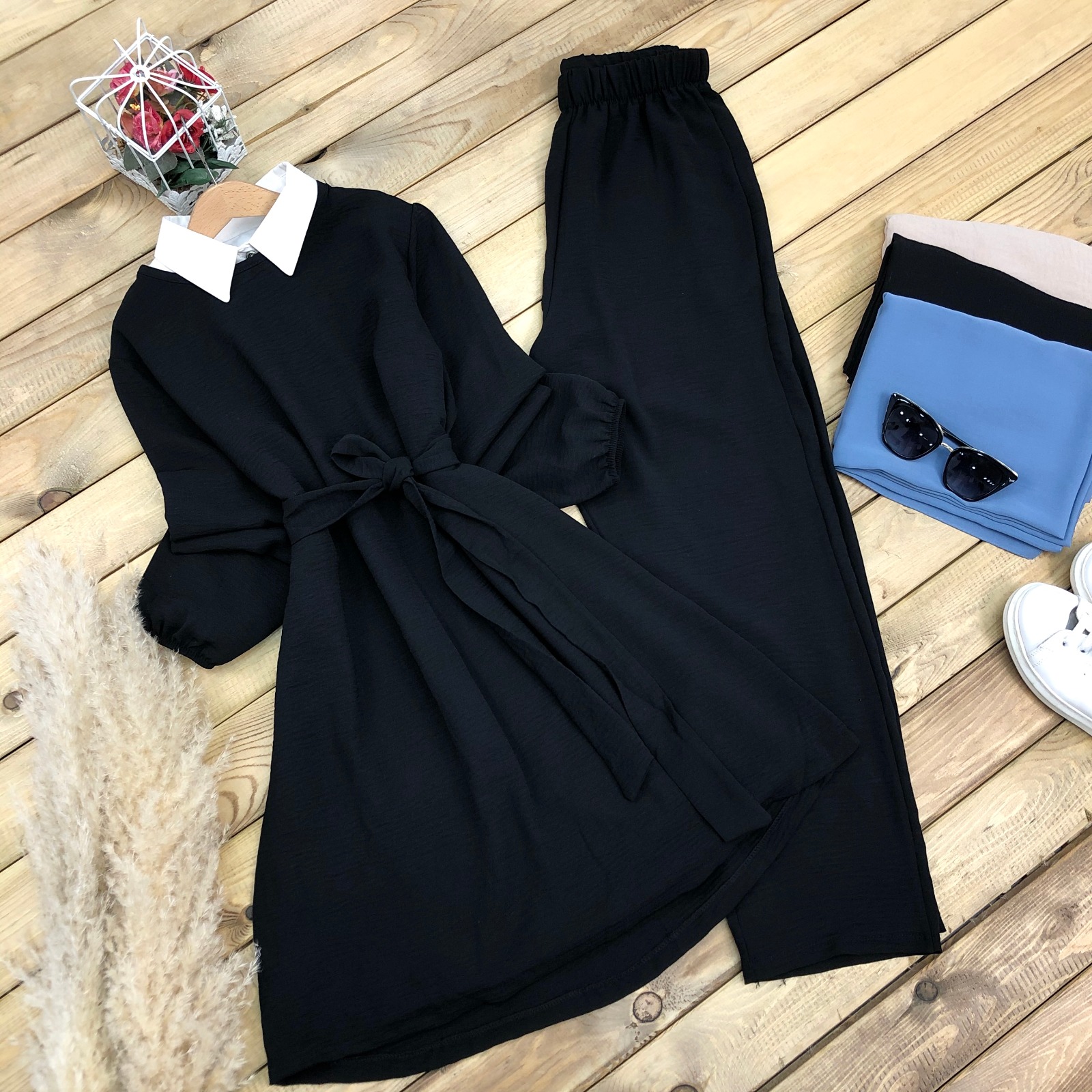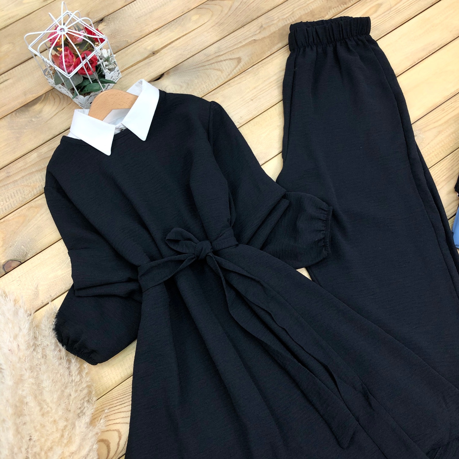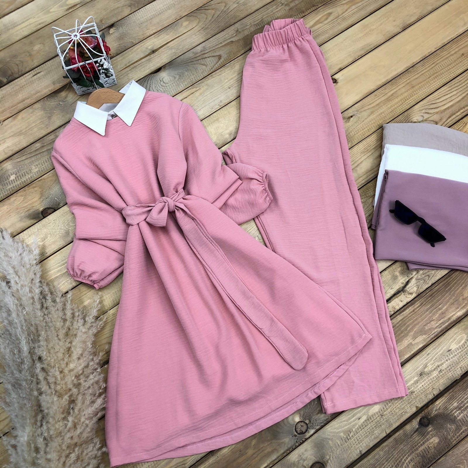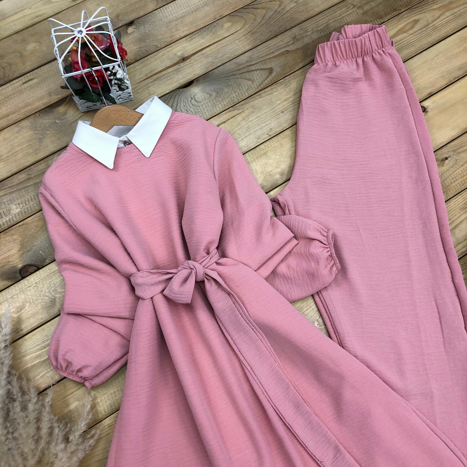 Tam kalıp birebir bedendir. Astarsızdır. Pantolon beli lastiklidir. Esneme payı yoktur. Gömlek dahil değildir. Tunik arkadan düğmelidir. Kuşaklıdır. İsteğe bağlı olarak kuşaksızda kullanılabilir.