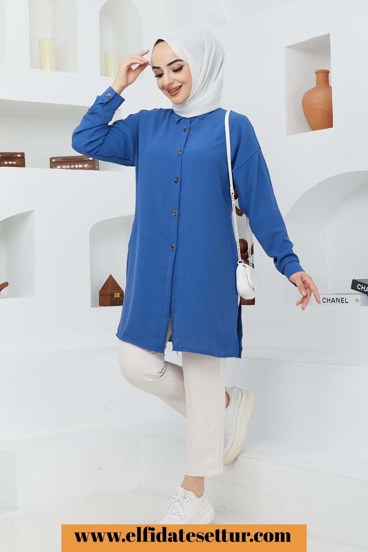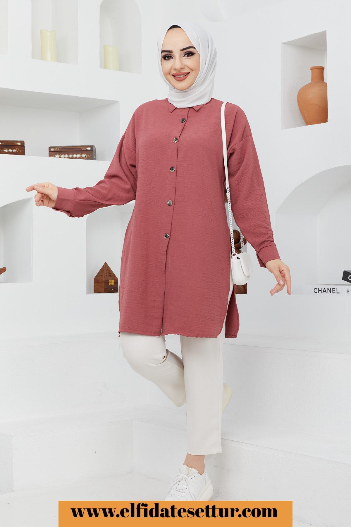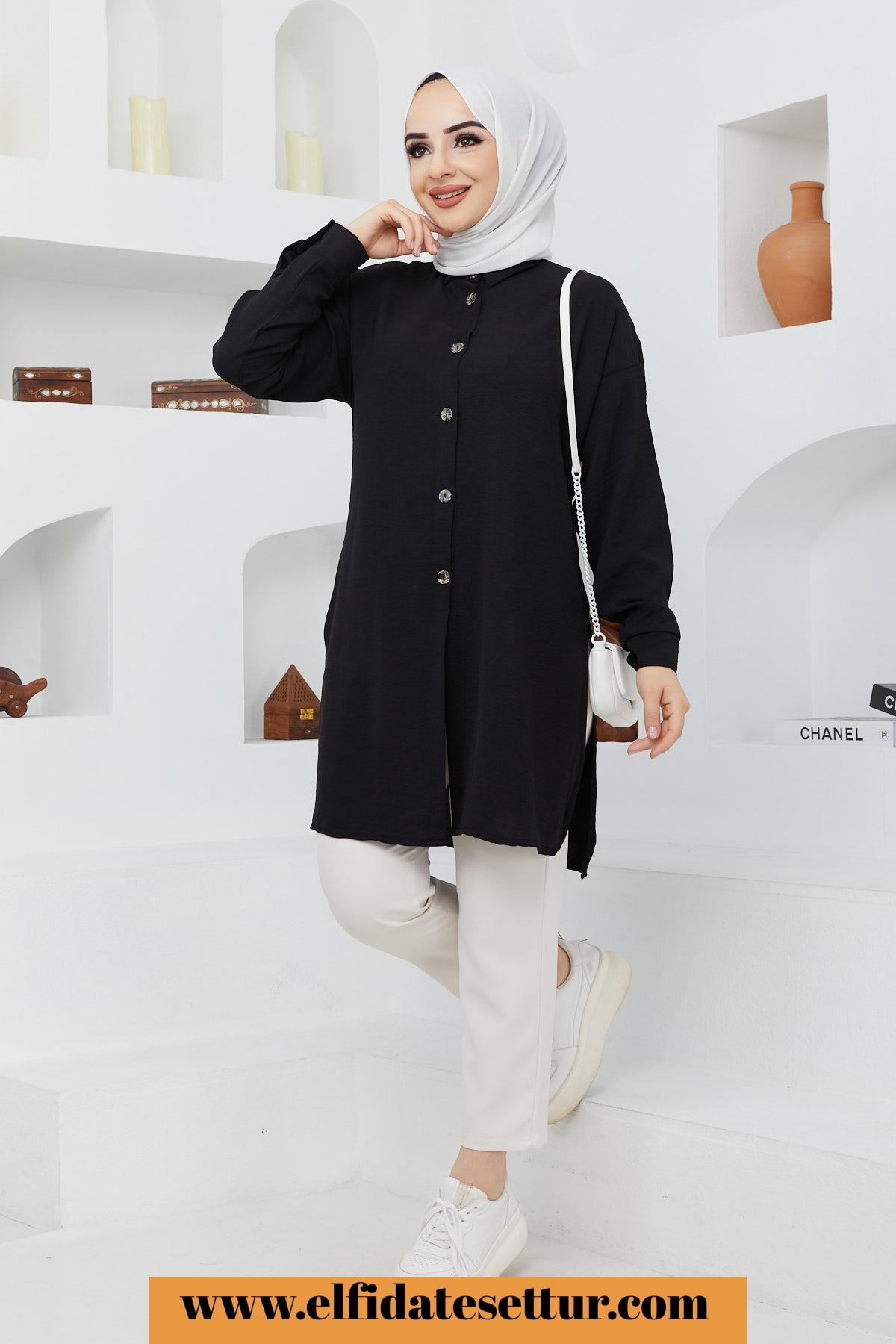 🌷Yan Yırtmaç Detaylı Ayrobin Tesettür Tunik/Siyah