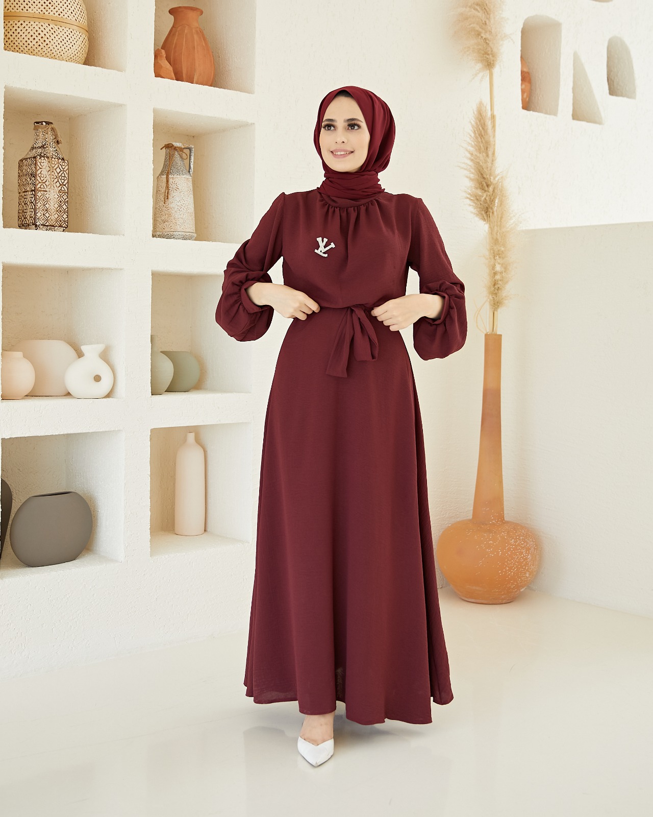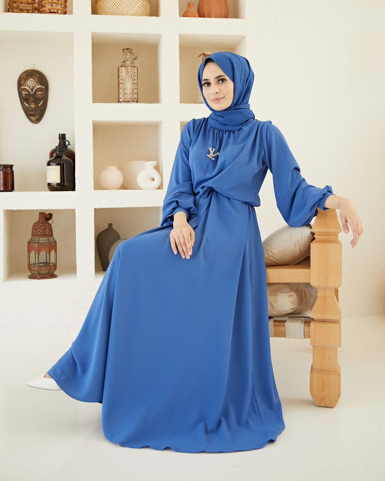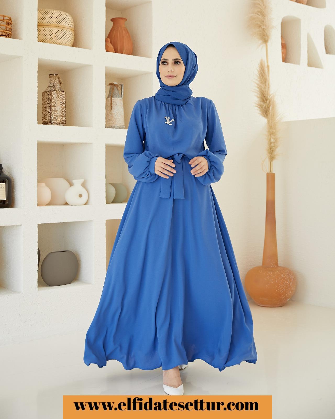 YAKASI BÜZGÜLÜ, SEYYAR KUŞAKLI ELBİSE🧿.
