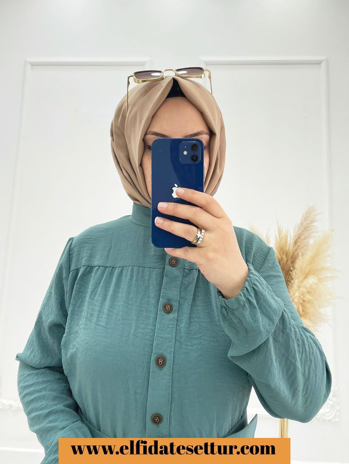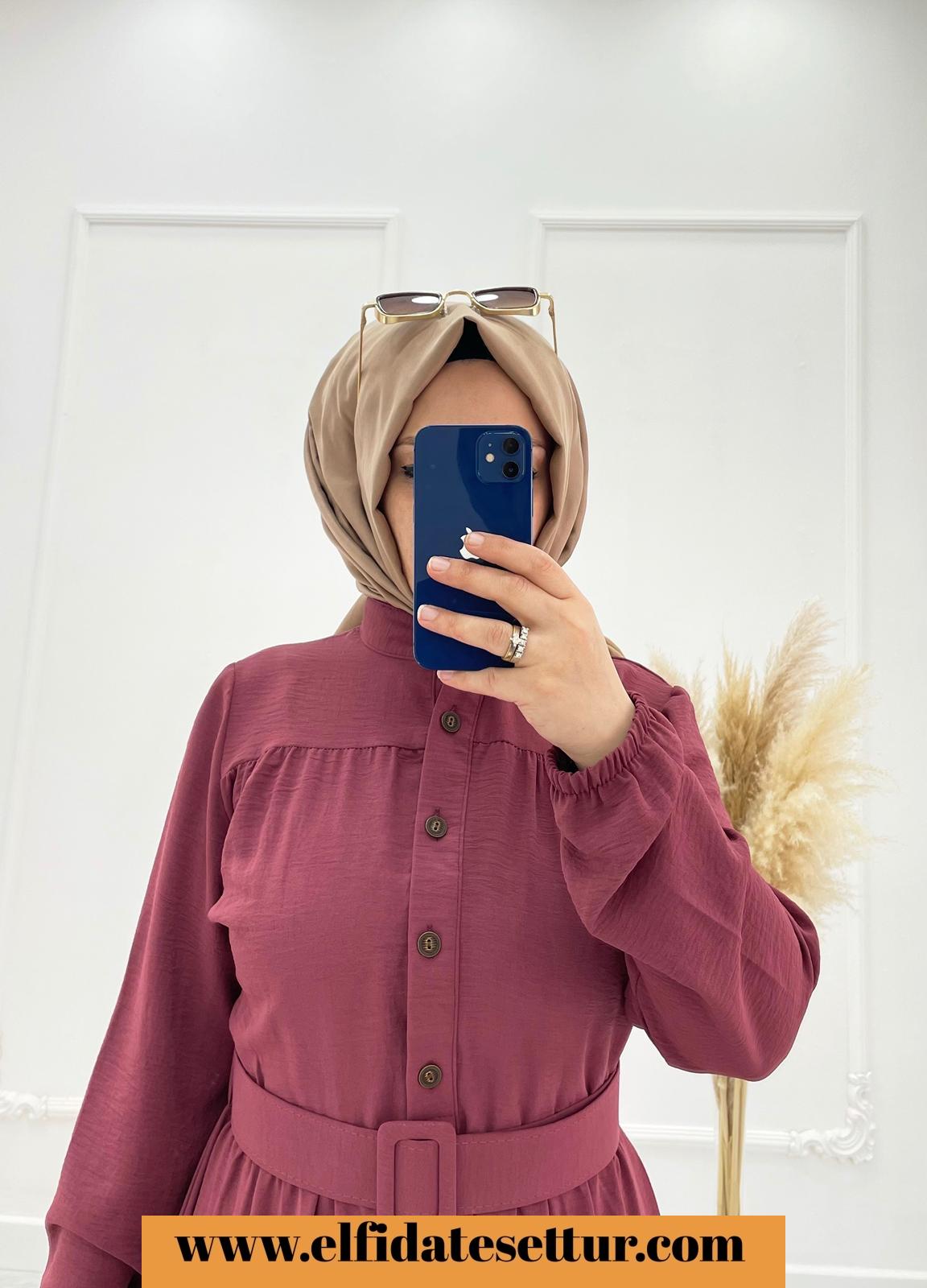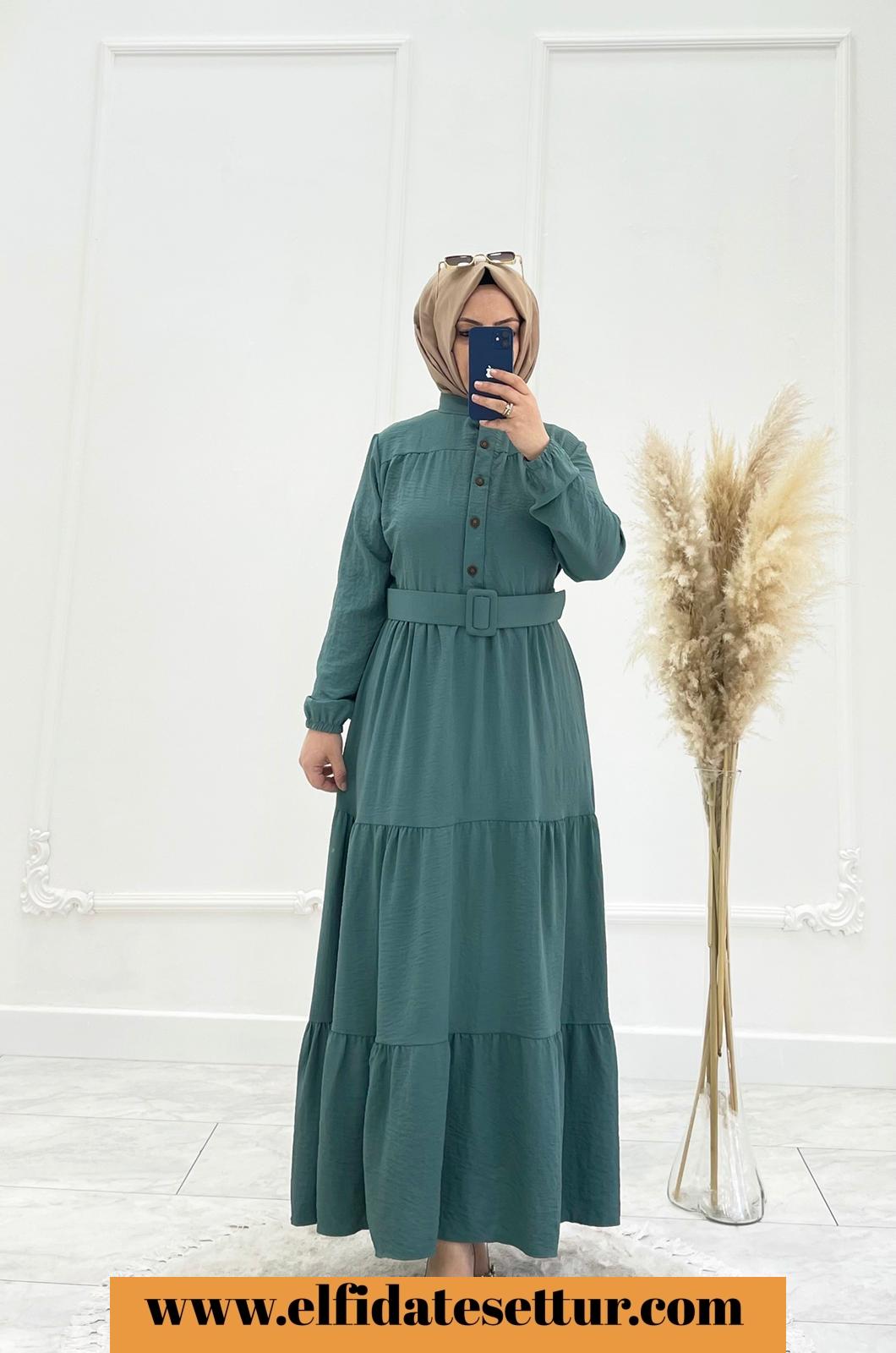💐135/140 cm kemerli önden düğmeli
