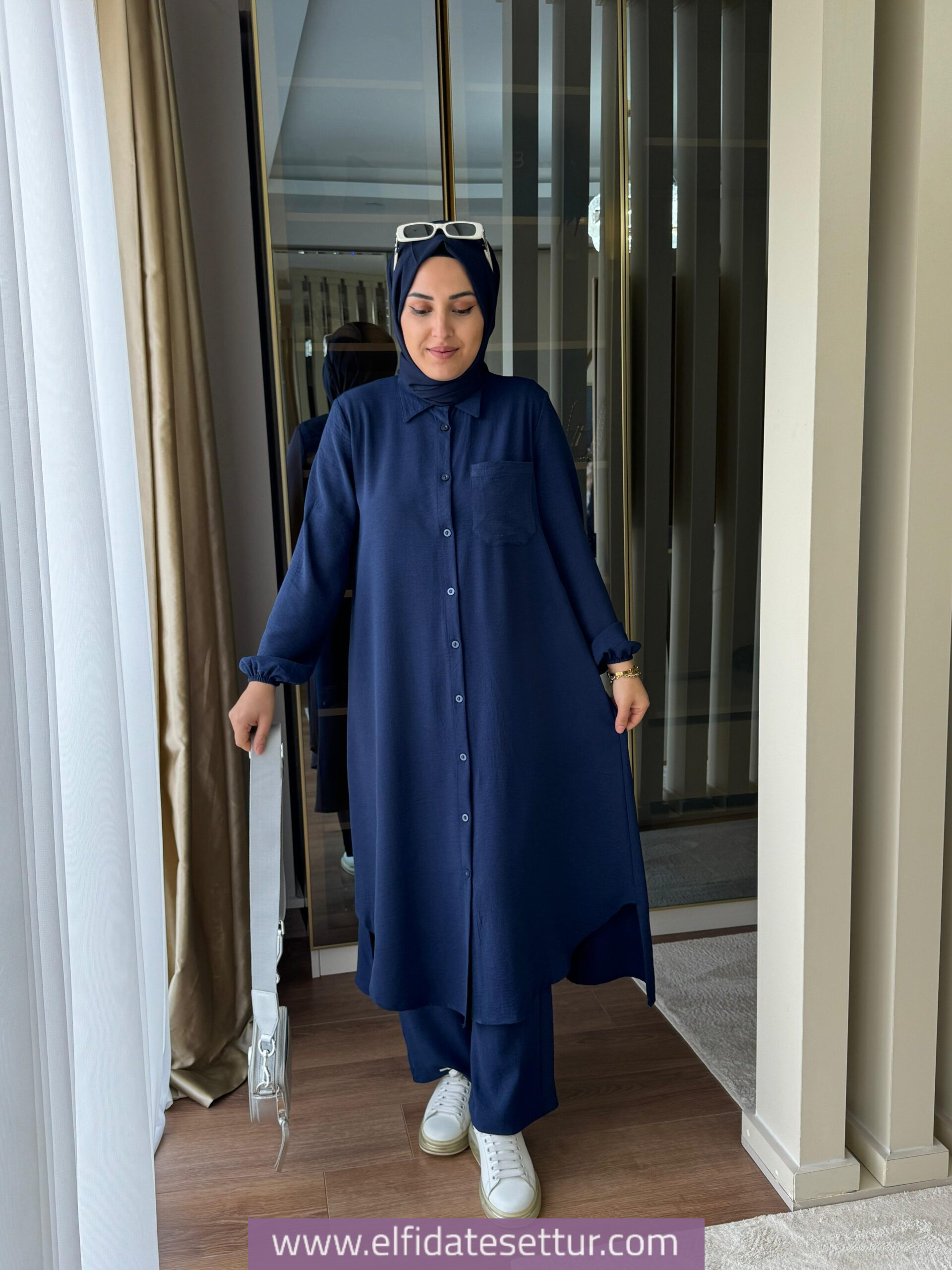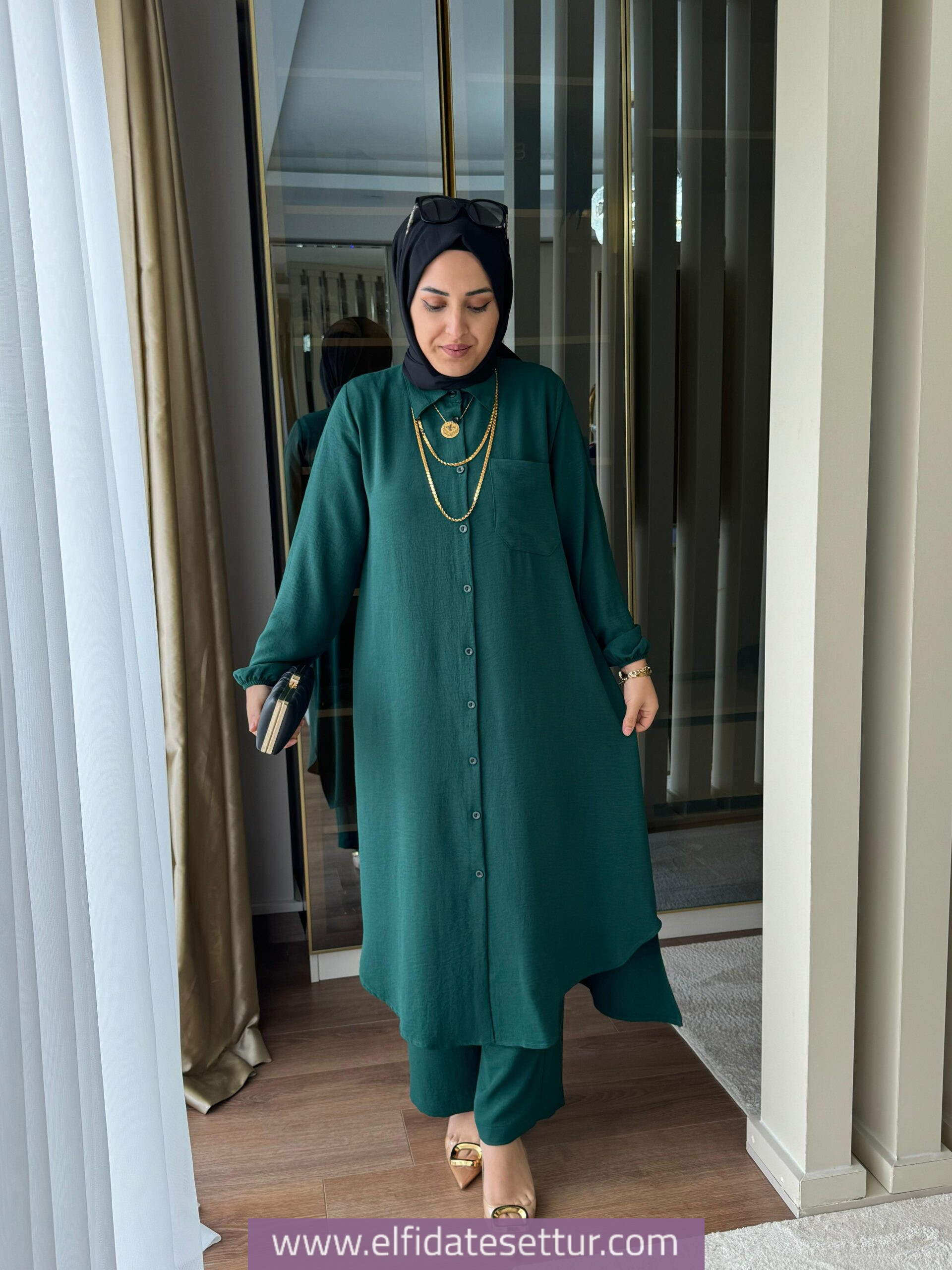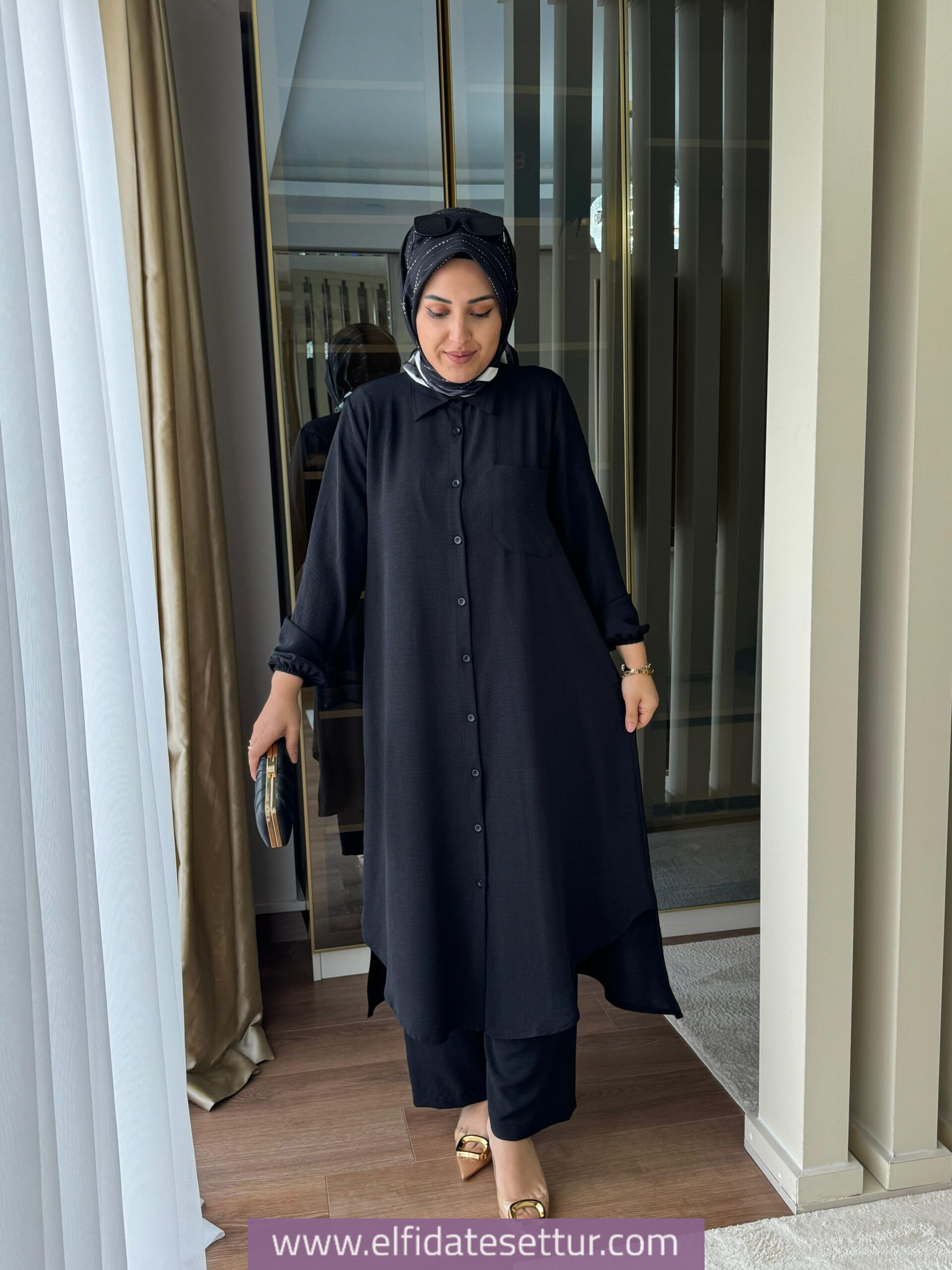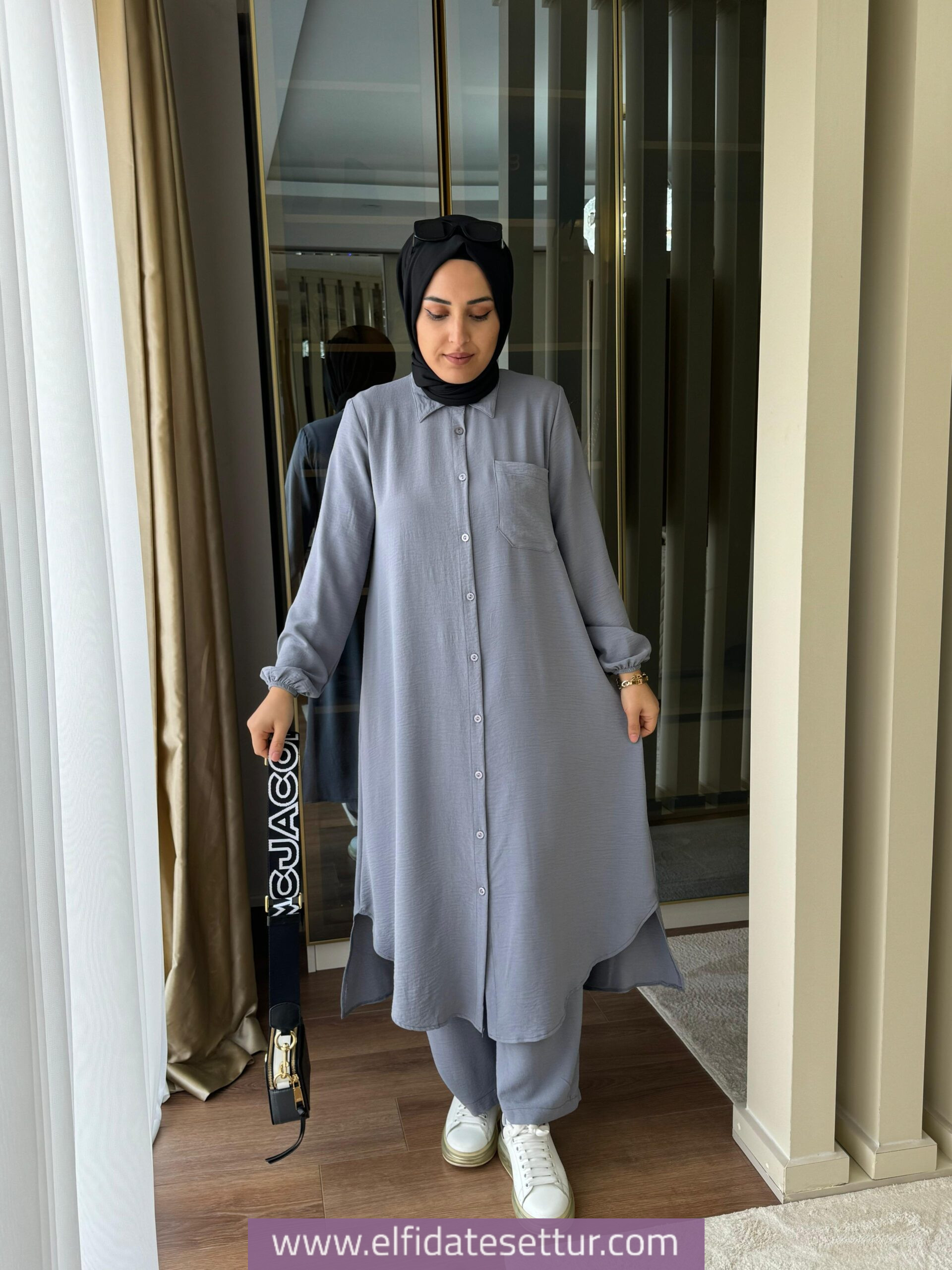 Tunik ön boy 115 cm, arka boy 120 cm’dir.