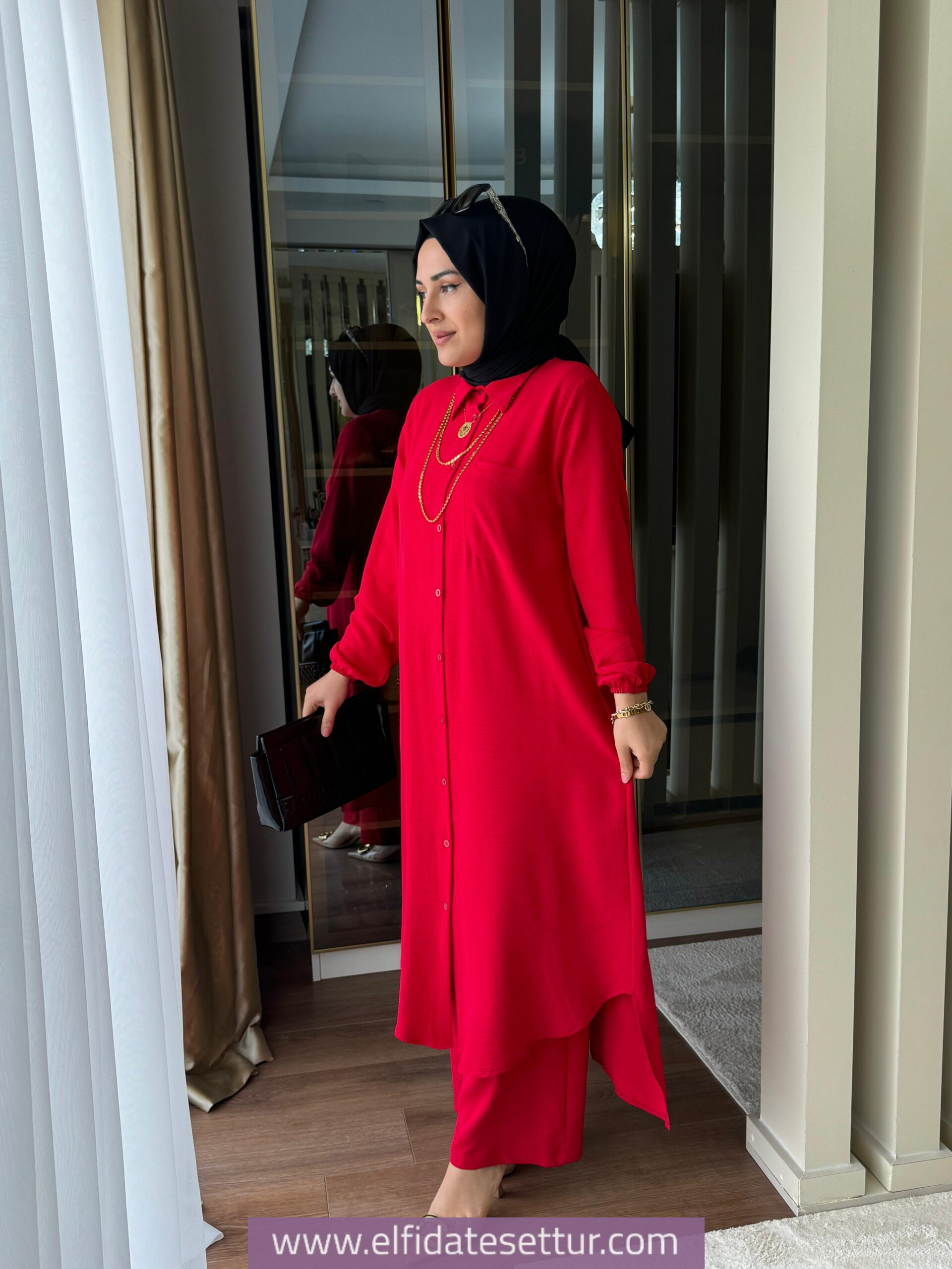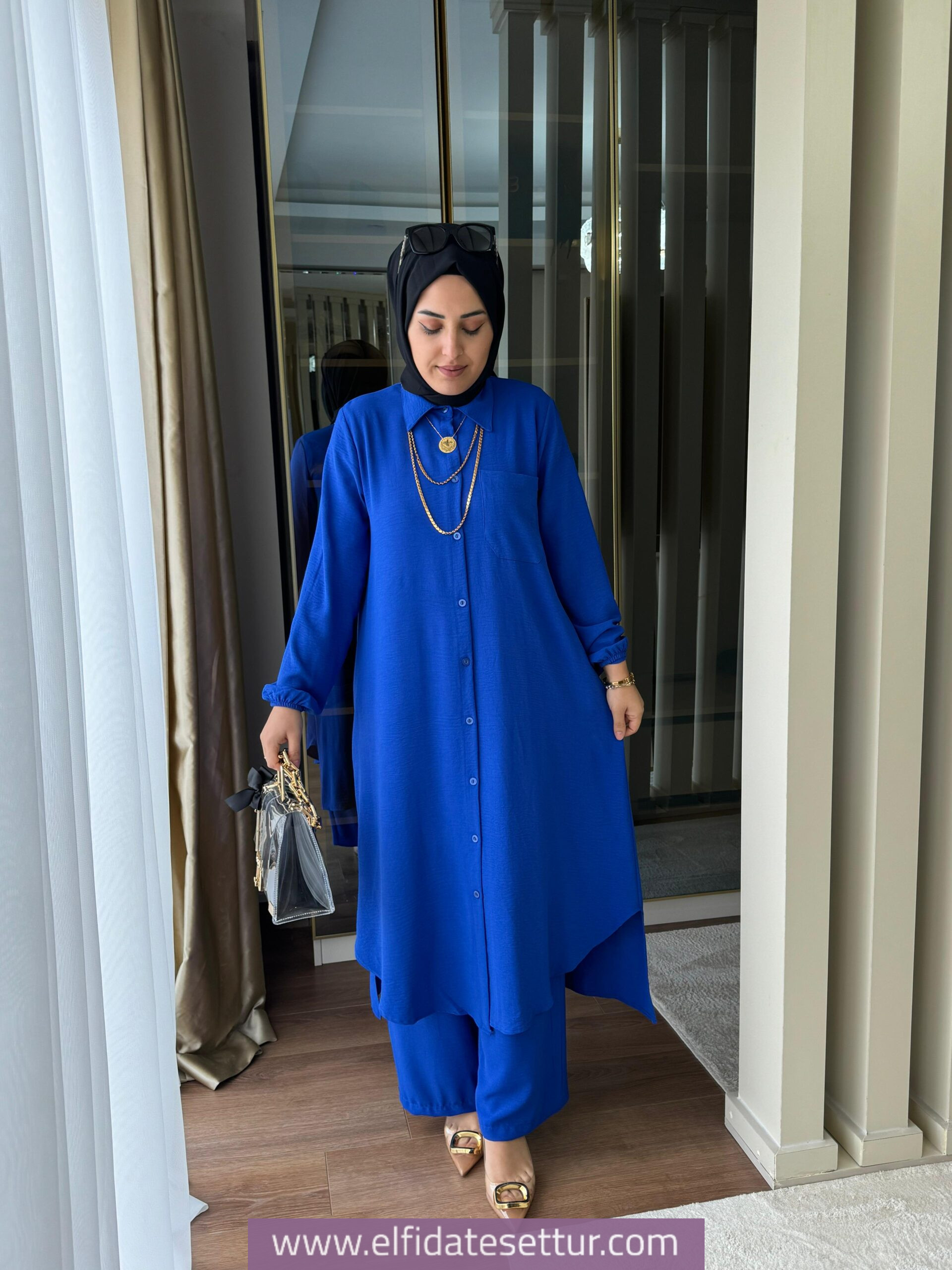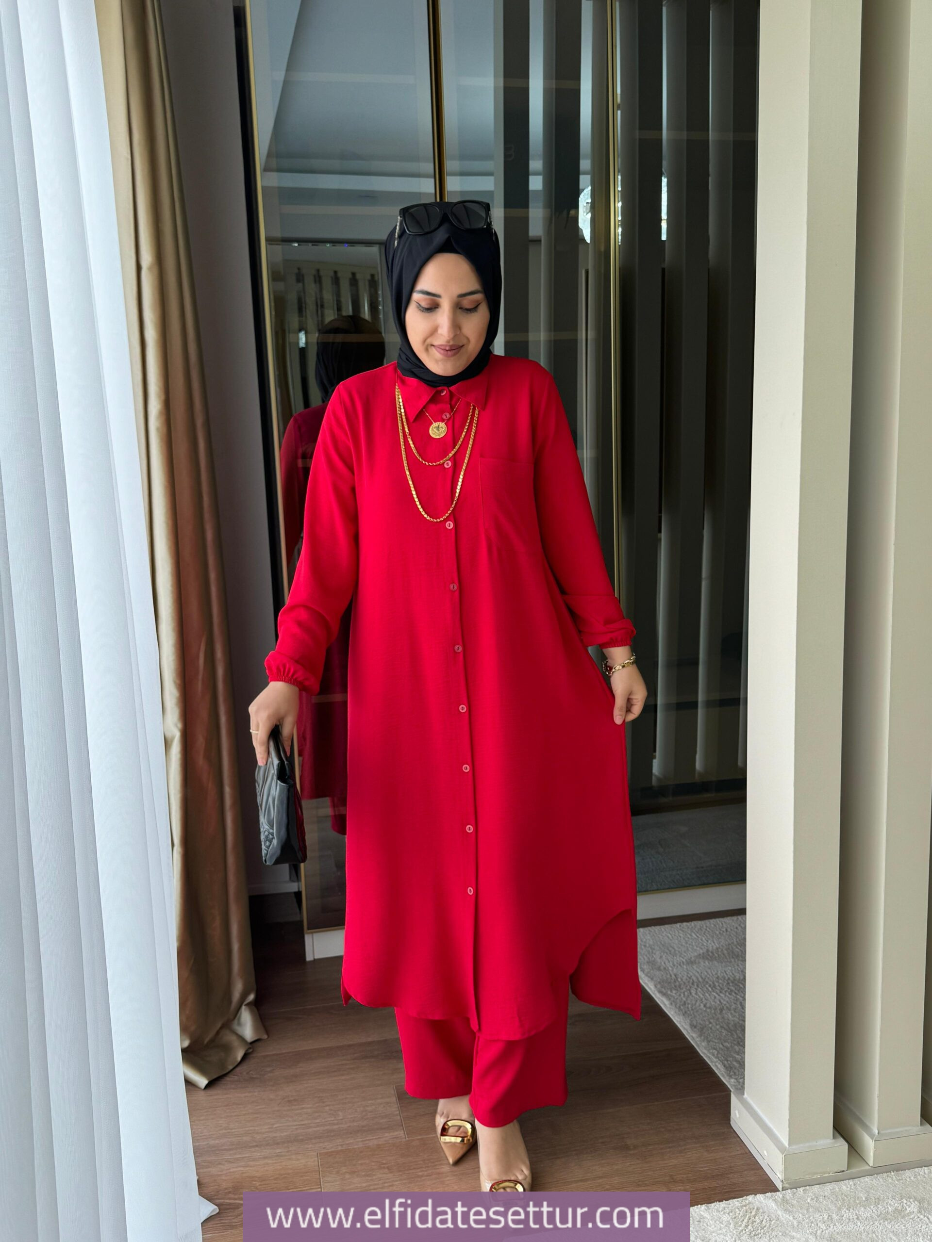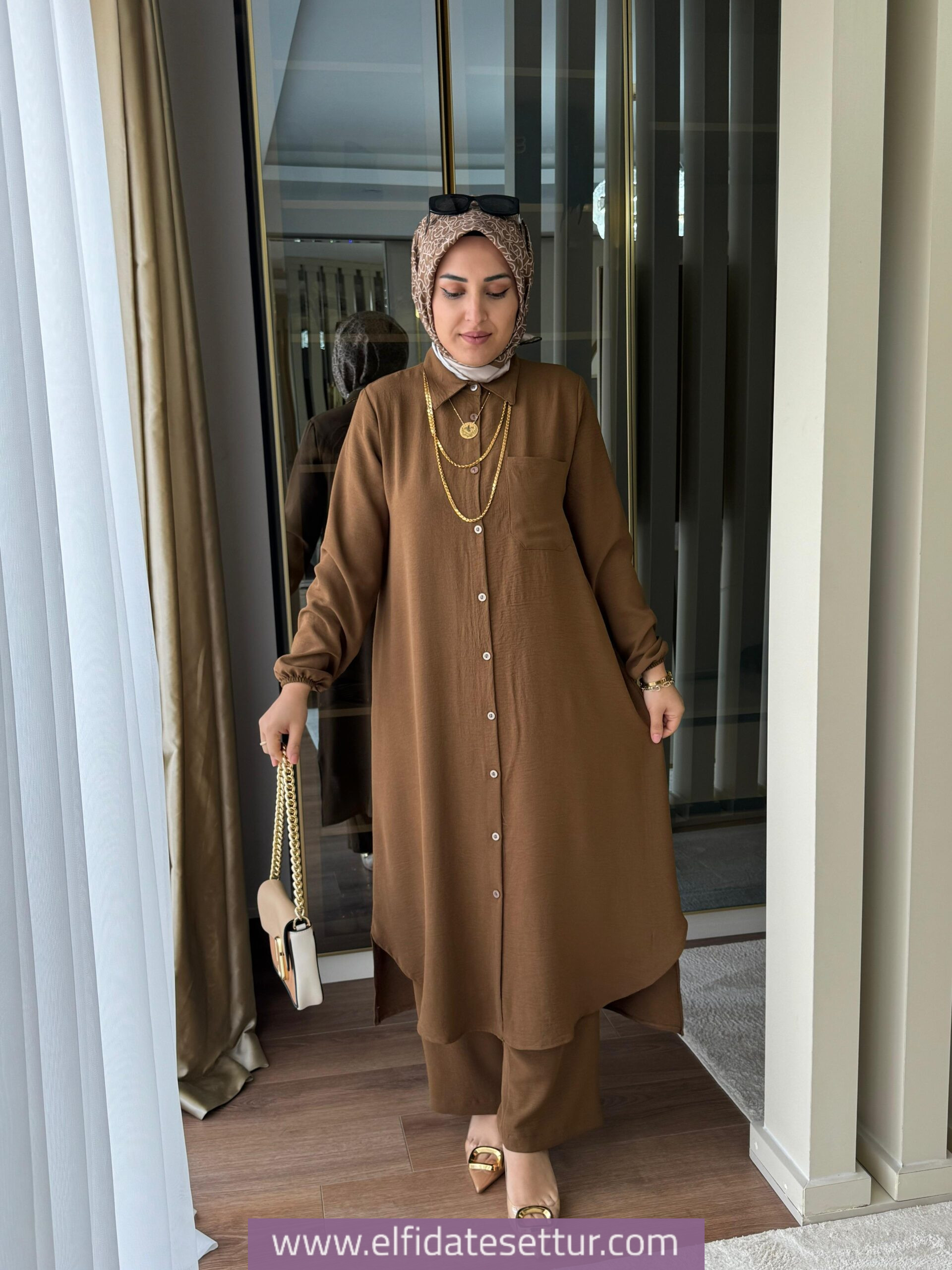 Tunik ön boy 115 cm, arka boy 120 cm’dir.