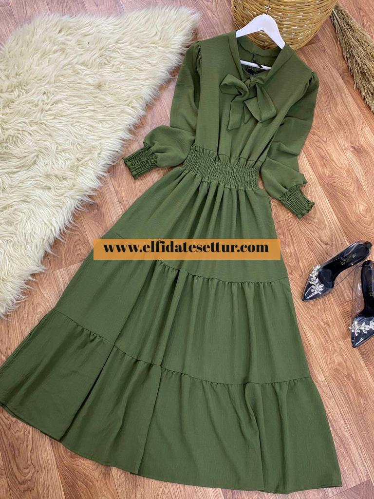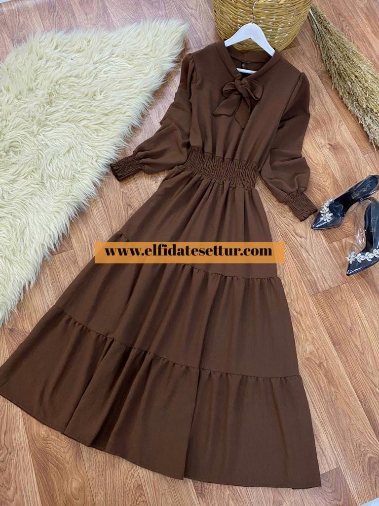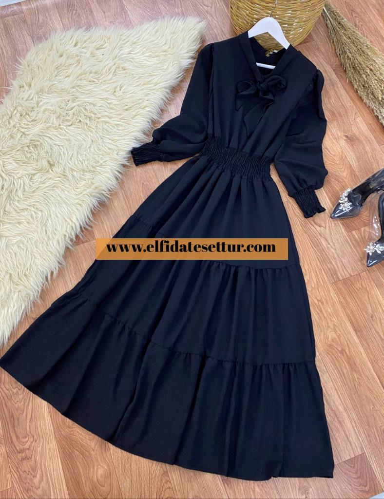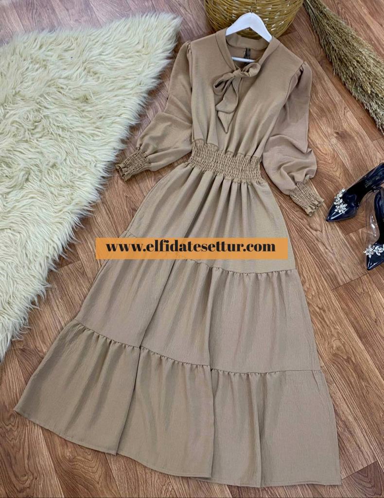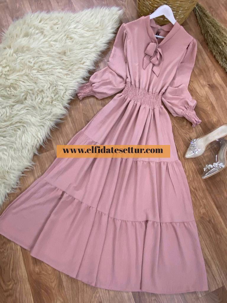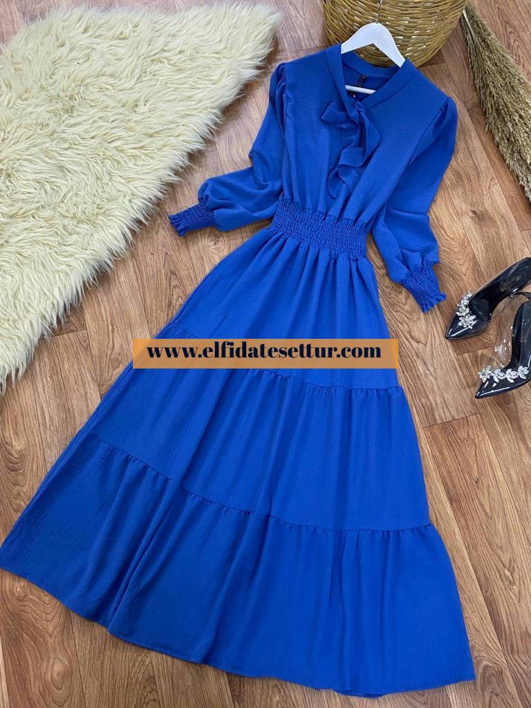 Balon kol, Bel ve kol uçları geniş lastiklidir, yakası fiyonk detaylıdır,