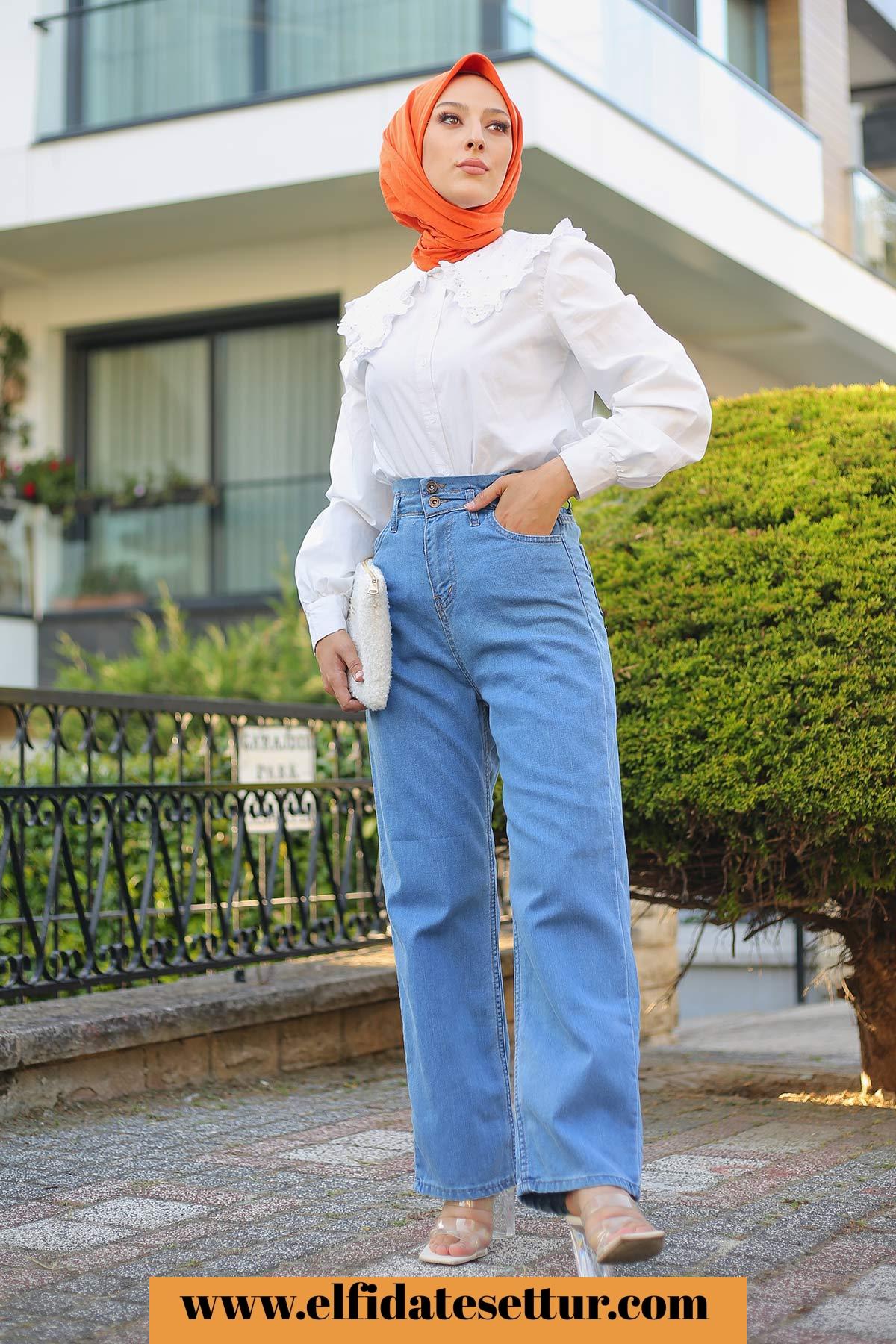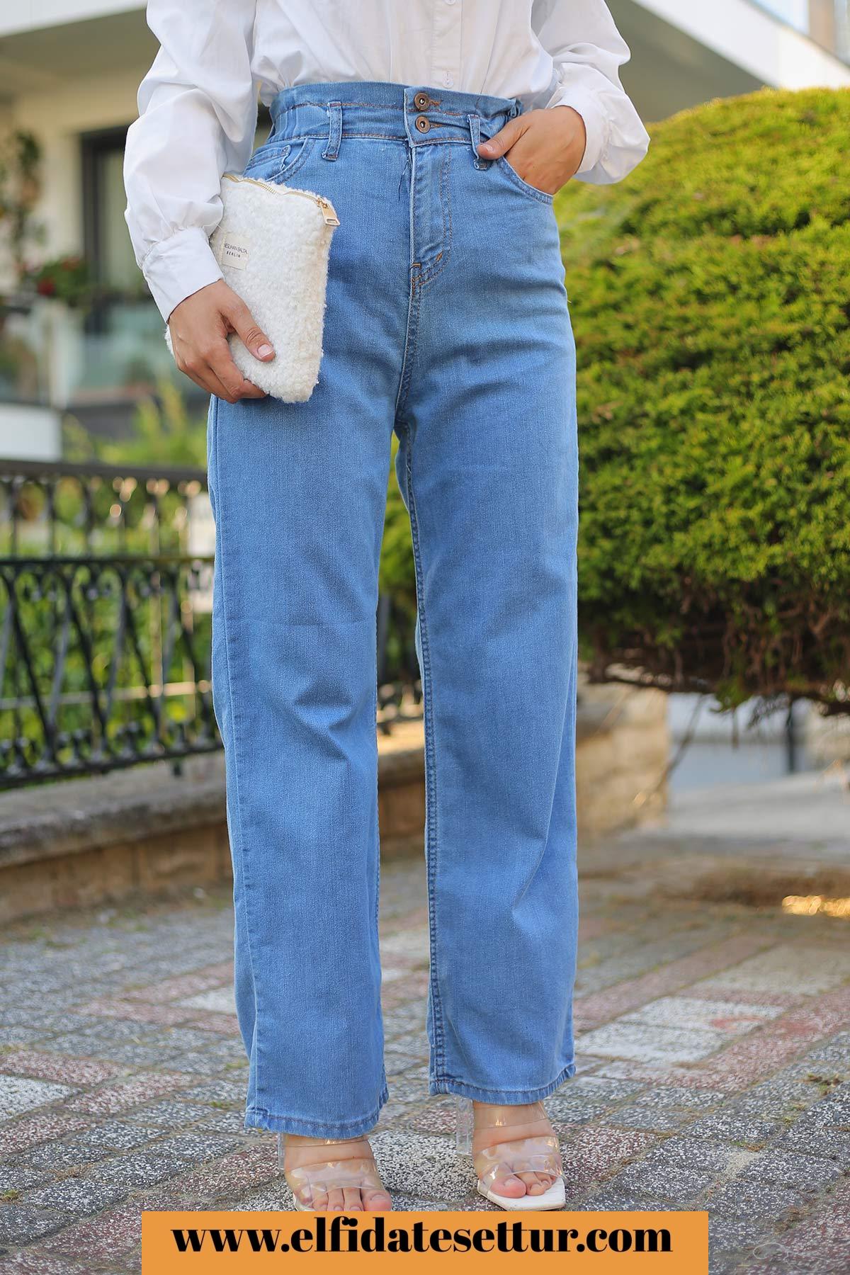 🌷Çift Düğmeli Bol Paça Kot Pantolon