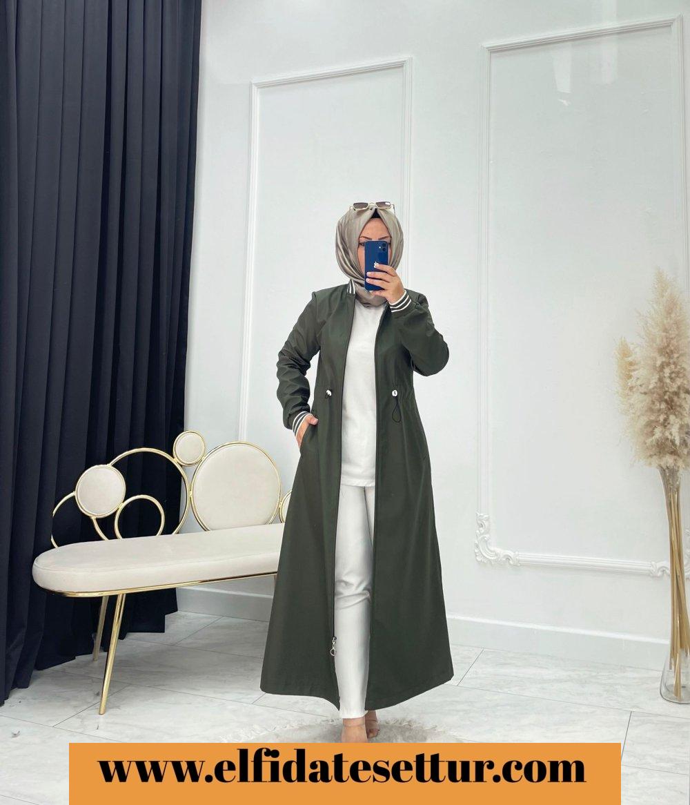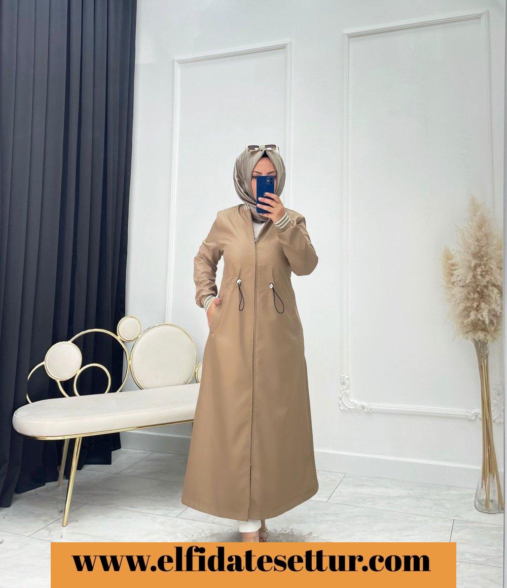 💐130 cm önden fermuarlı belden ipli ayarlamalı kendinden astarlı