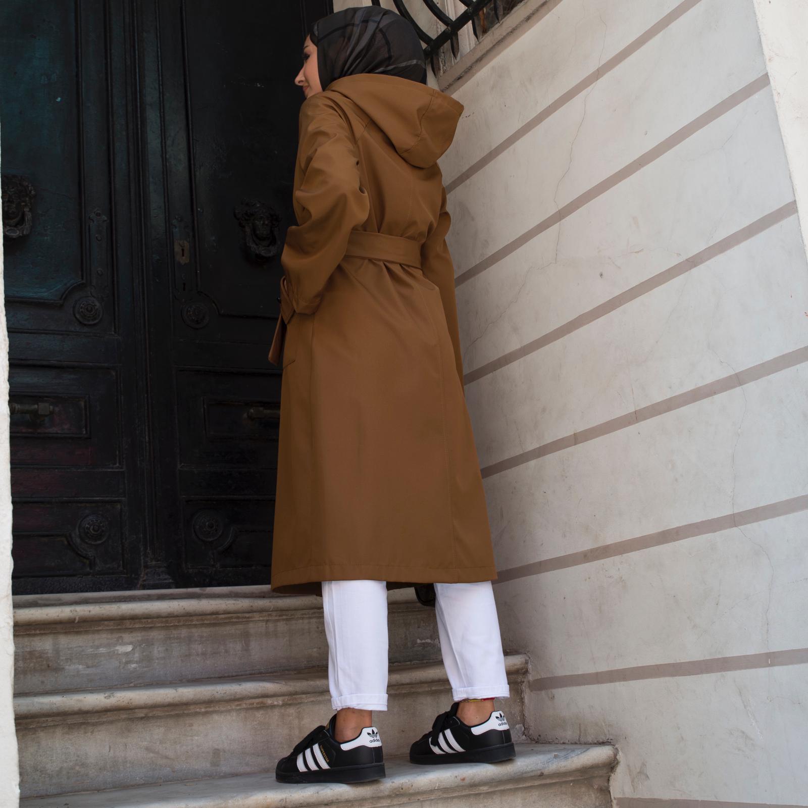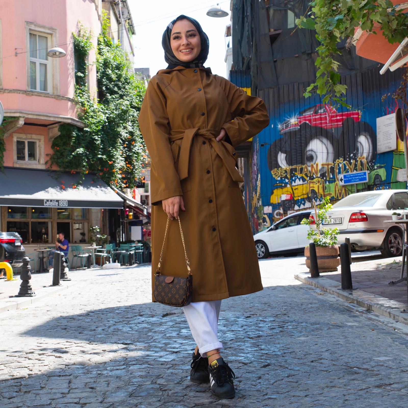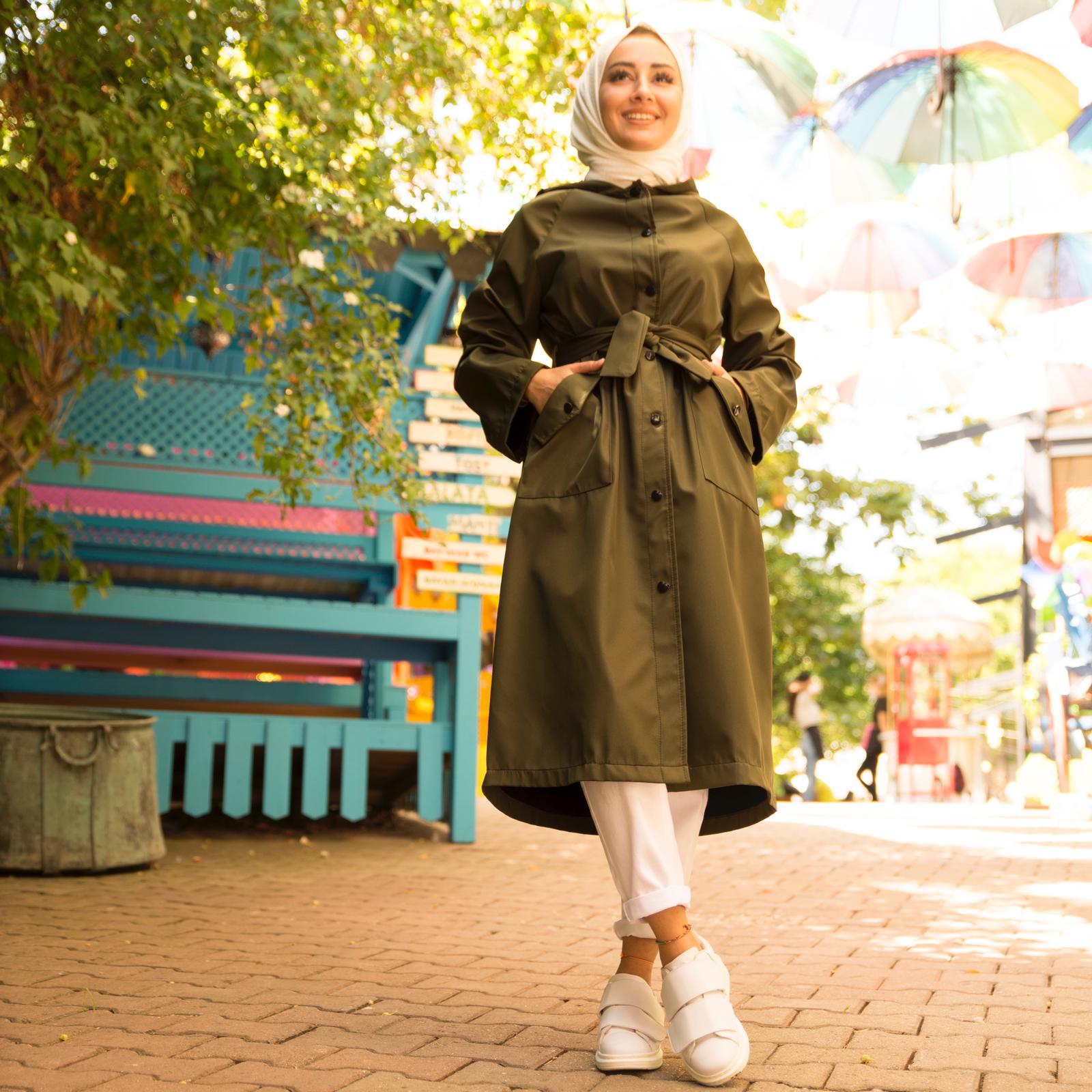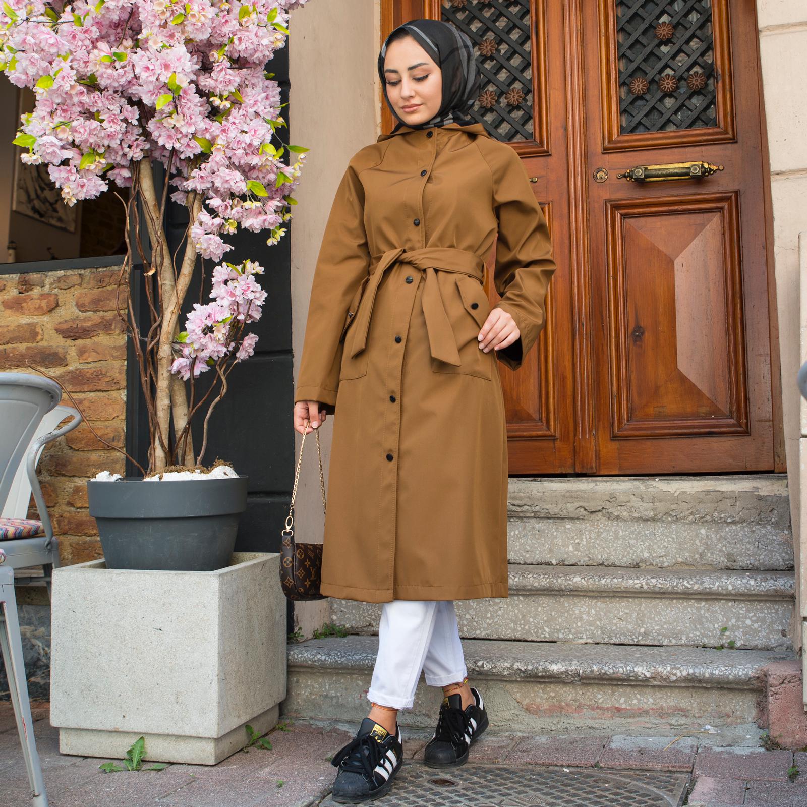 Yeni sezondur-Ön kısmı düğmelidir-Sabit Kapşonludur-Kendi kumaşından kemerlidir-Ceplidir