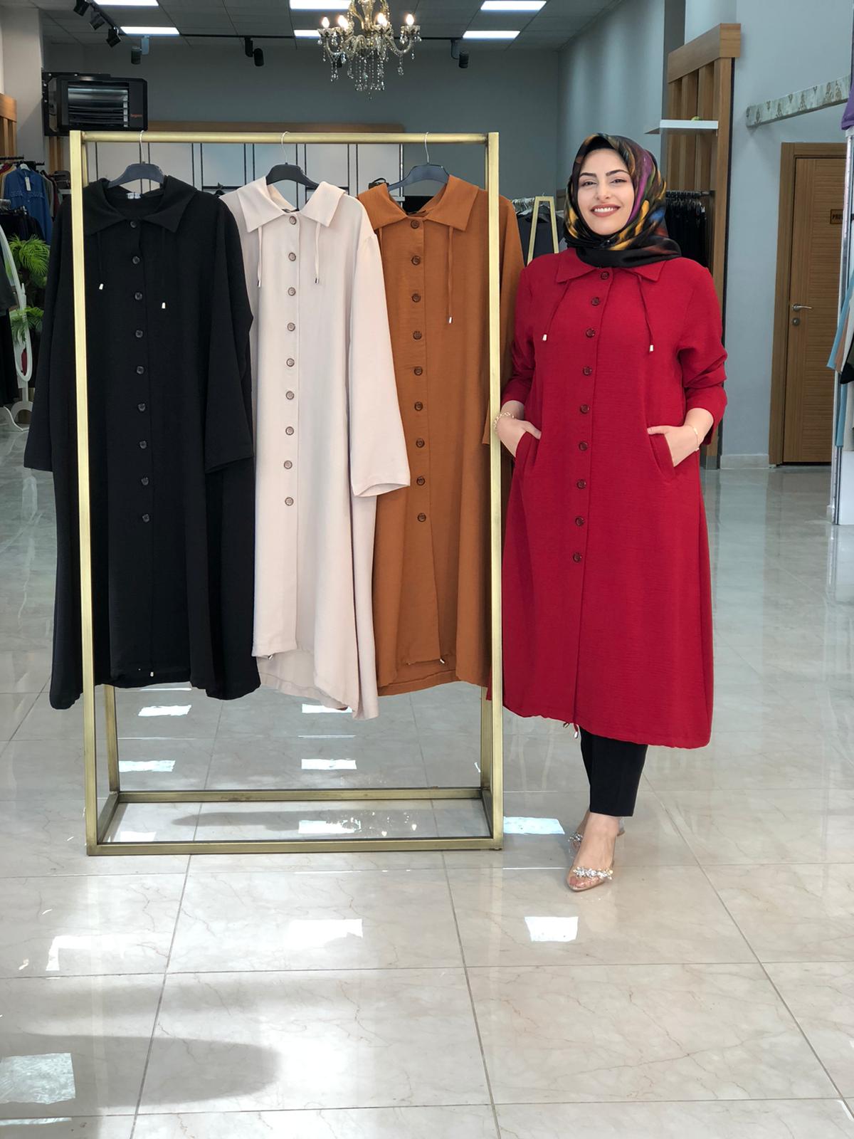 🎀arkası düğmeli yakası bağcıklı kap