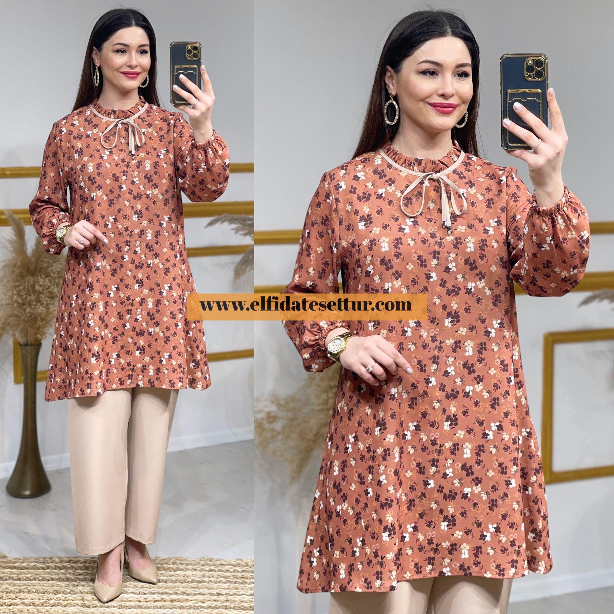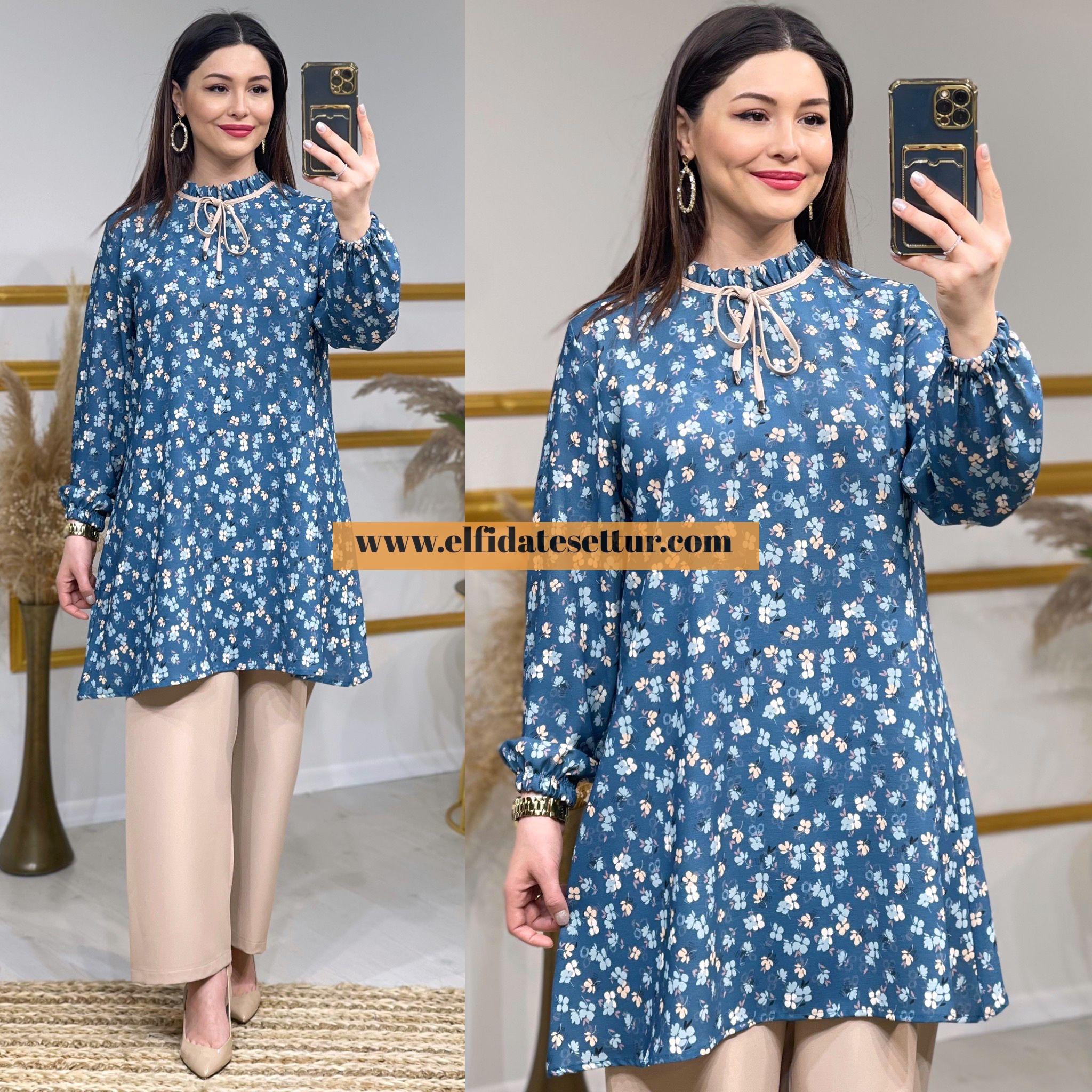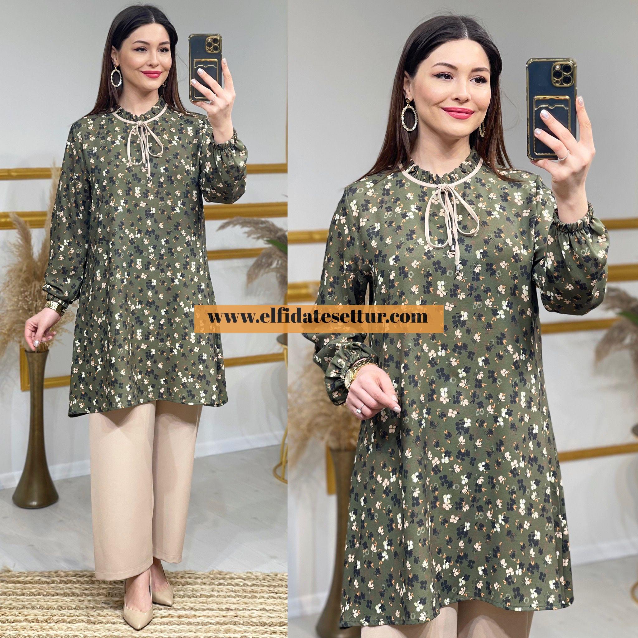 Tunik kolları lastikli.