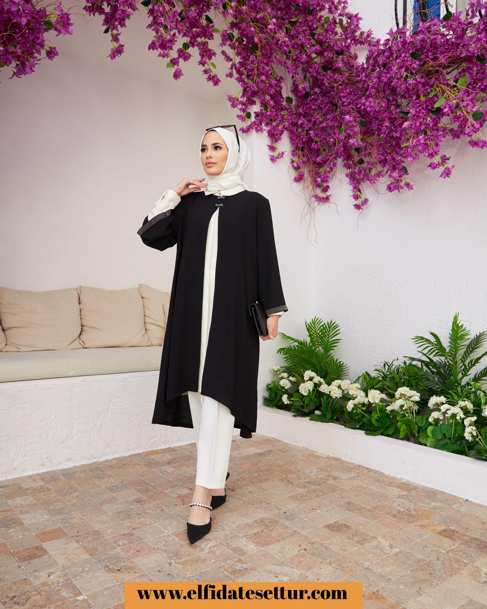 İTHAL KREP kumaştan üretilmiştir Kol ağız detayları ve tunik önden tokalı aşağı dökümlü inişi mevcut kol ağızları payet işleme yaka ovaldir