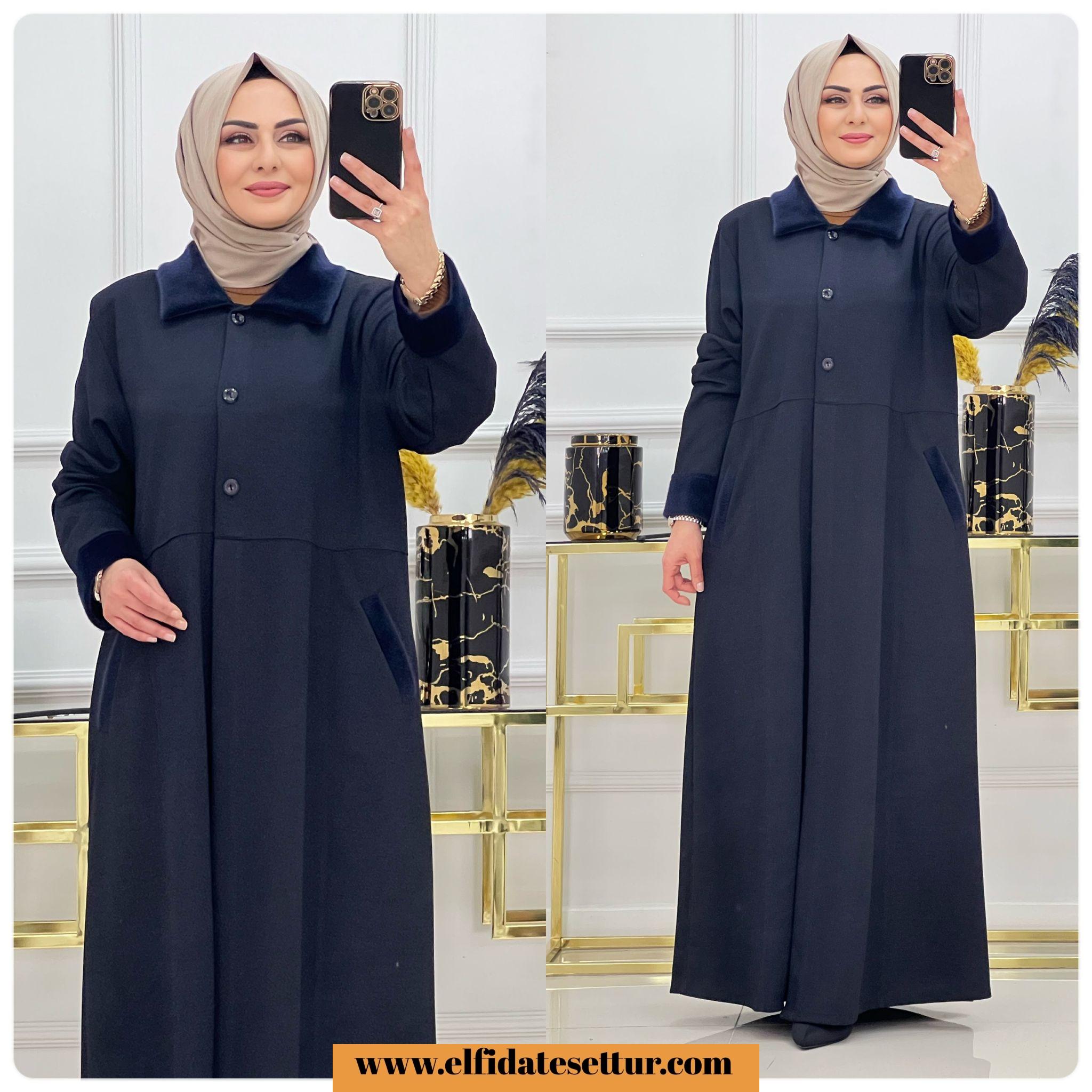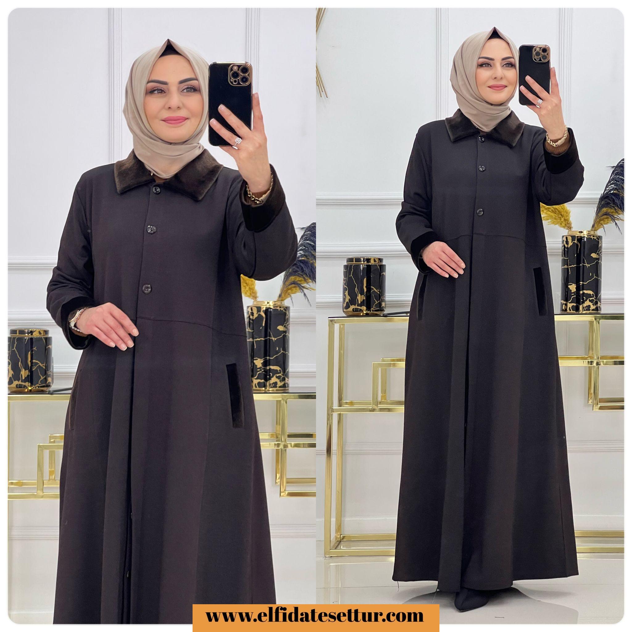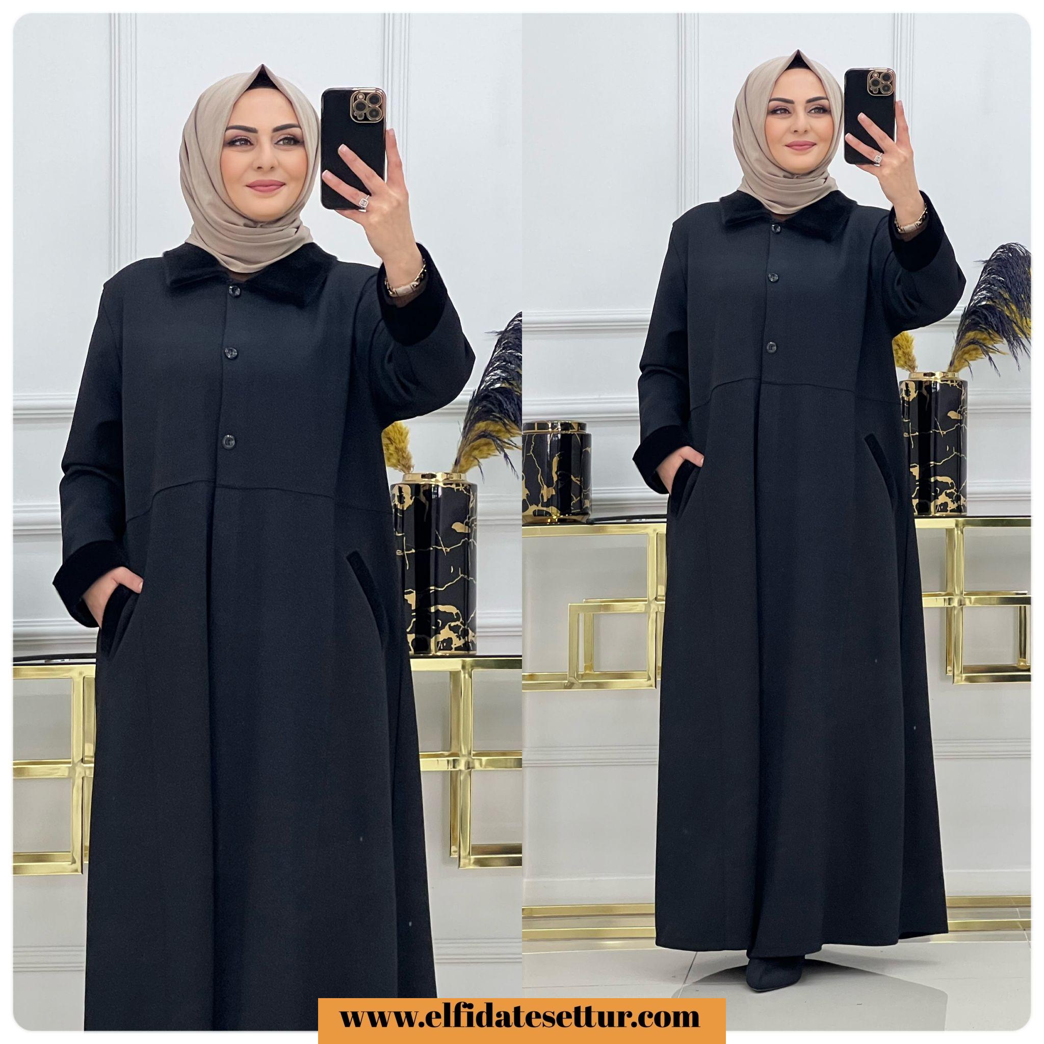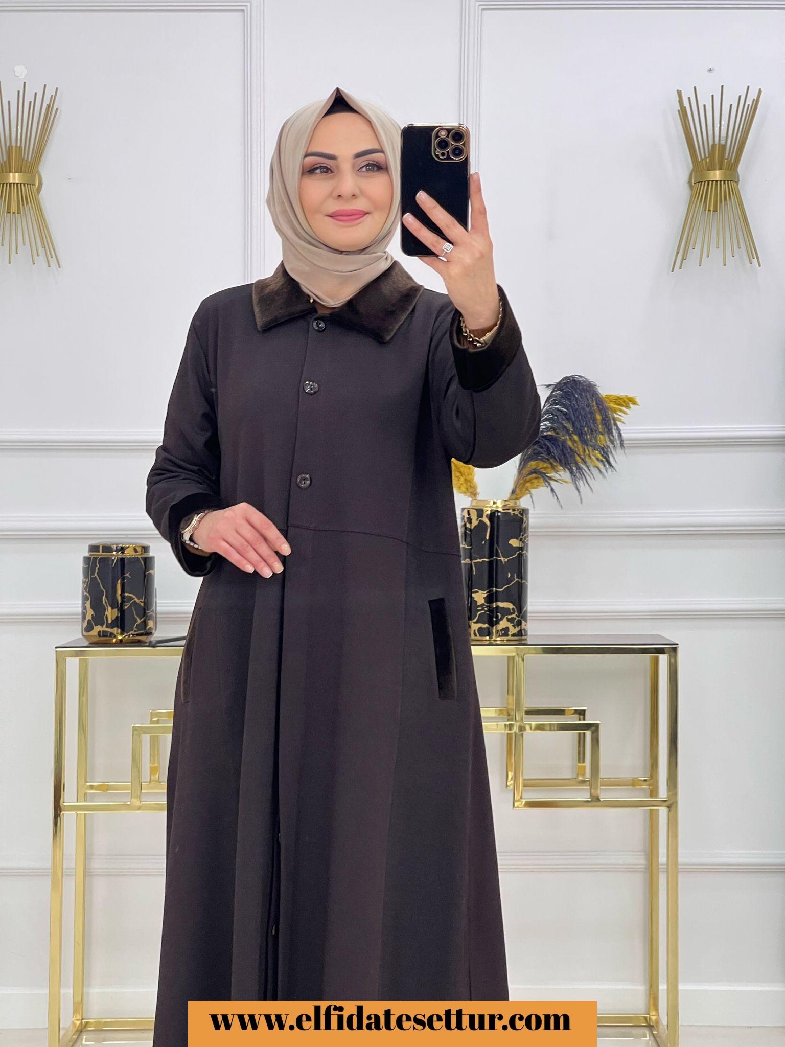 Birinci sınıf Maya kumaş yaka ve kolları kürk detaylı kışlık Rümeysa ferace