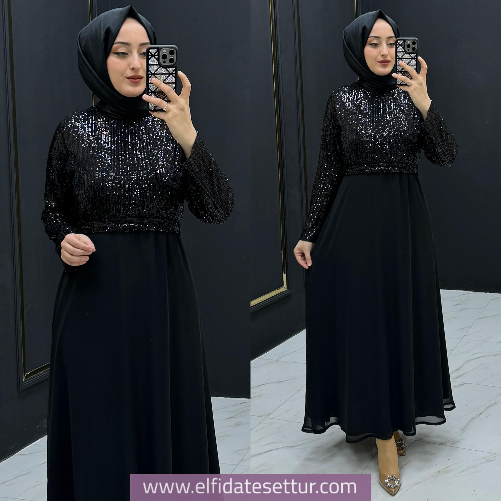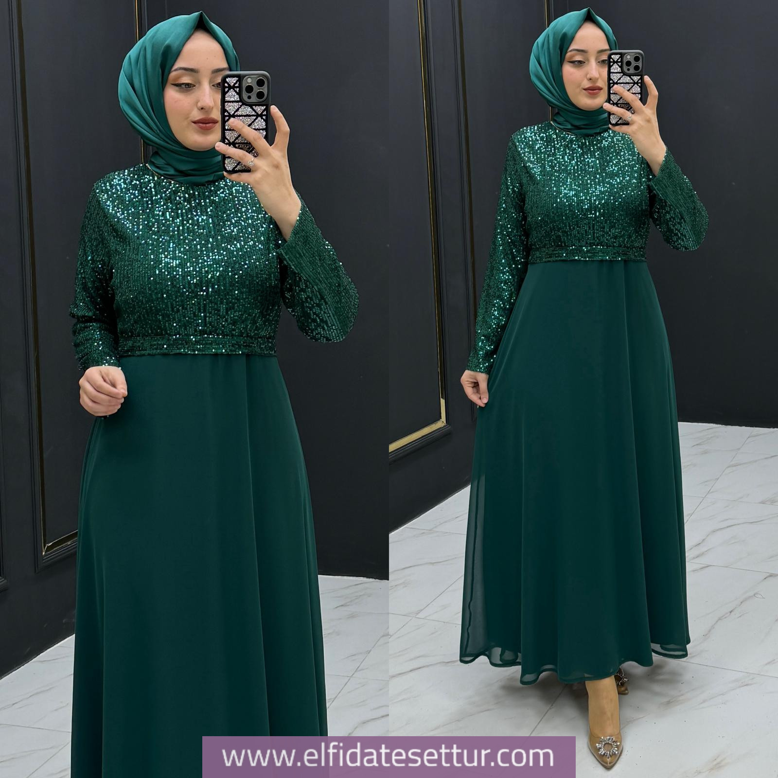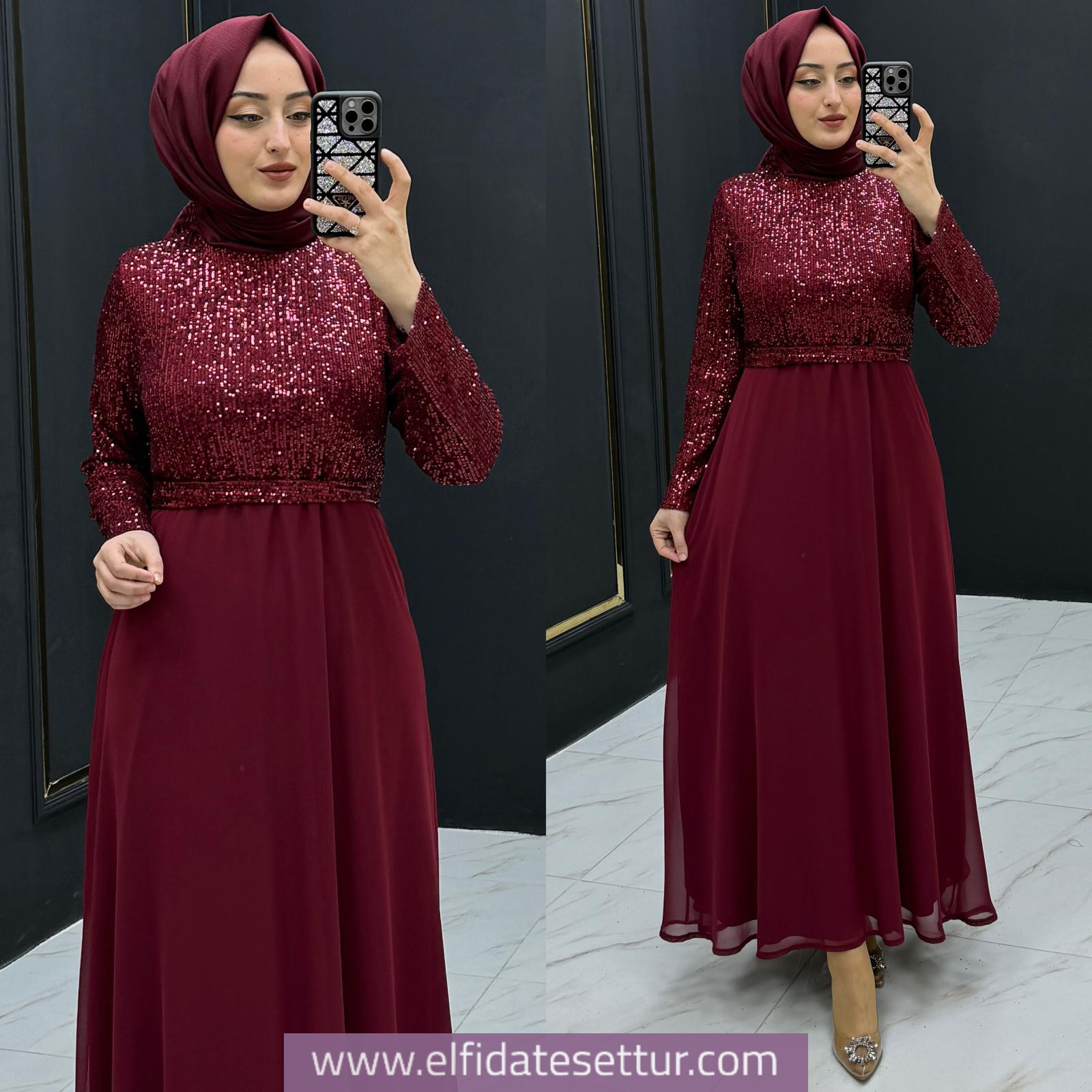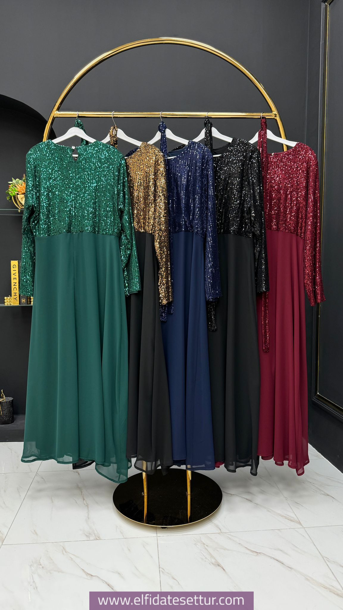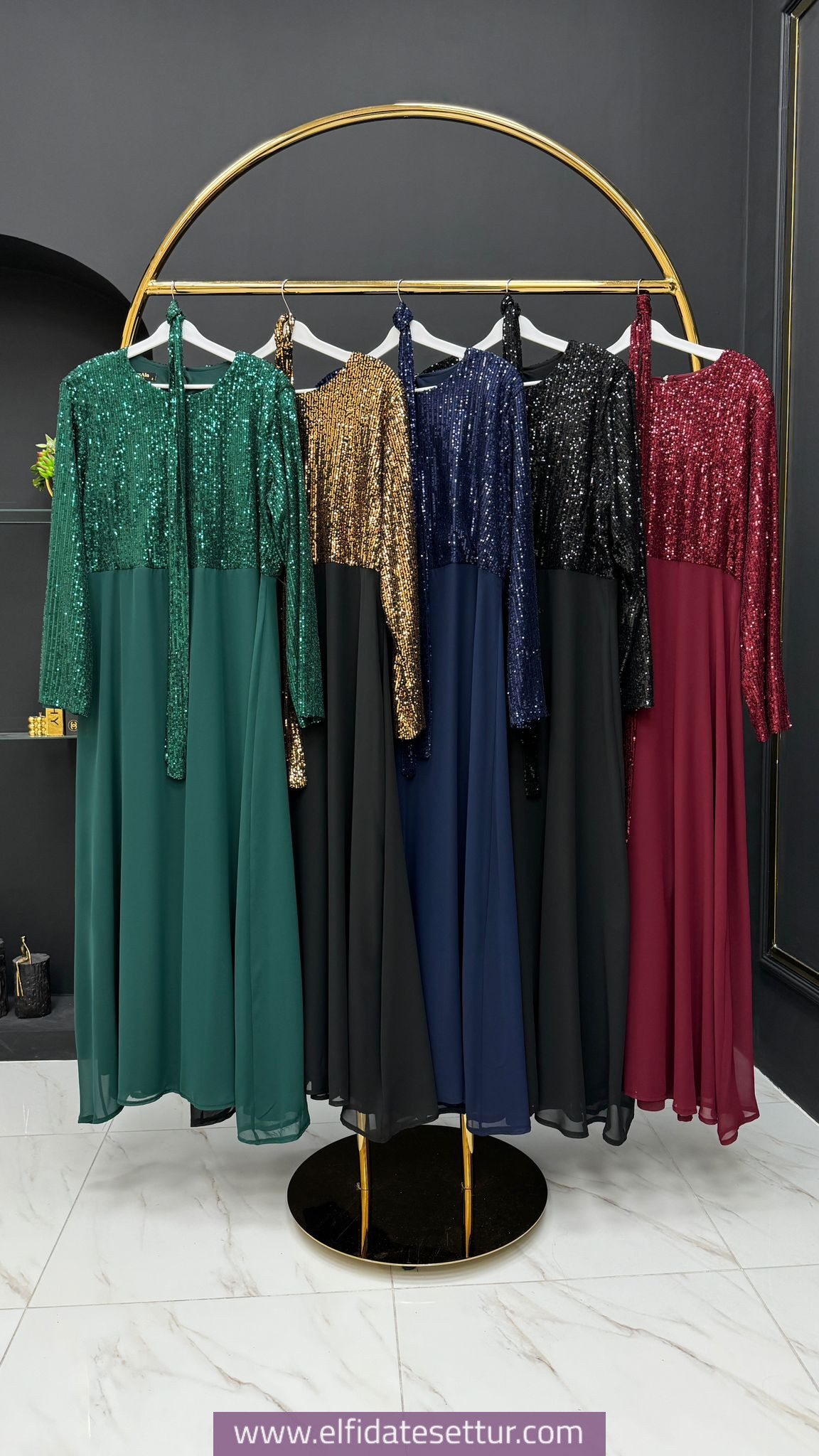 Payetli kumaş ve şifon kumaştan üretilmiştir