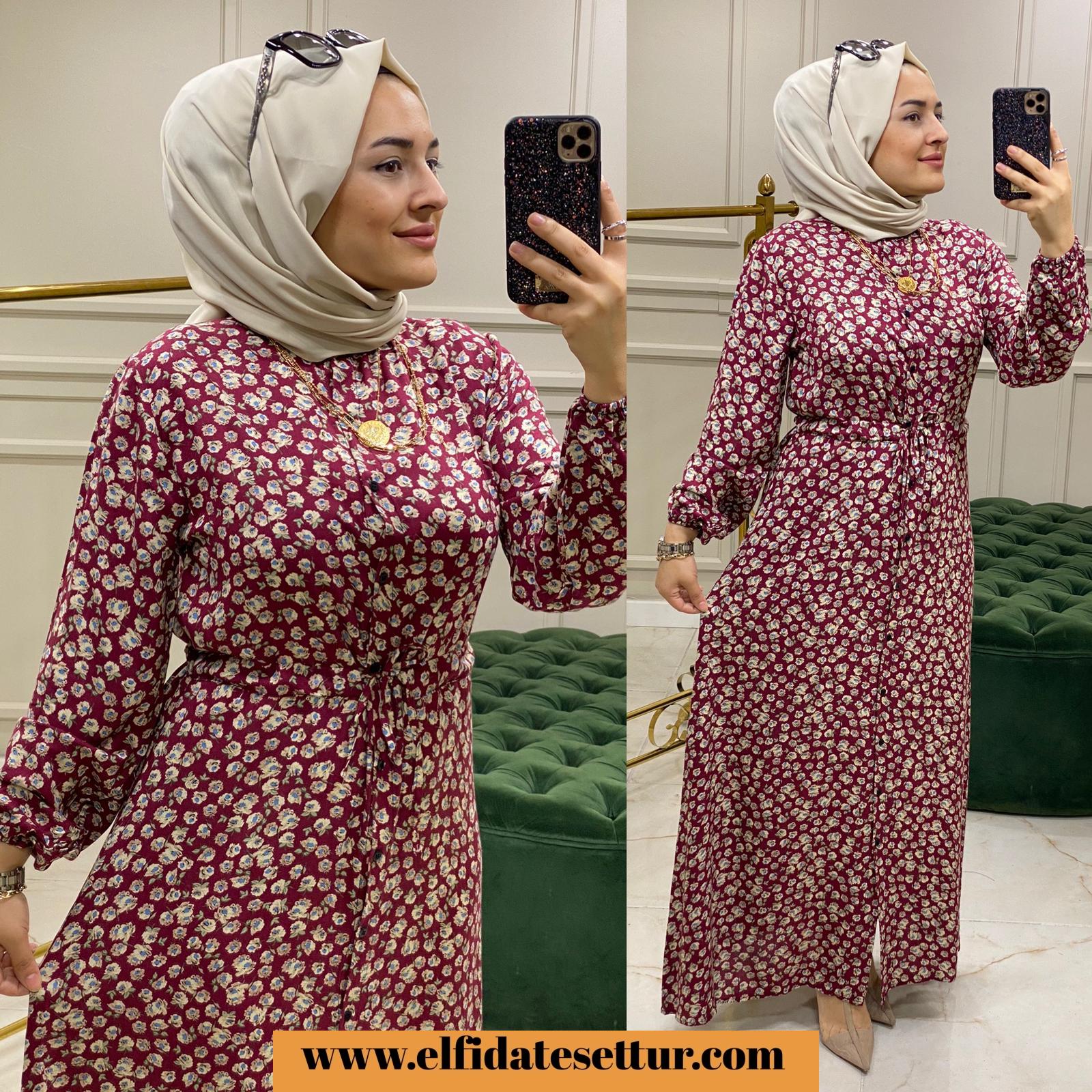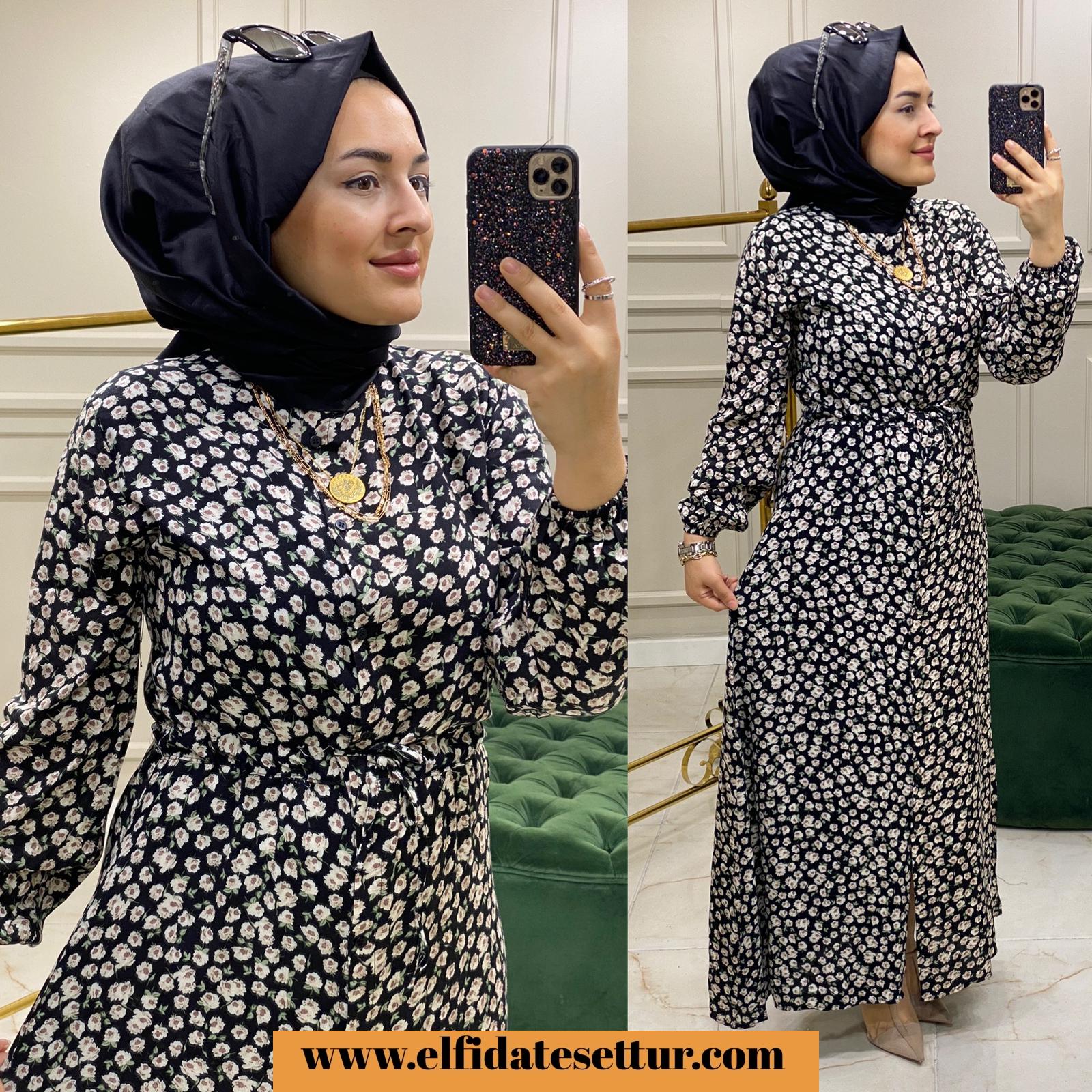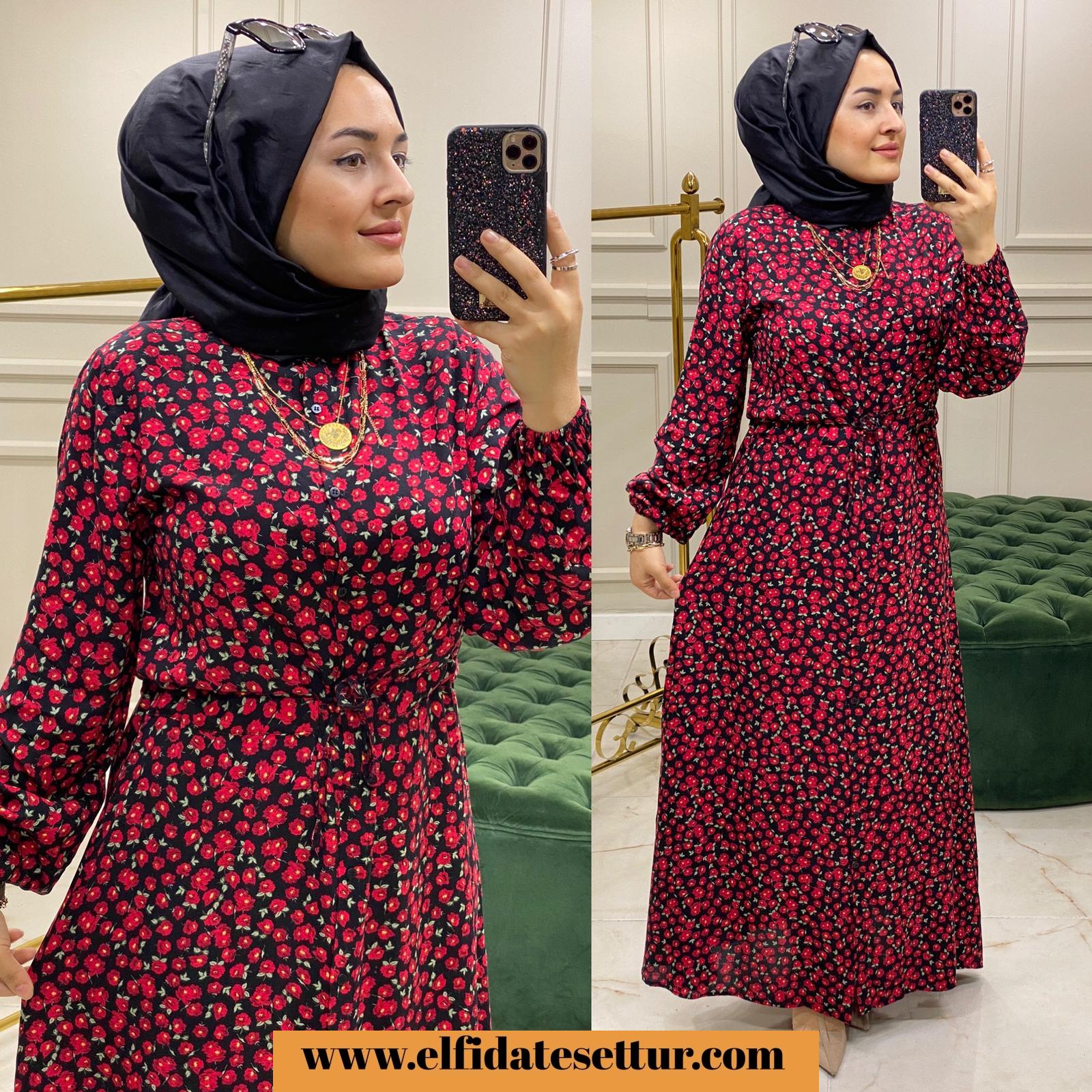 Gül desenli viskon elbise