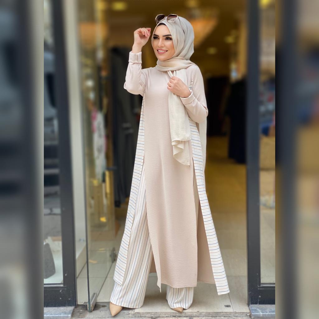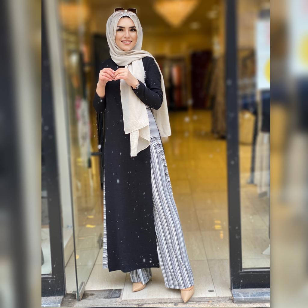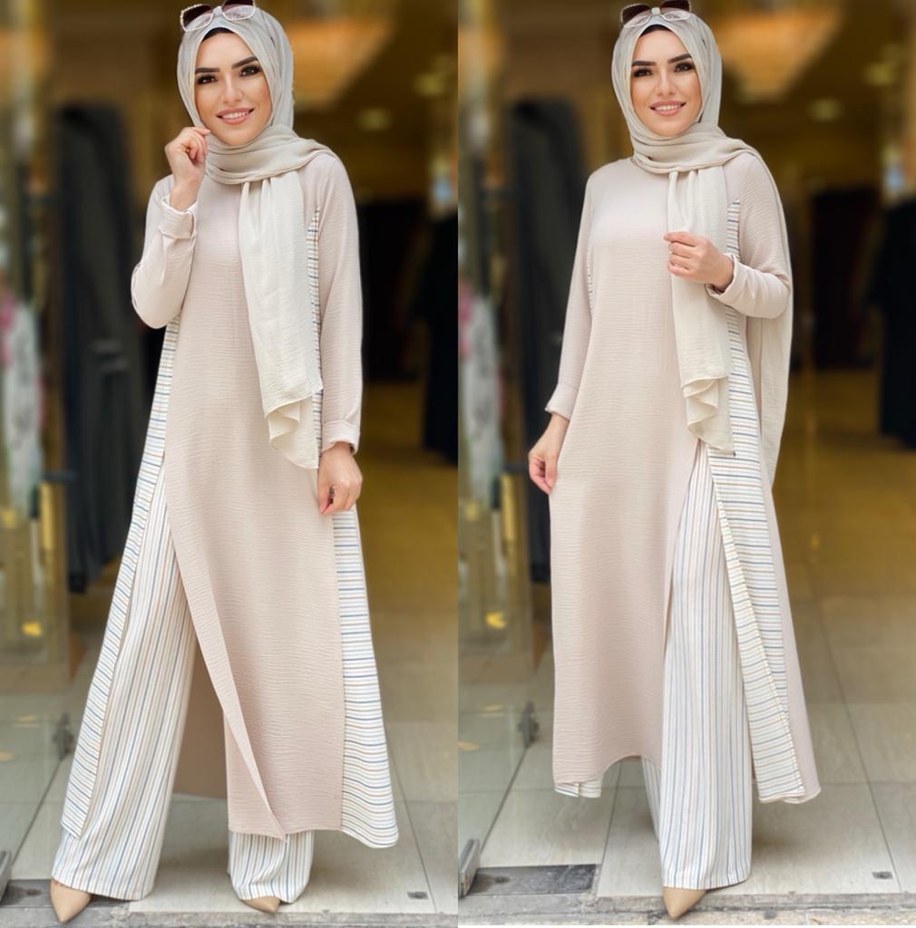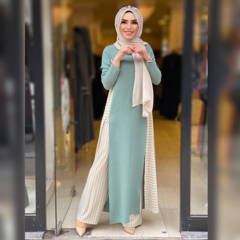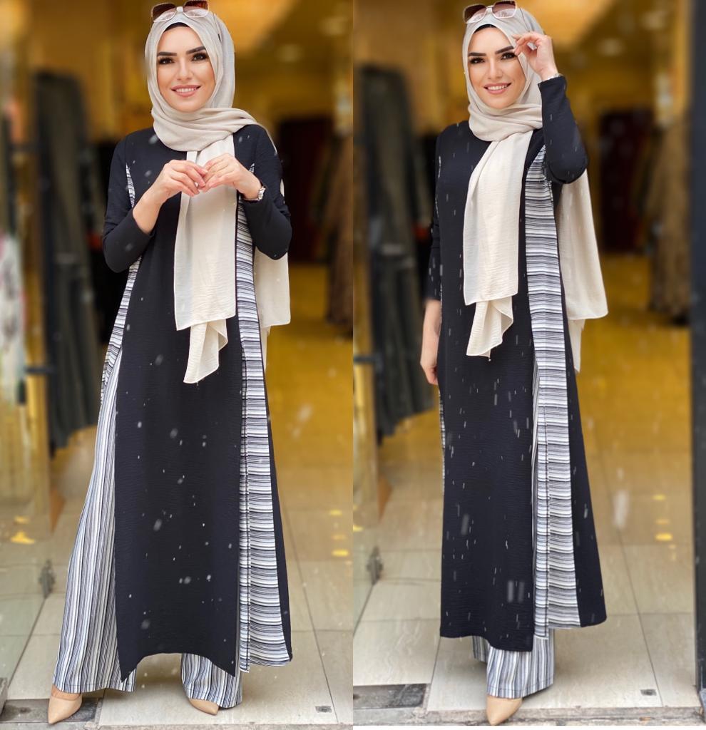 🌸KOD 8780 (F) ÇİZGİ DETAYLI TAKIM