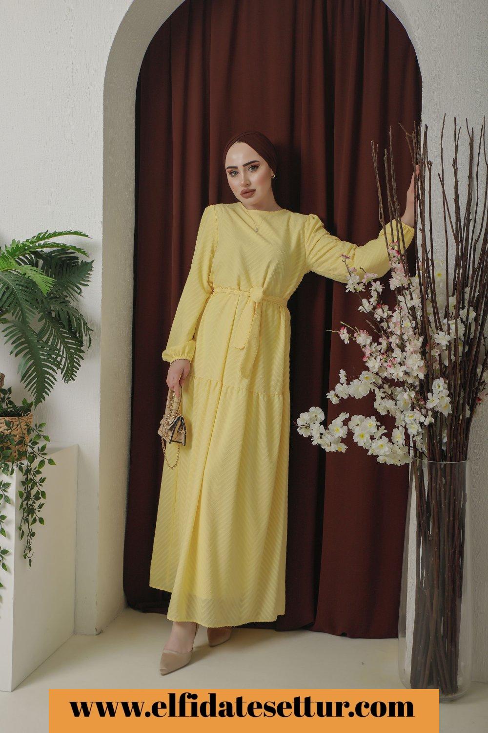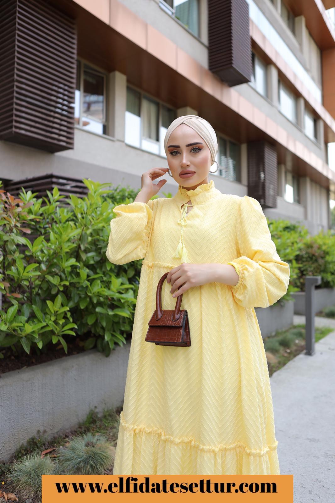 Yeni sezon ELBİSEMİZ tam boy astarlıdır belinden seyyar kuşaklı ense kısmı fermuarlıdır giyim kolaylığı İçin kol ağızları lastikli vazgeçilmez