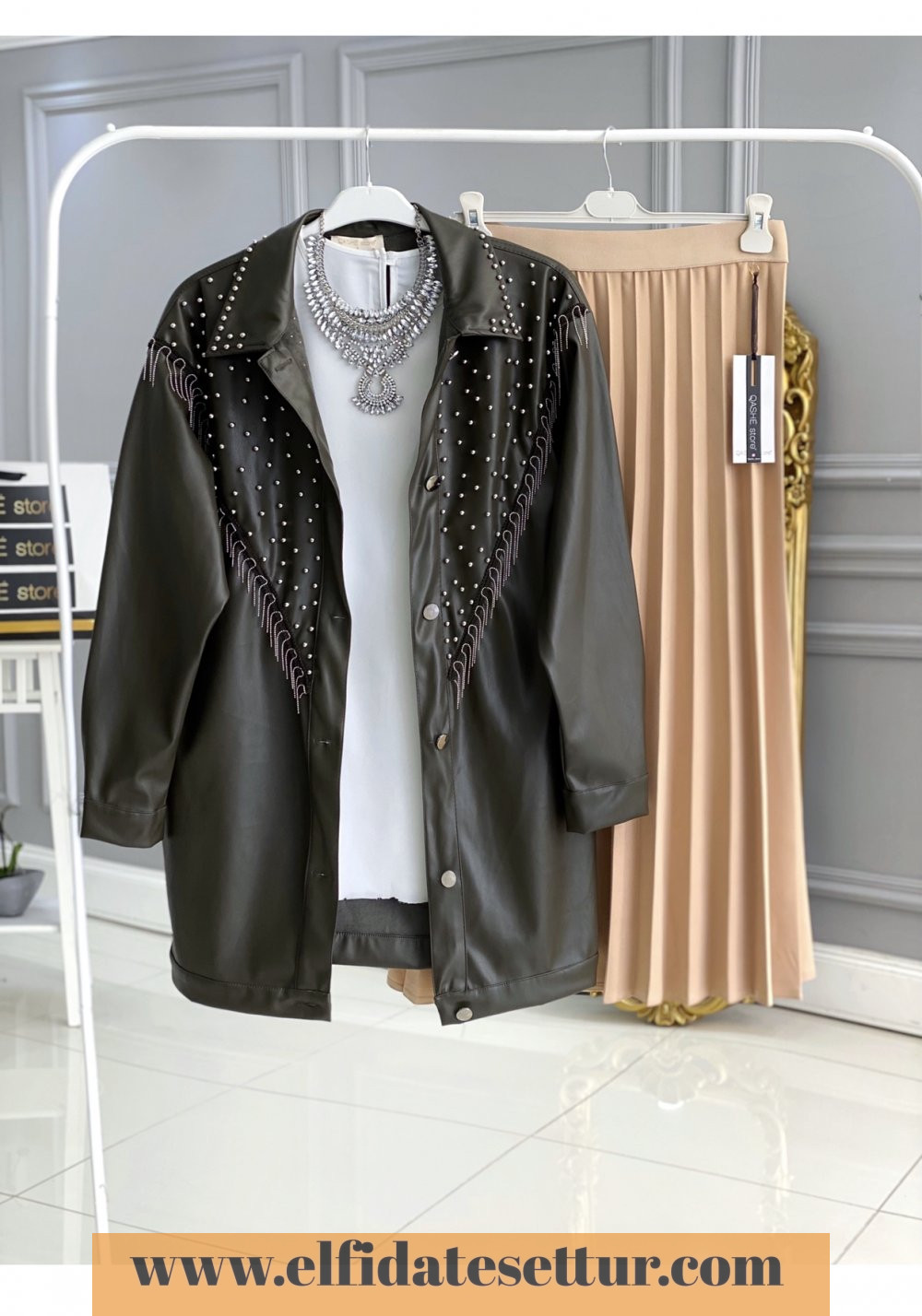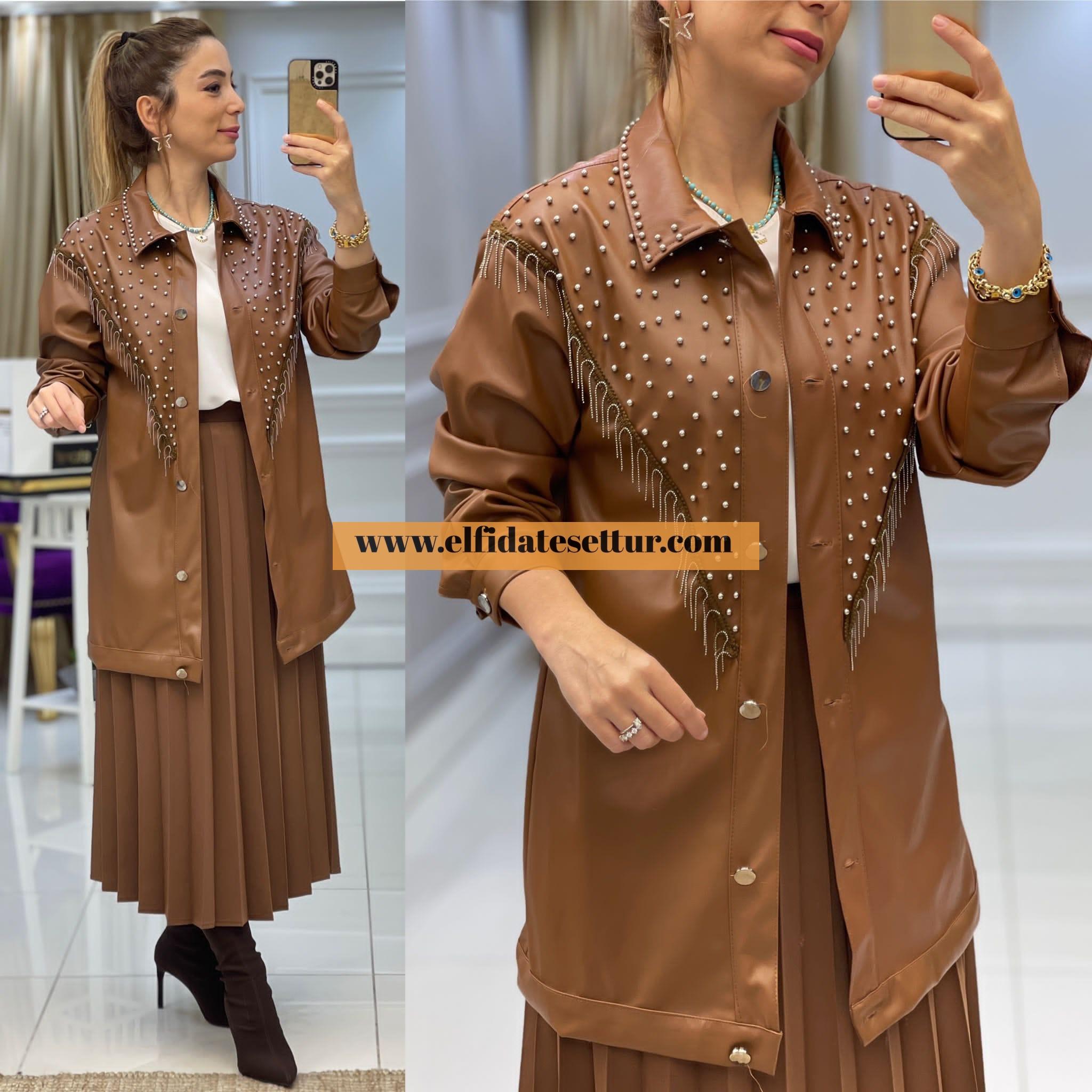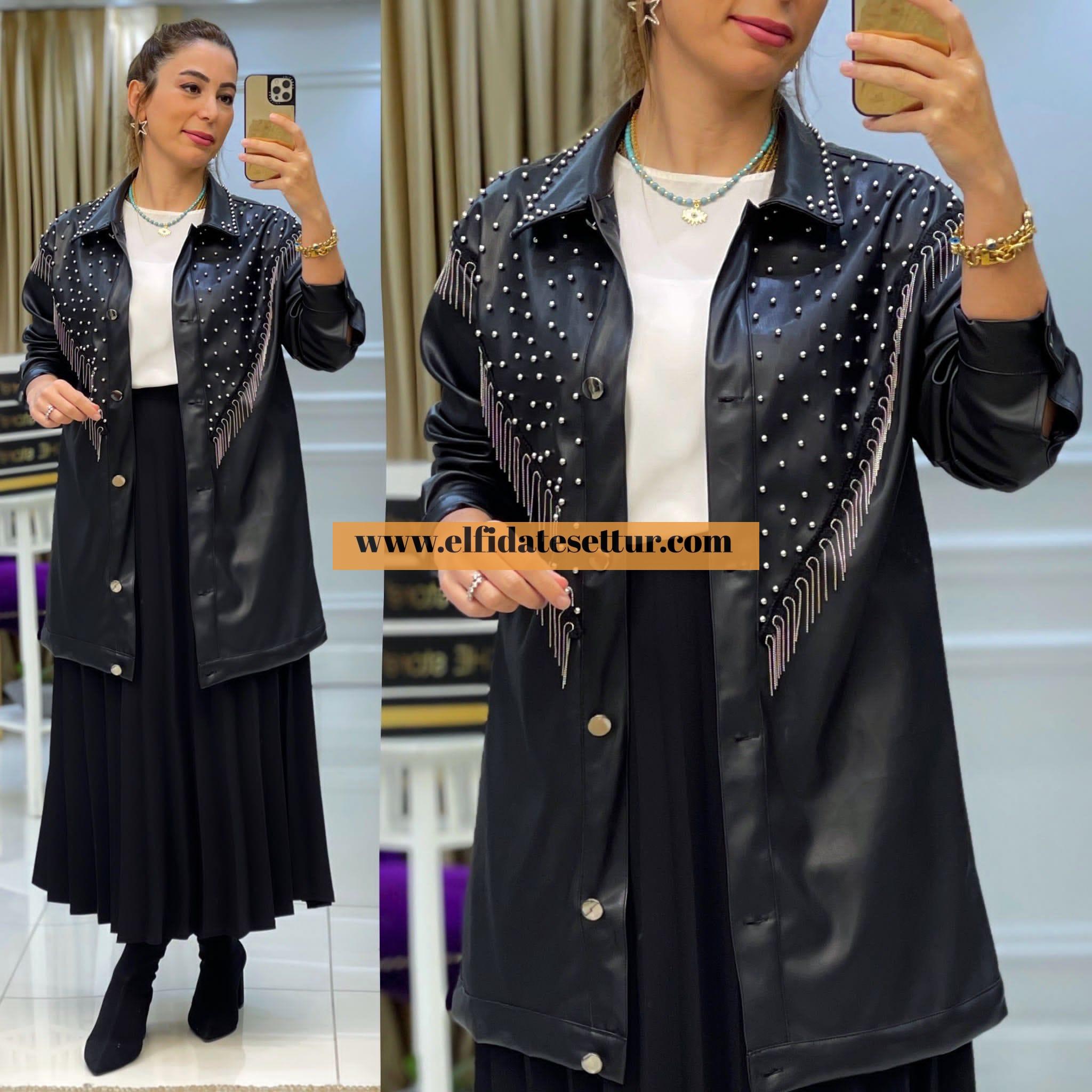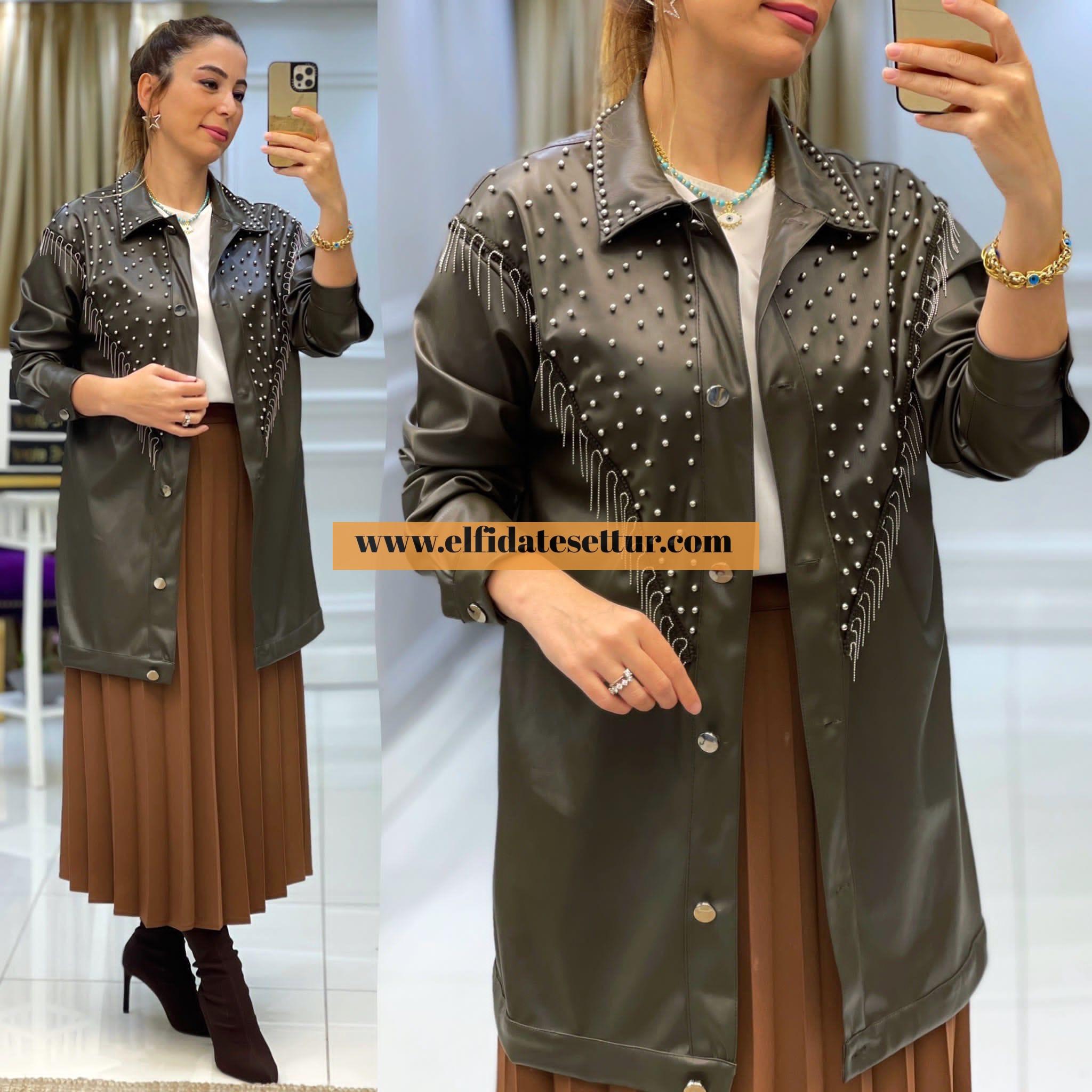 1. Sınıf Deri Kumaştır. 2 Beden Ölçüsü: Ceket boy: 85 cm Göğüs: 106 cm Ceket yaka ve göğüs kısmı taş detaylıdır. Ceket boydan boya düğme detaylıdır. 2- 38/40 Beden aralığındadır. 3- 42/44 Beden aralığındadır. 4- 44/46 Beden aralığındadır. 5- 46/48 Beden aralığındadır.