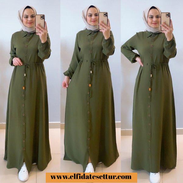 🌷Düğmeli Ayrobin Elbise