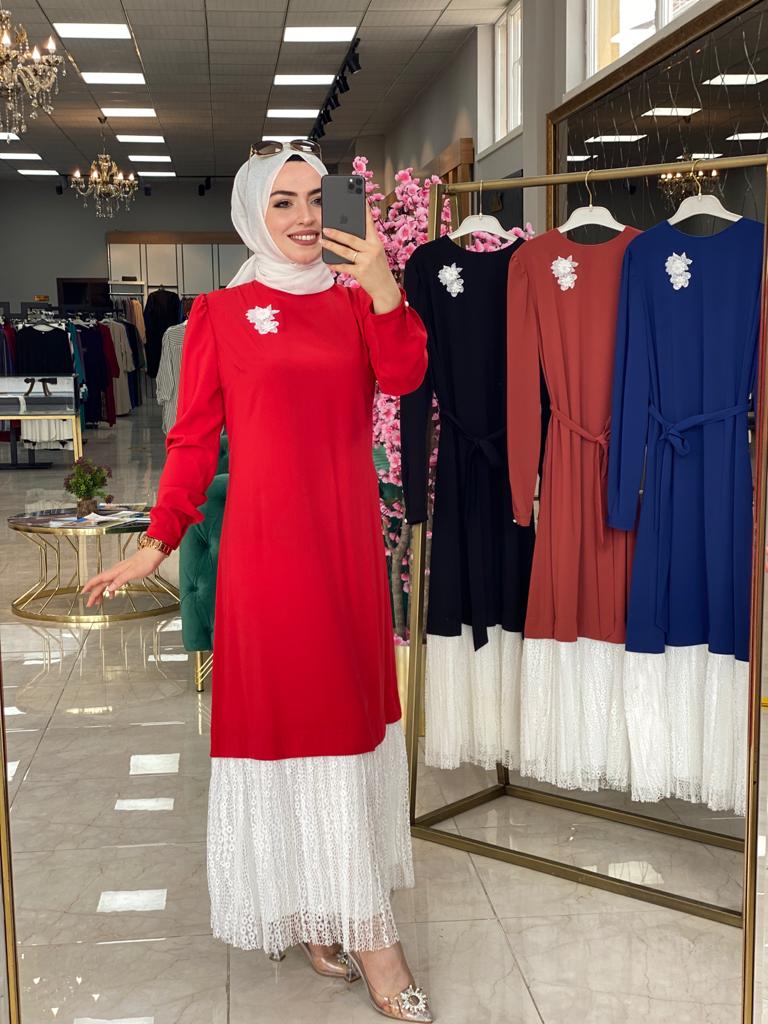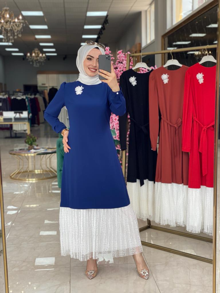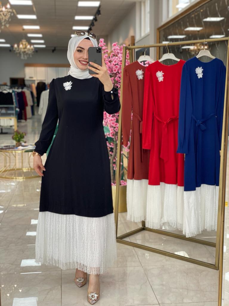 💙Özel günleriniz de zarifliği ile şıklığınıza eşlik edecek , krep ve dantelin harika uyumu ile AnnA Elbisemiz sizlerle 💙 (Z)
