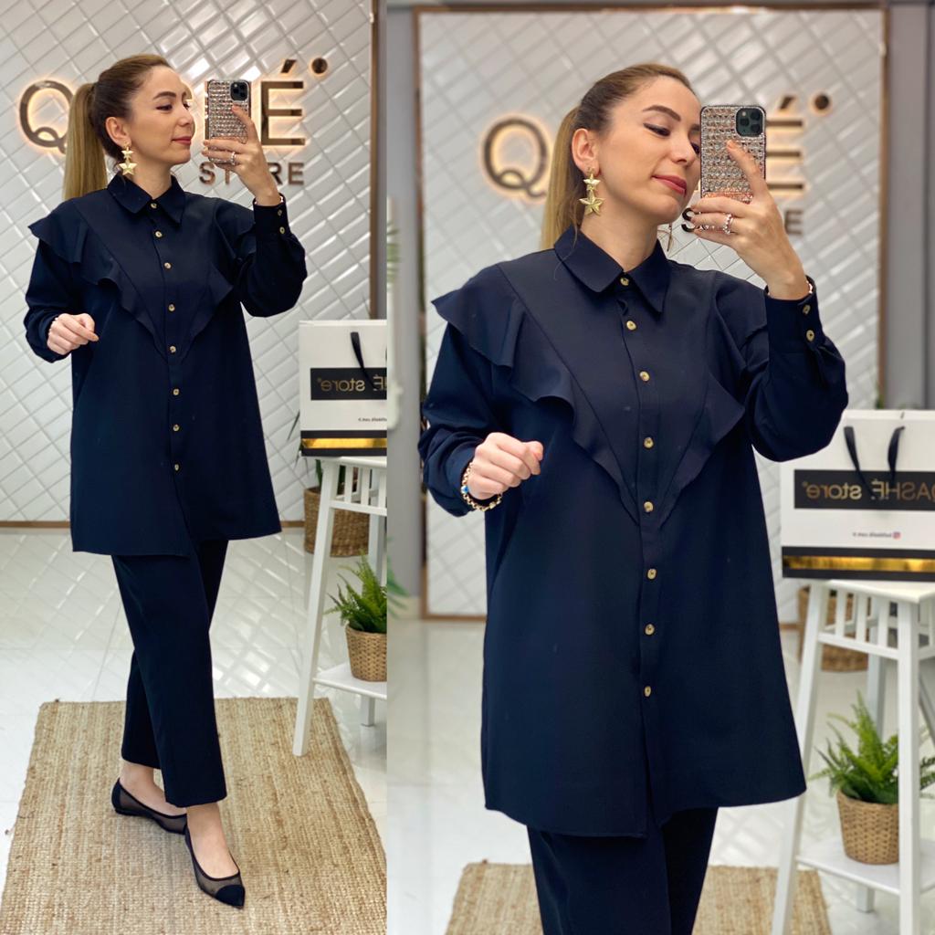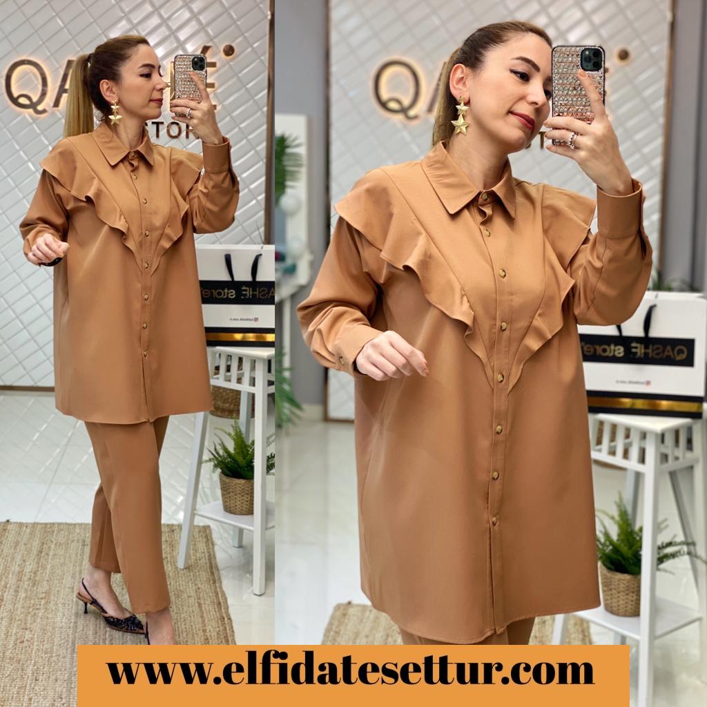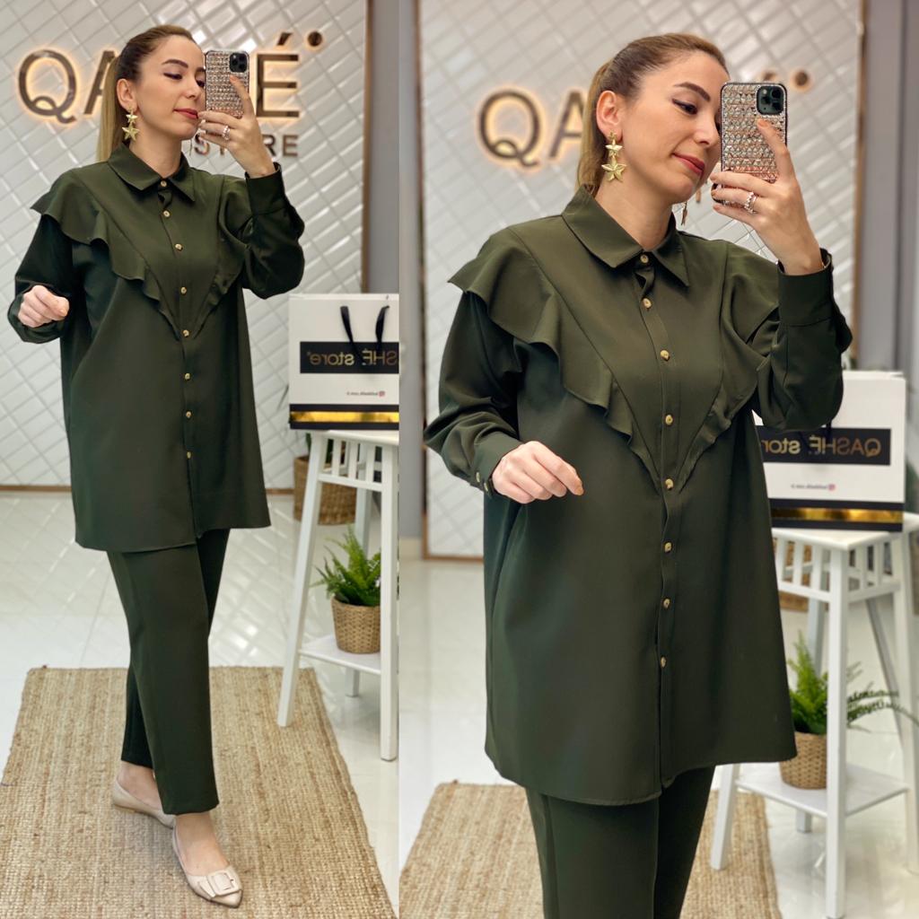 *Gömlek Yakalı Fırfır Detay İkili Takım*