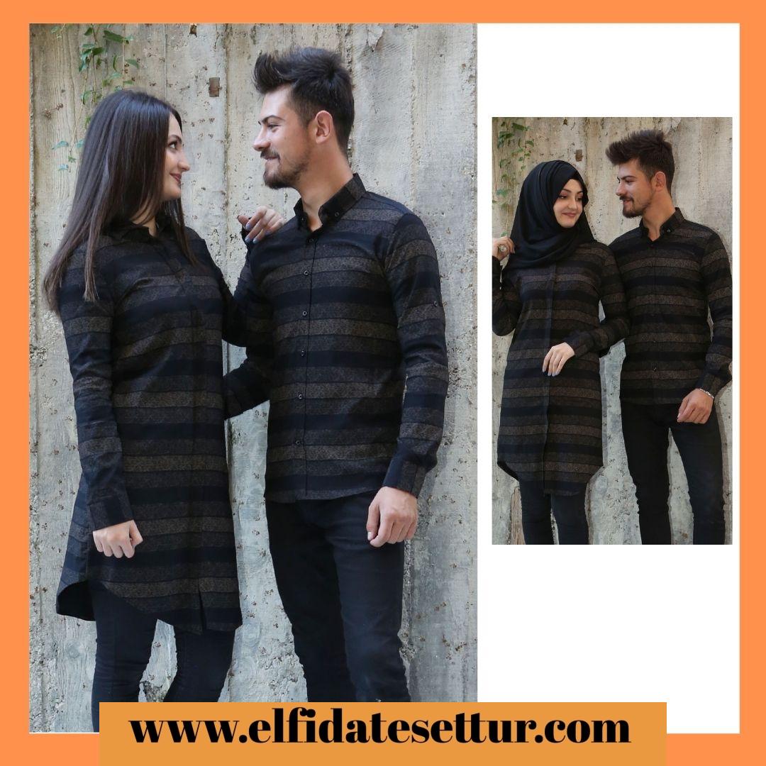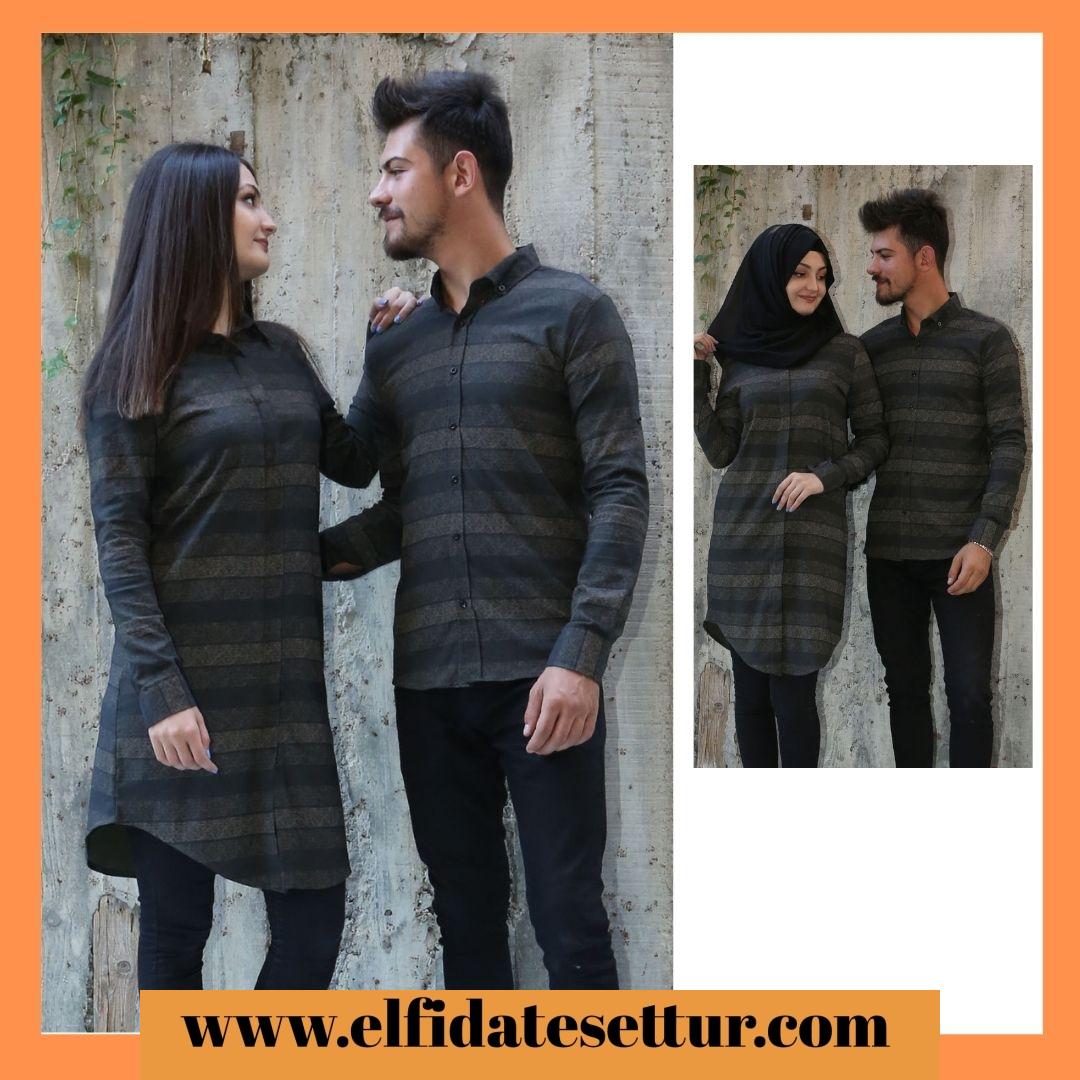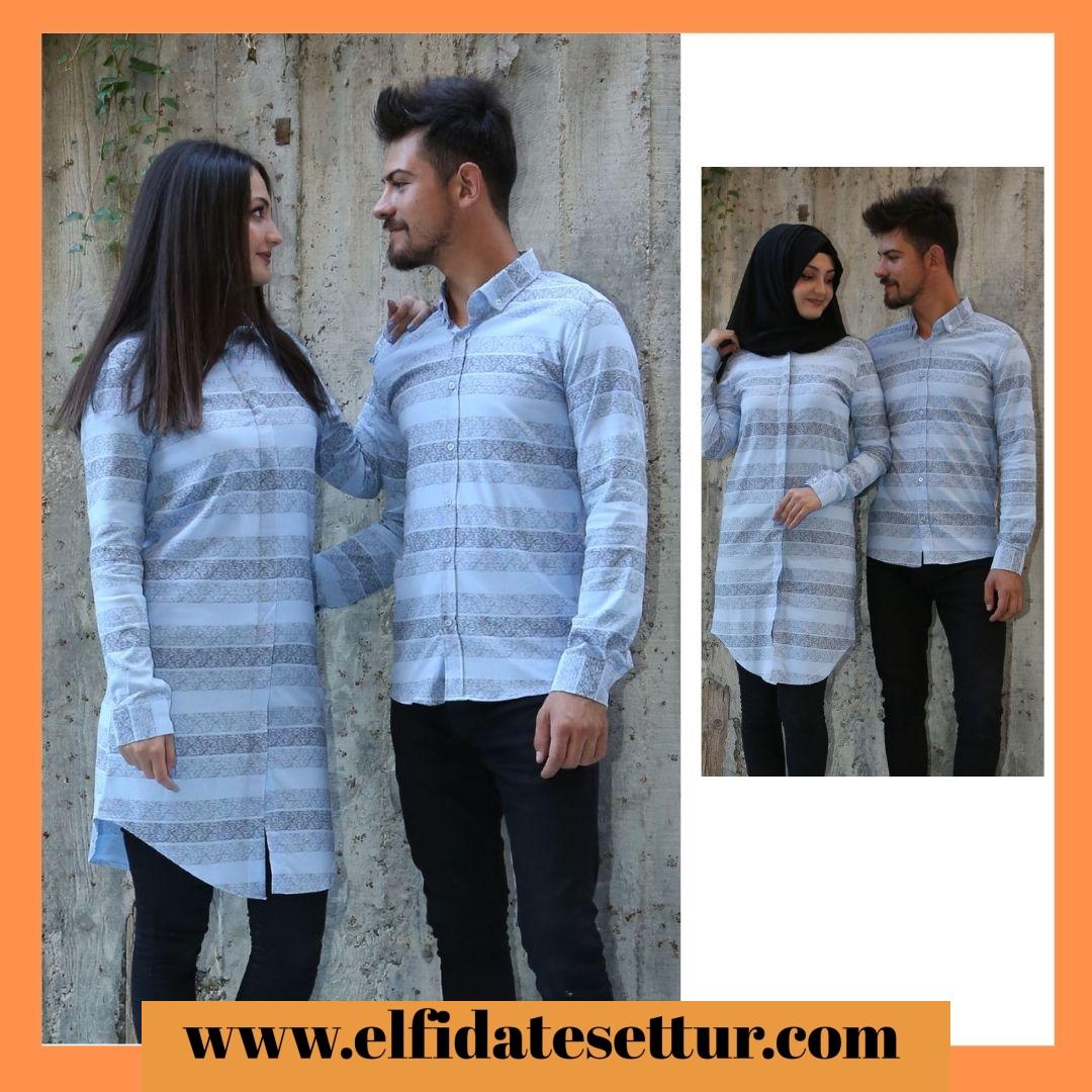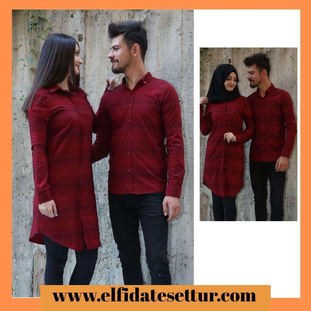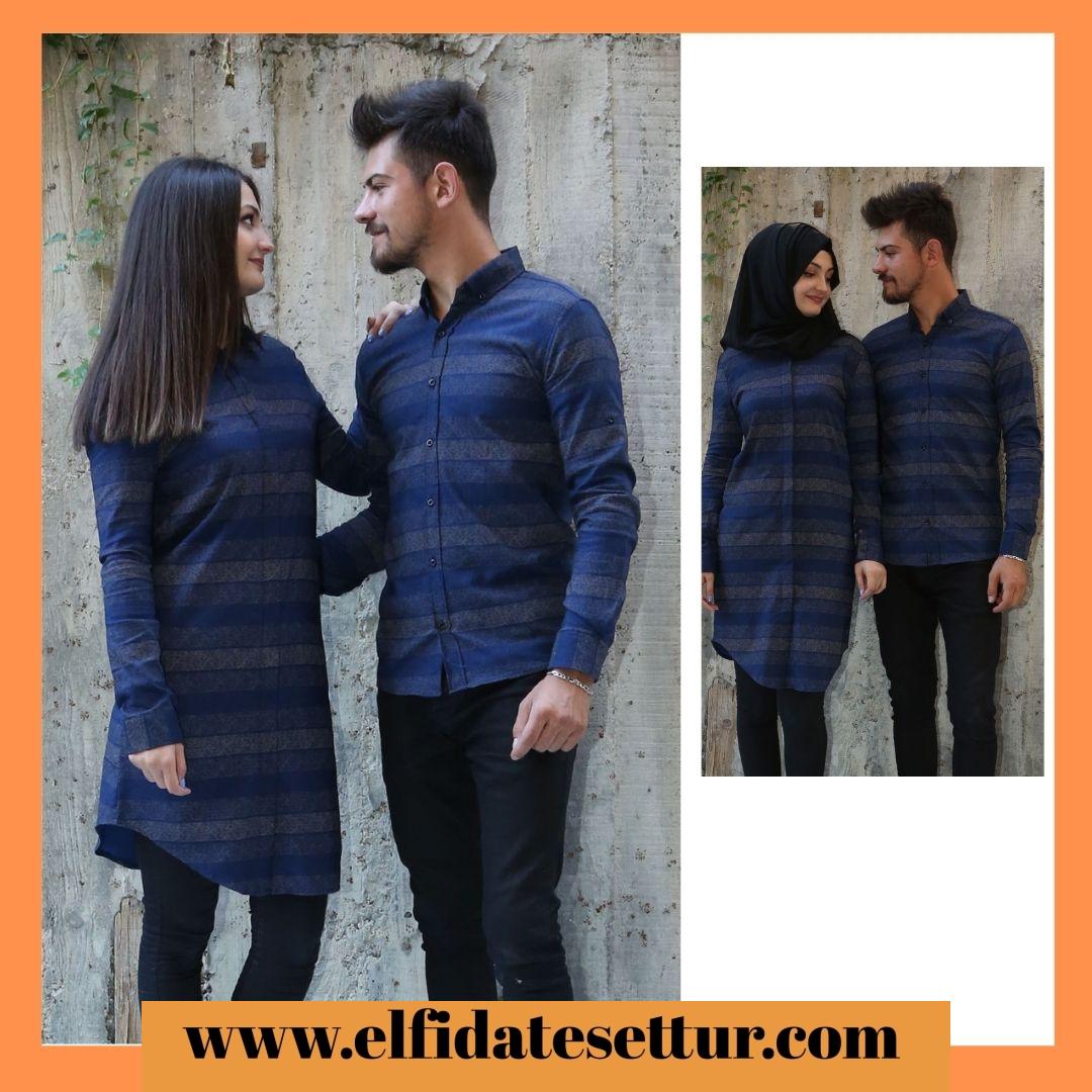 Armürlü Bengalin Desenli Likralı Tesettür Gömlek Sevgili Kombini