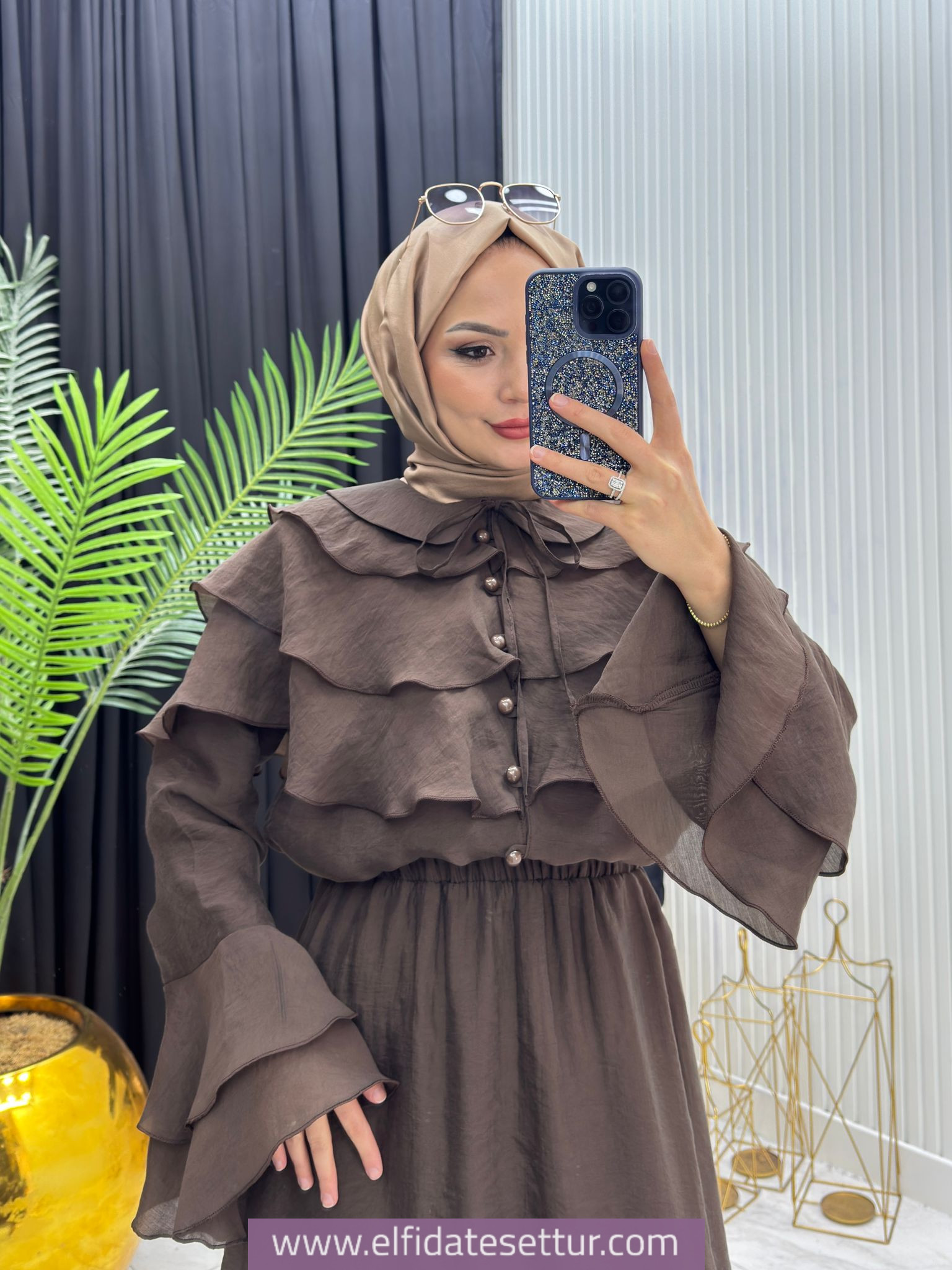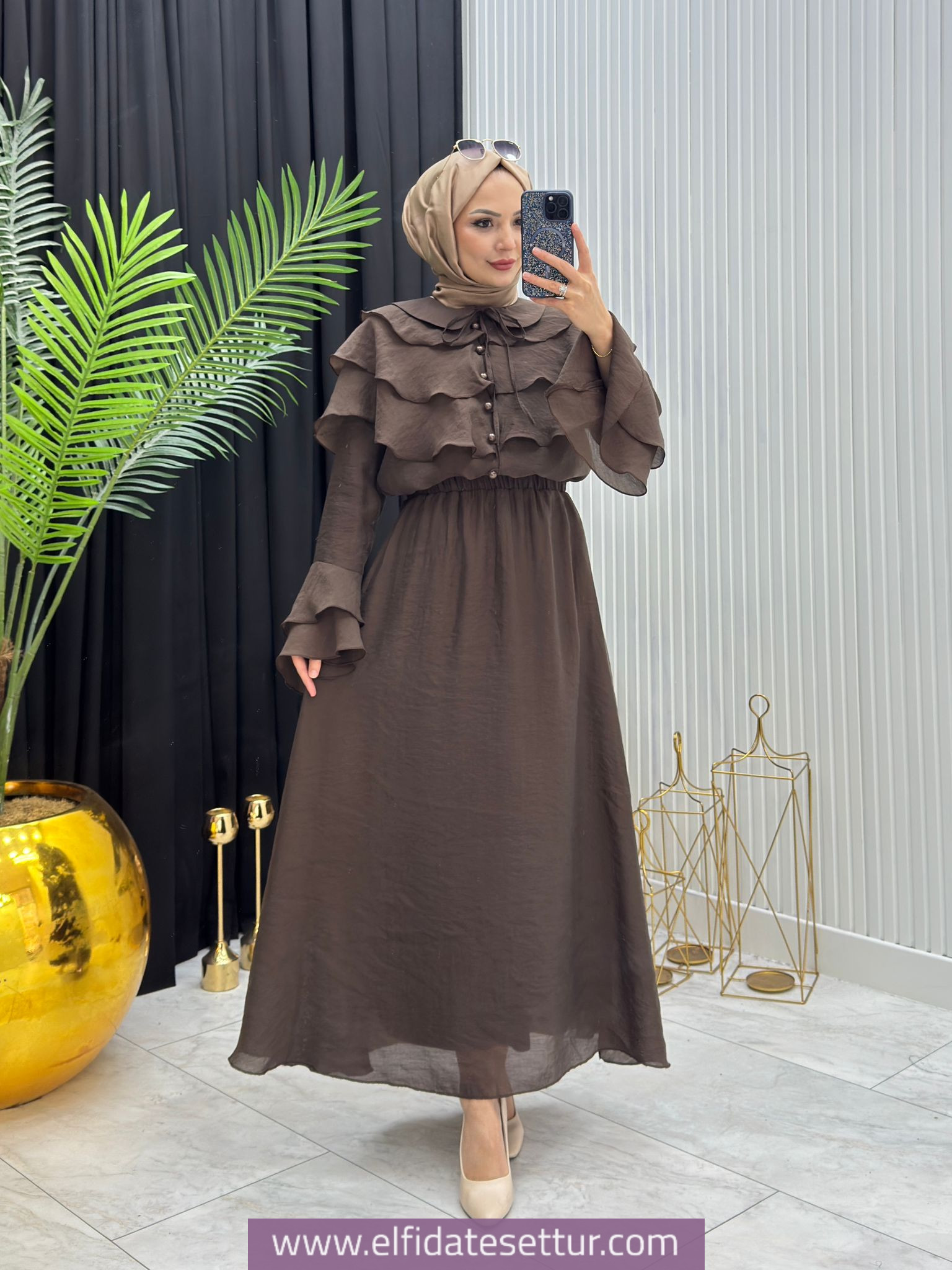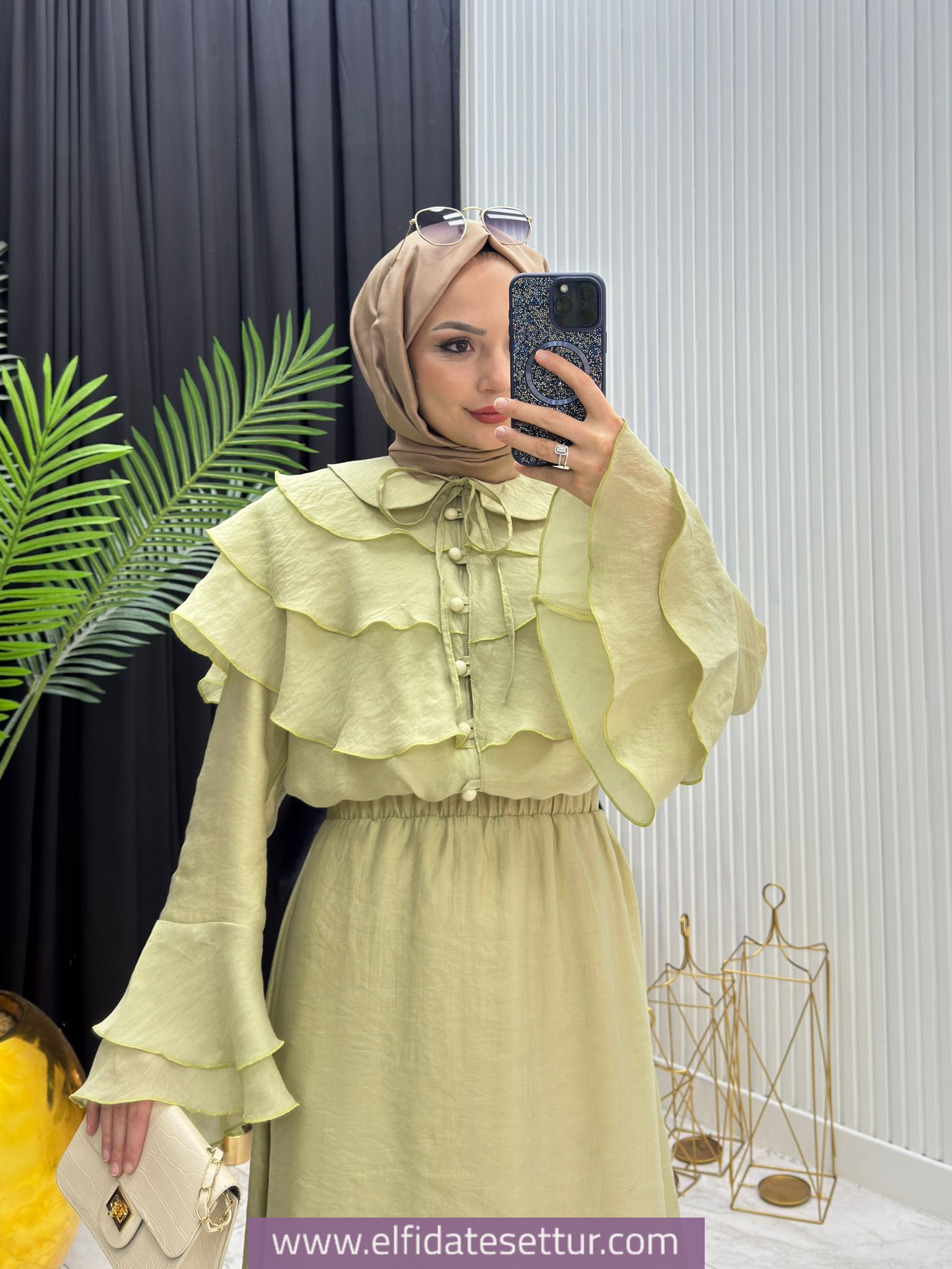☔️Etek 90/95 cm bel lastikli bluz önden düğmeli