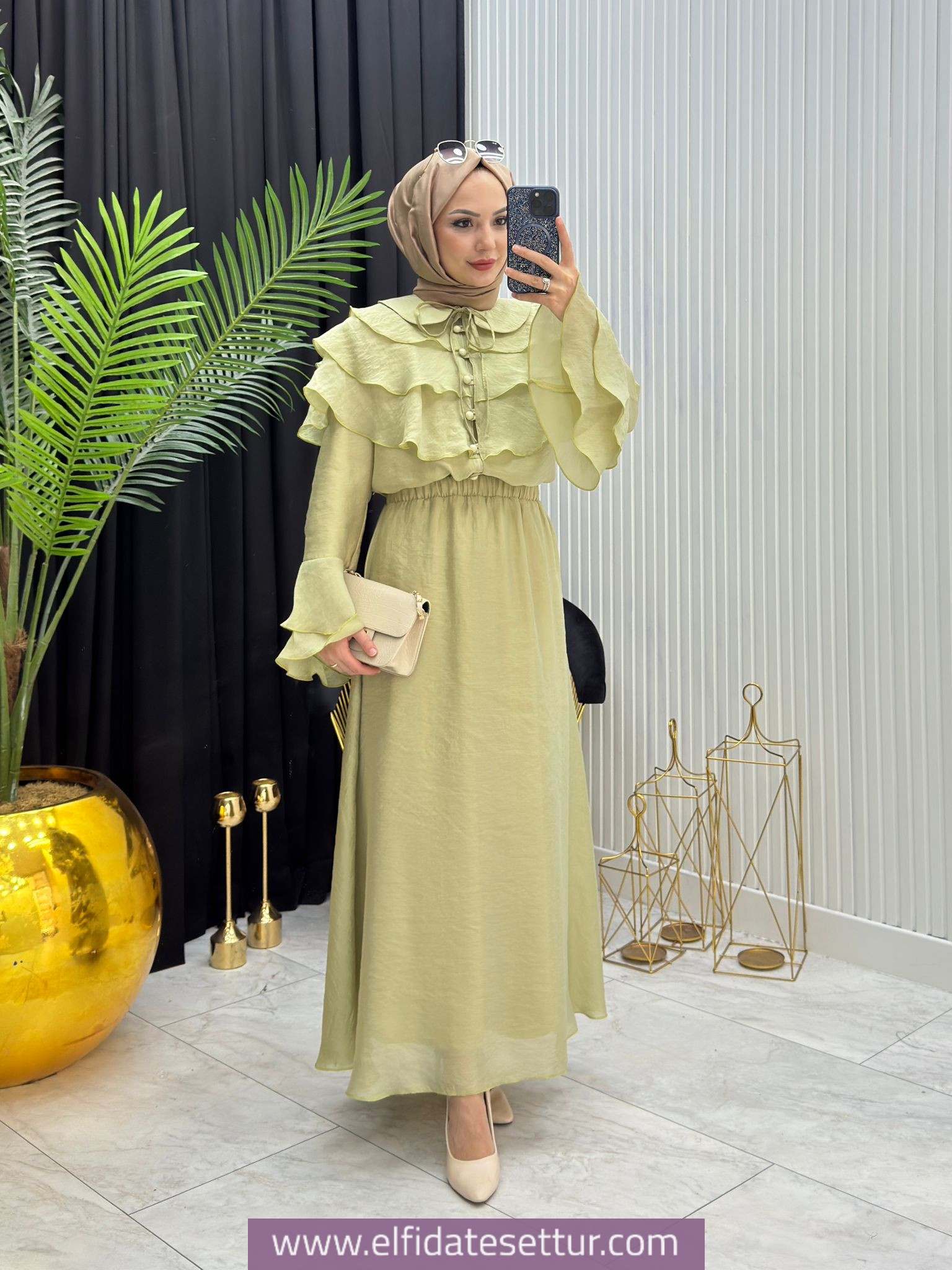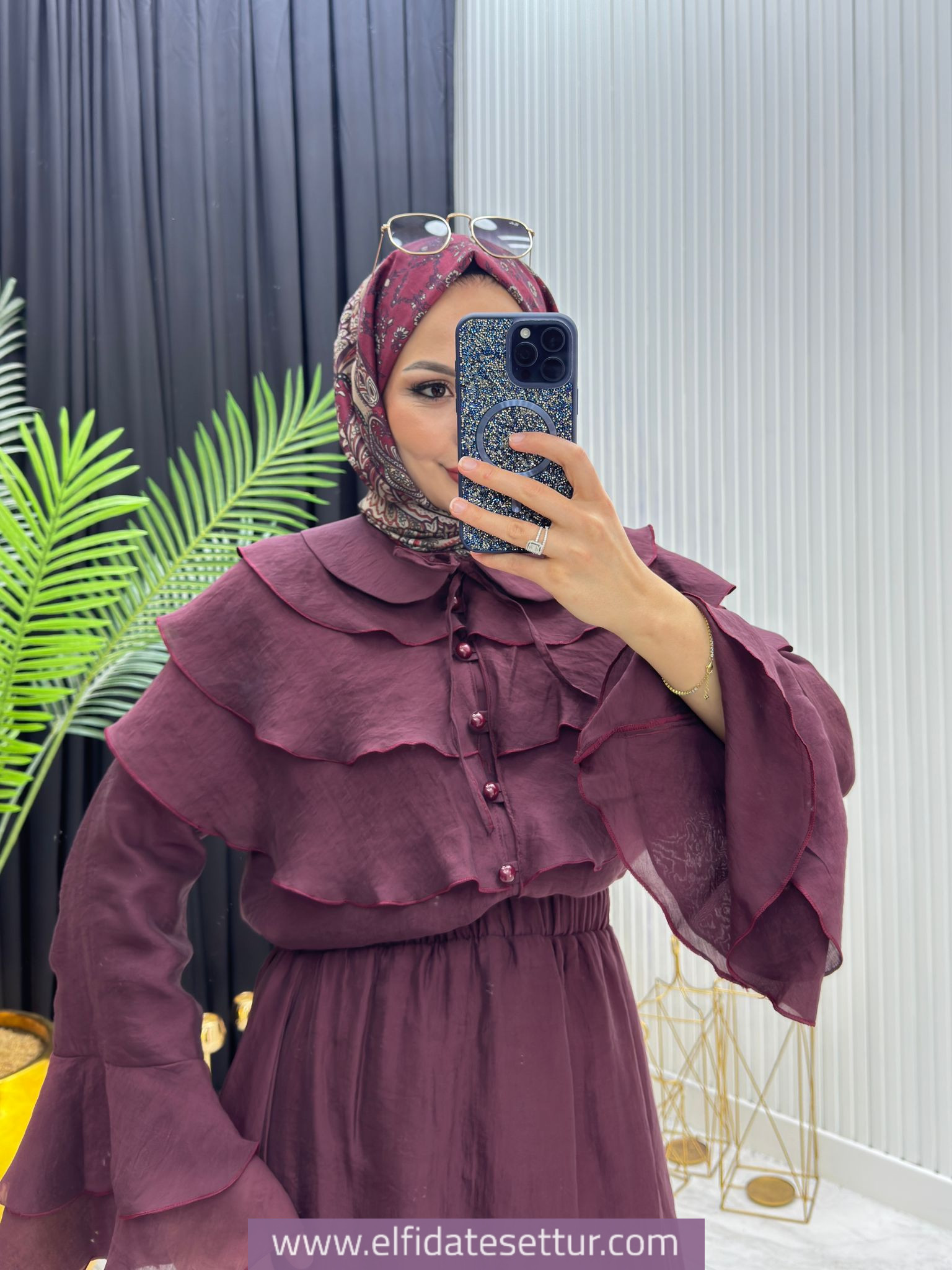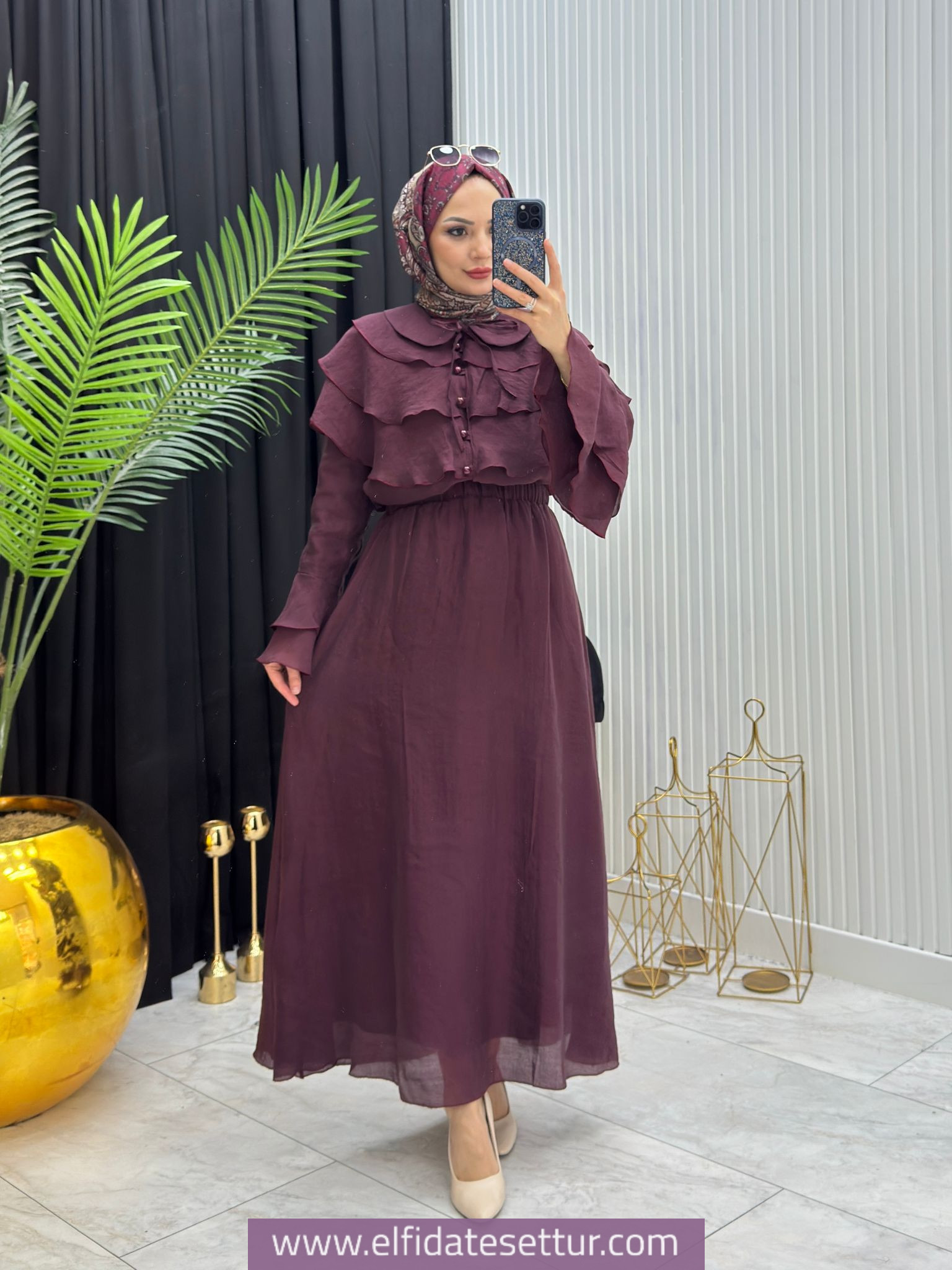 ☔️Etek 90/95 cm bel lastikli bluz önden düğmeli