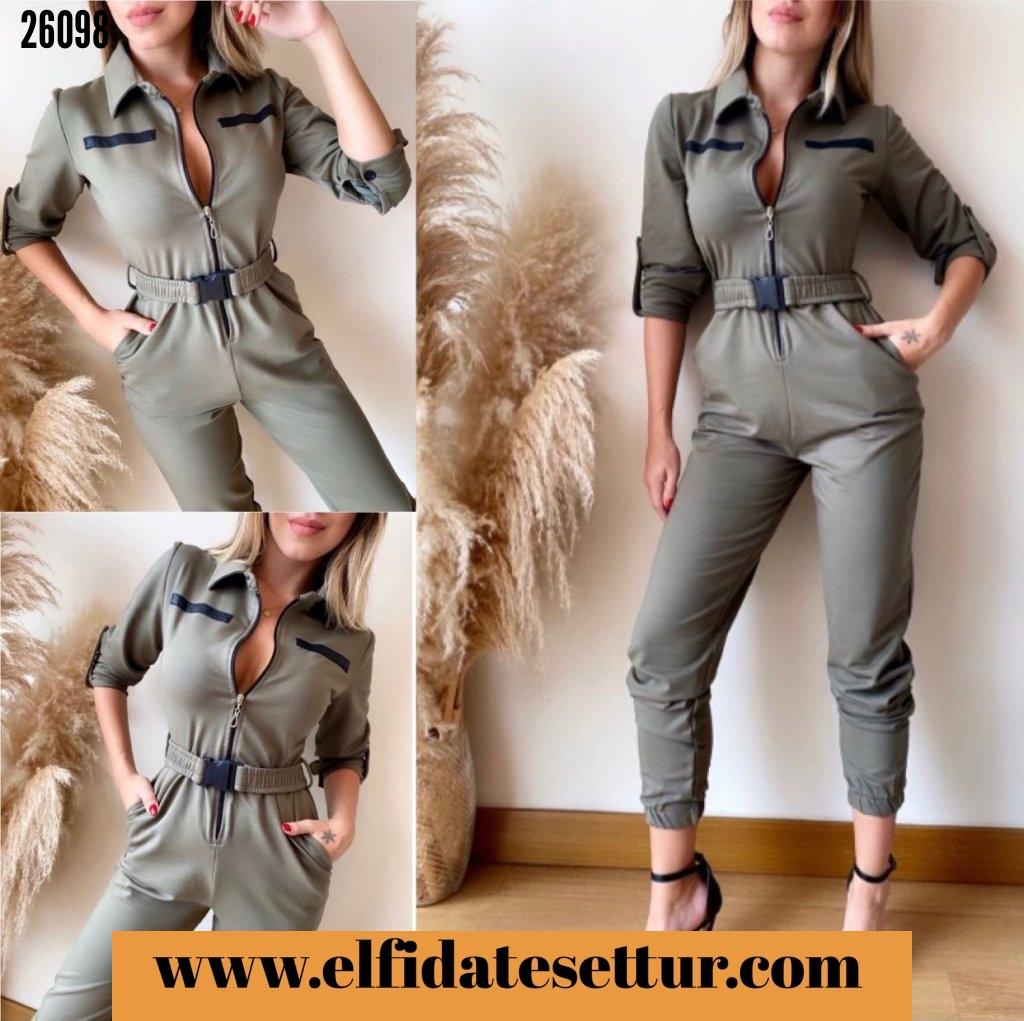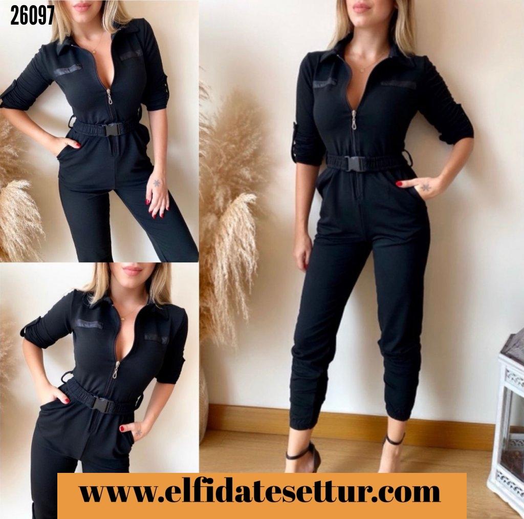 ❤İki iplik kumaş fermuarlı kemer detaylı efsane tulum.