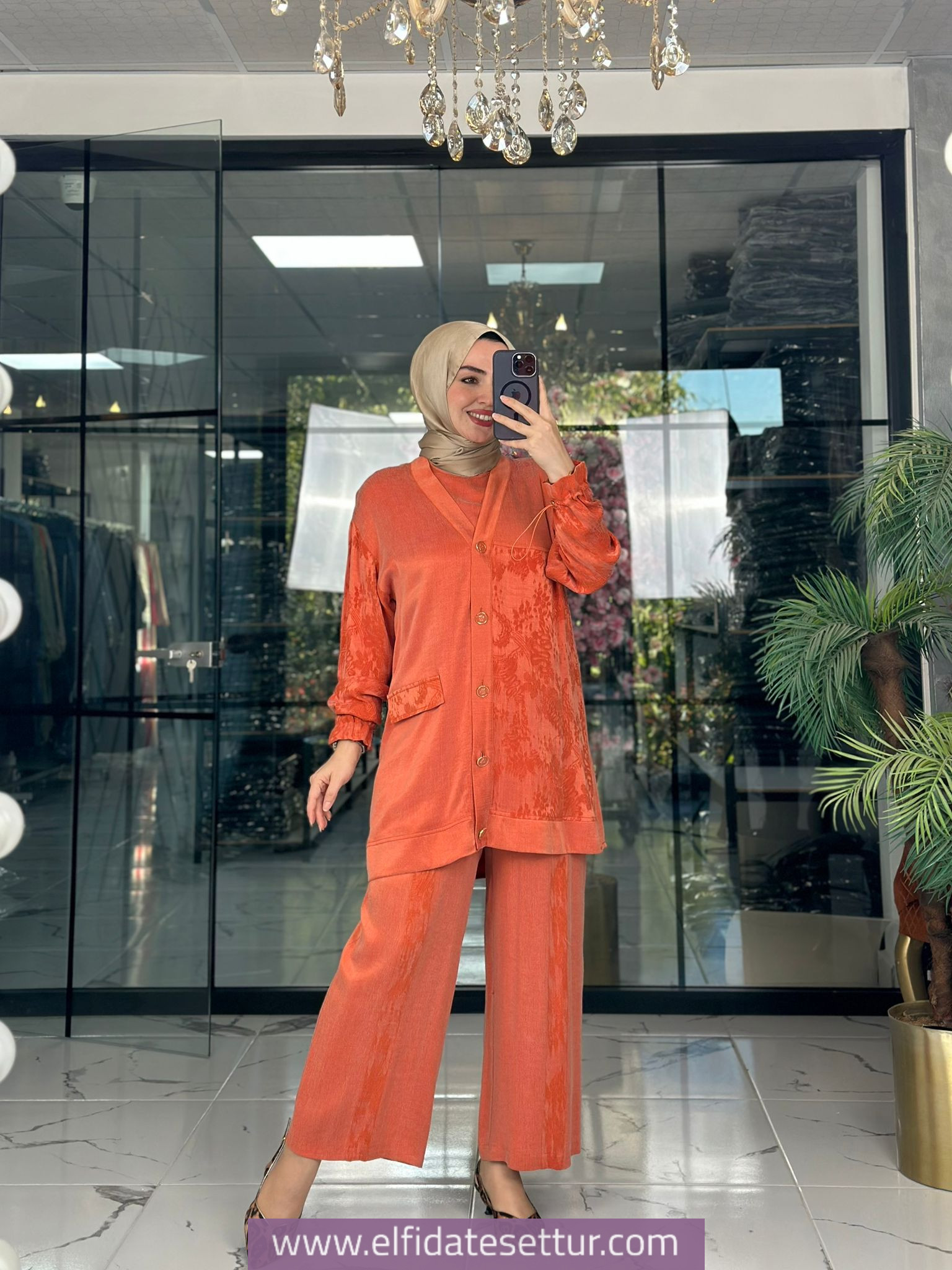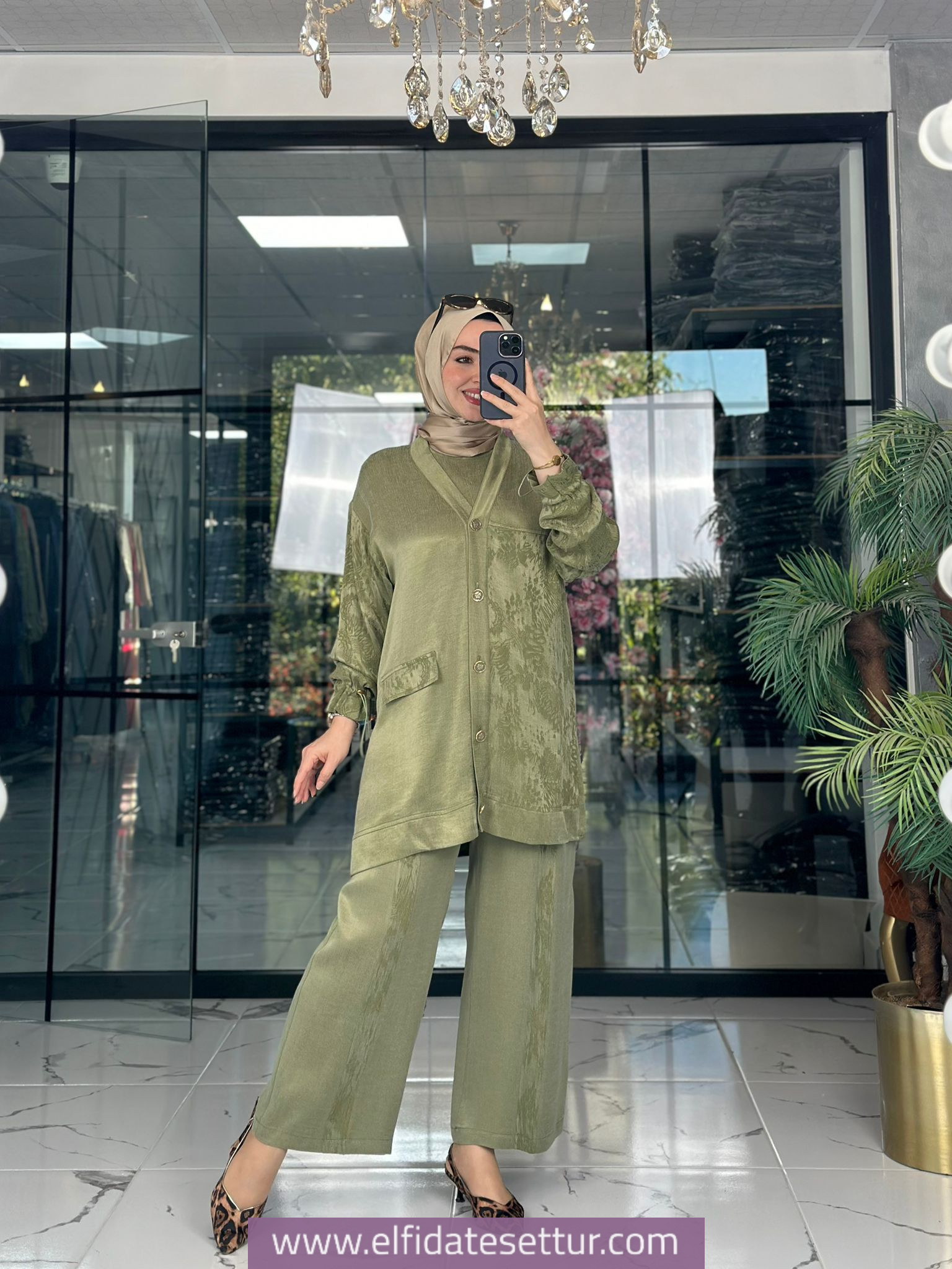 kumaşı ipek qupradır. İçliği sıfır kolludur. Pantolon beli lastiklidir. Cebi yoktur.