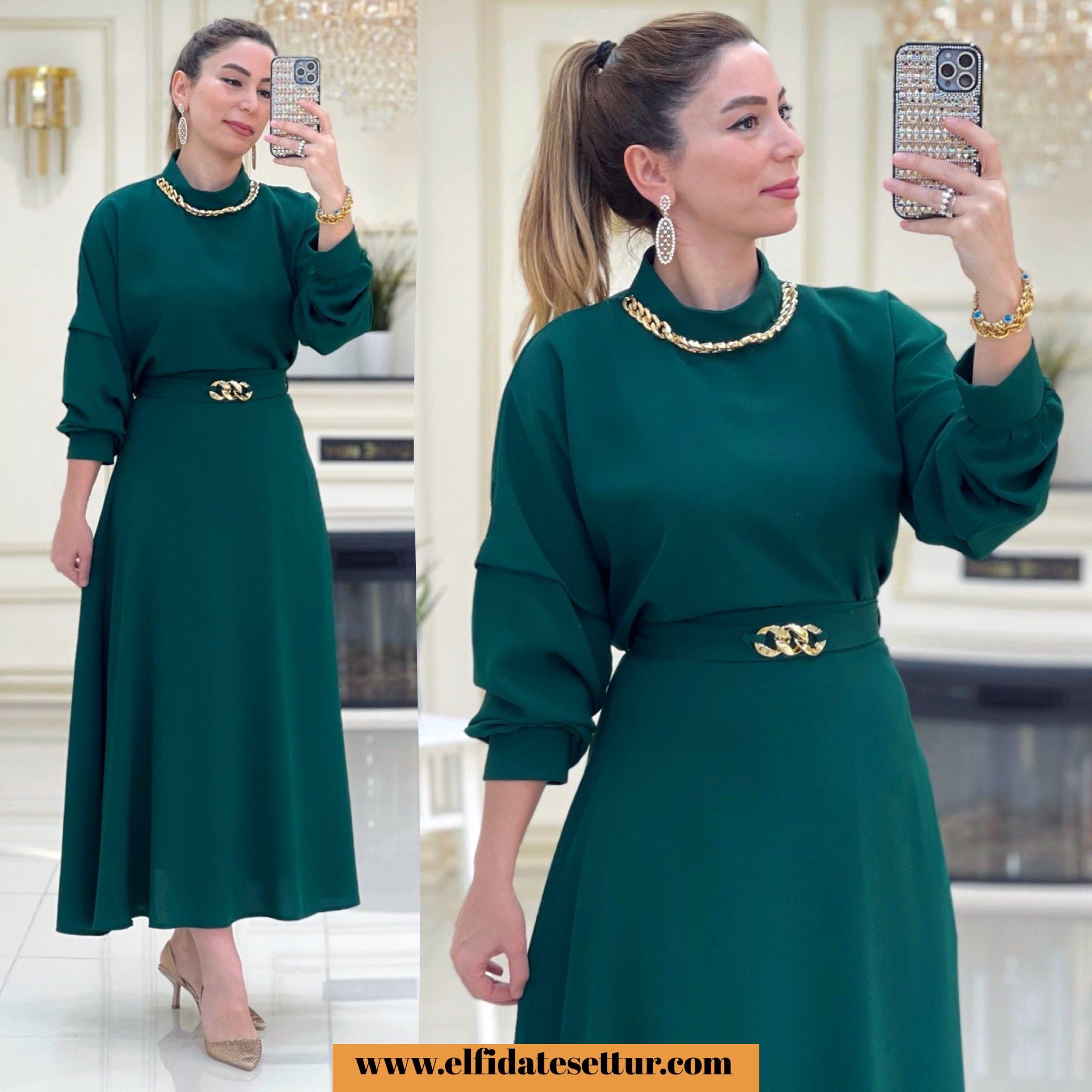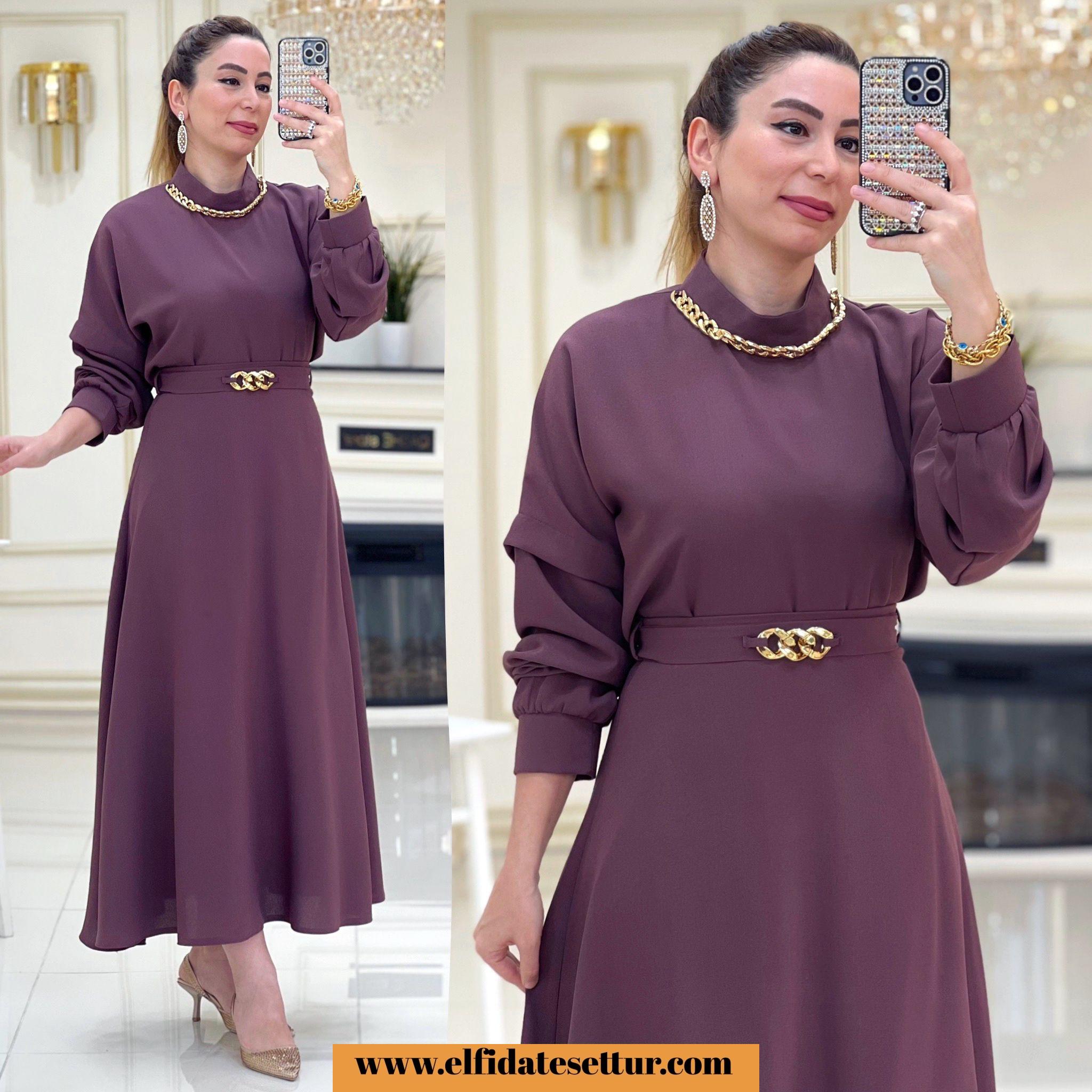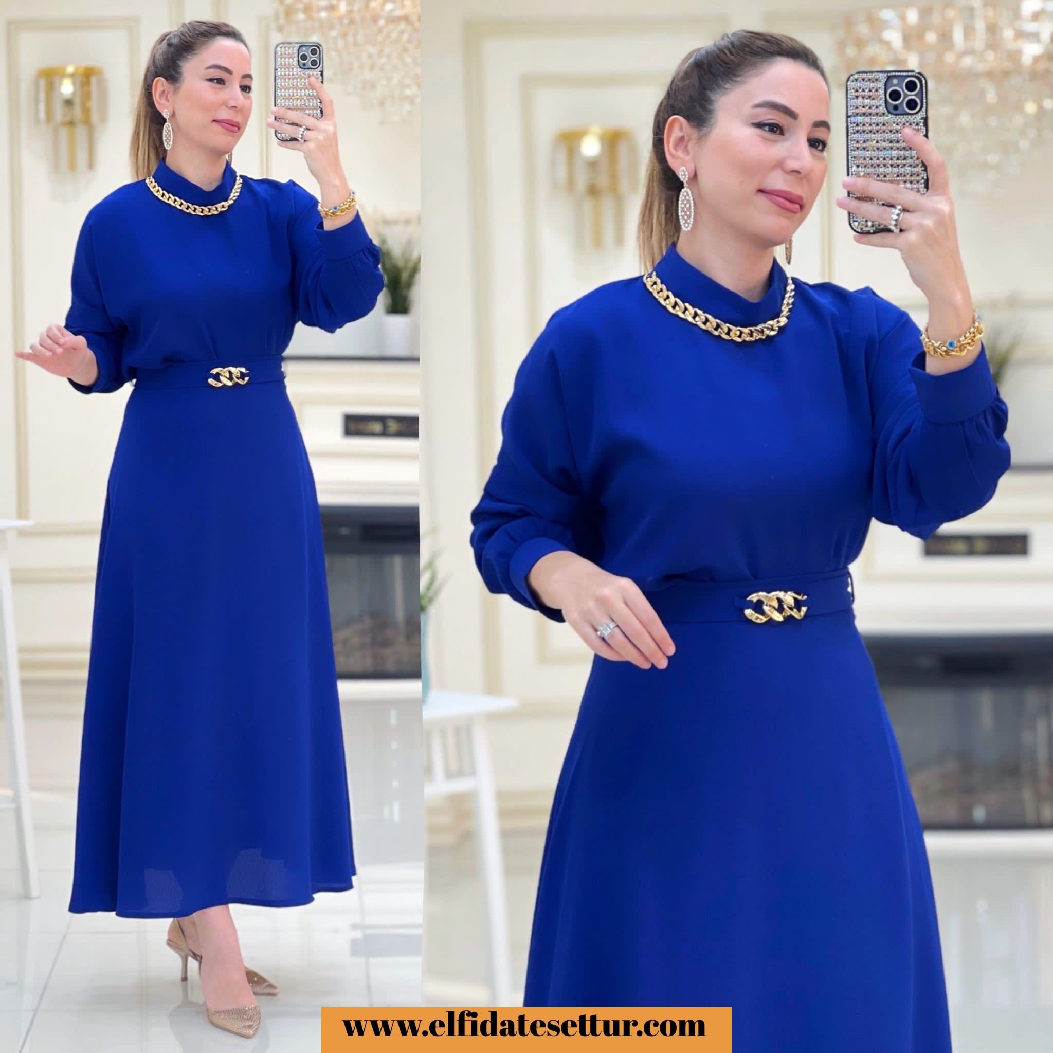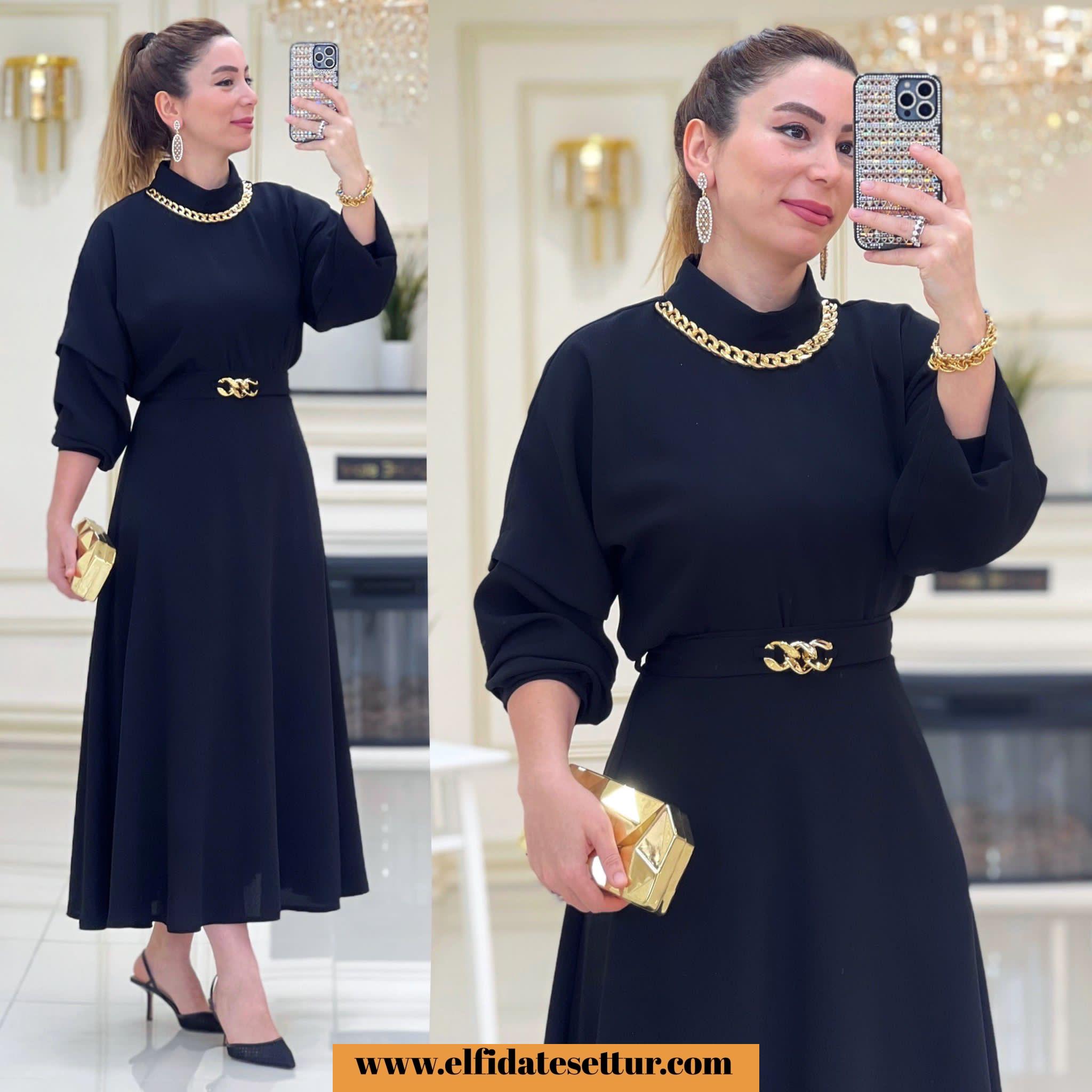 1. Sınıf İthal Krep Kumaştır. 38 Beden Ölçüsü: Tunik boy: 70 cm Etek boy: 95 cm Etek bel: 38 cm Yaka kısım ve etek bel kısmı zincir detaylıdır.