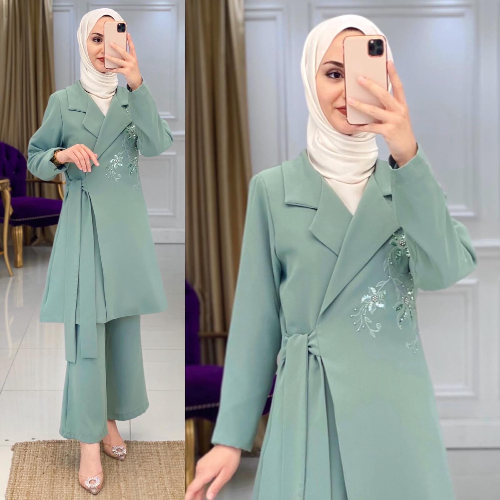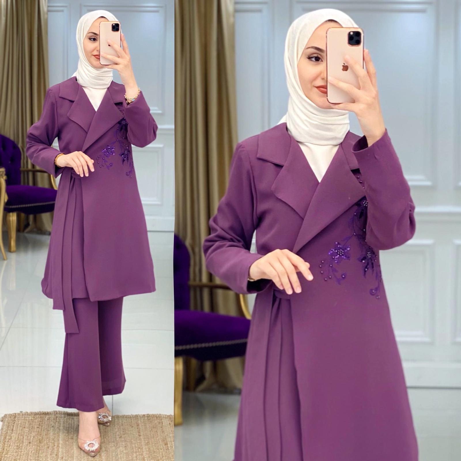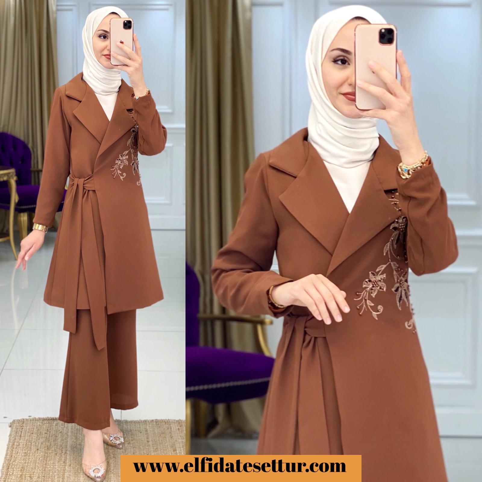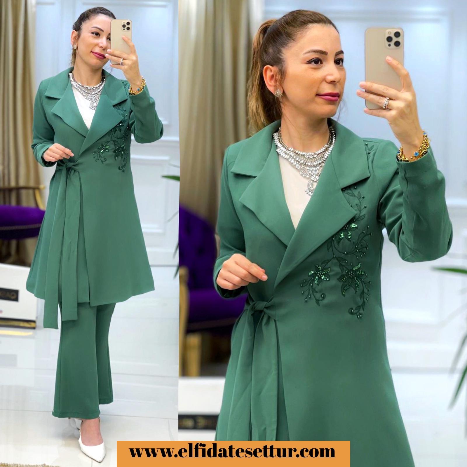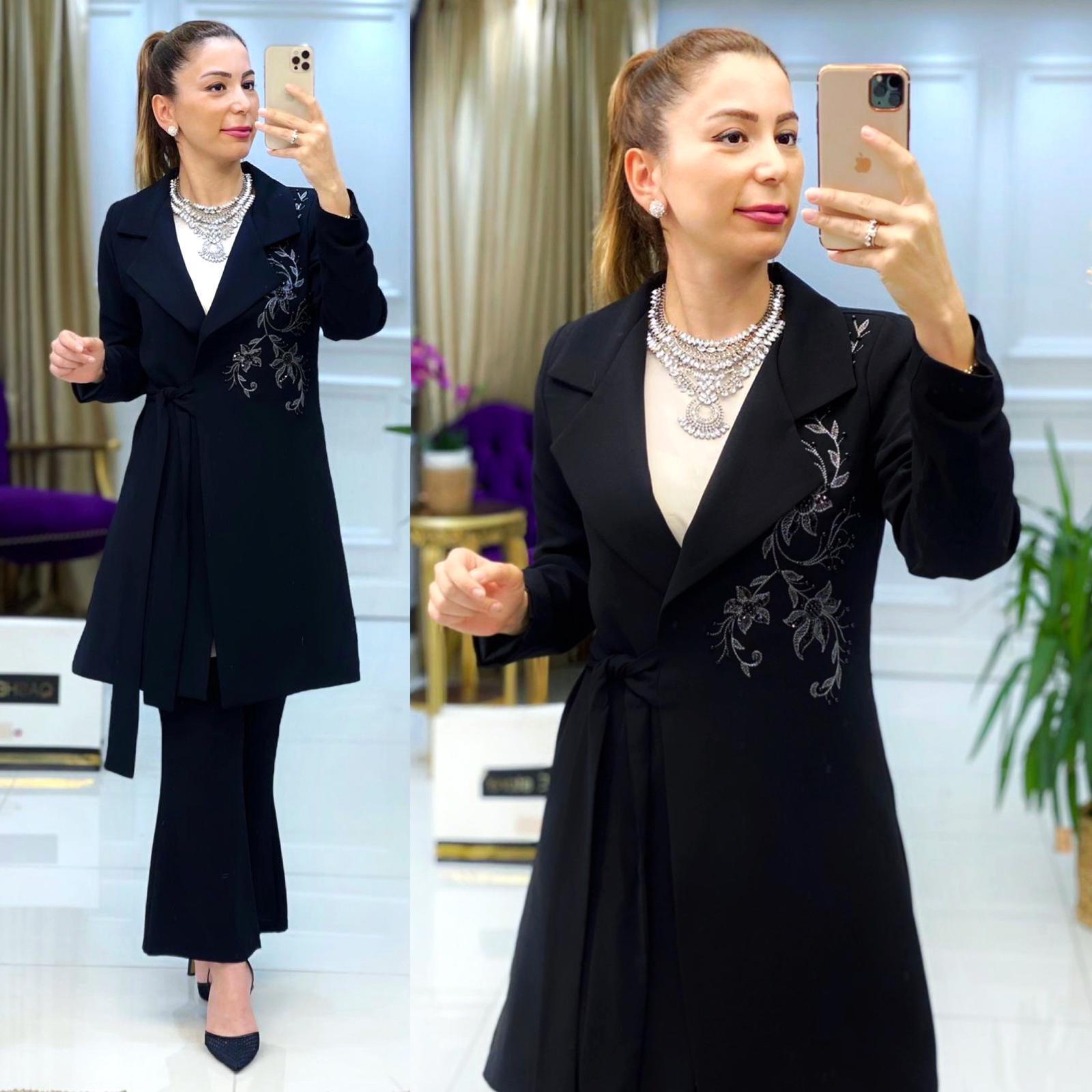 Ürün bilgileri: Birinci sınıf İthal Krep kumaştır. Ceket yandan bağlama detaylıdır. Sağ kısmı taş işlemelidir. Ceket vatkalıdır. Ceket kol kısmına kadar astarlıdır.