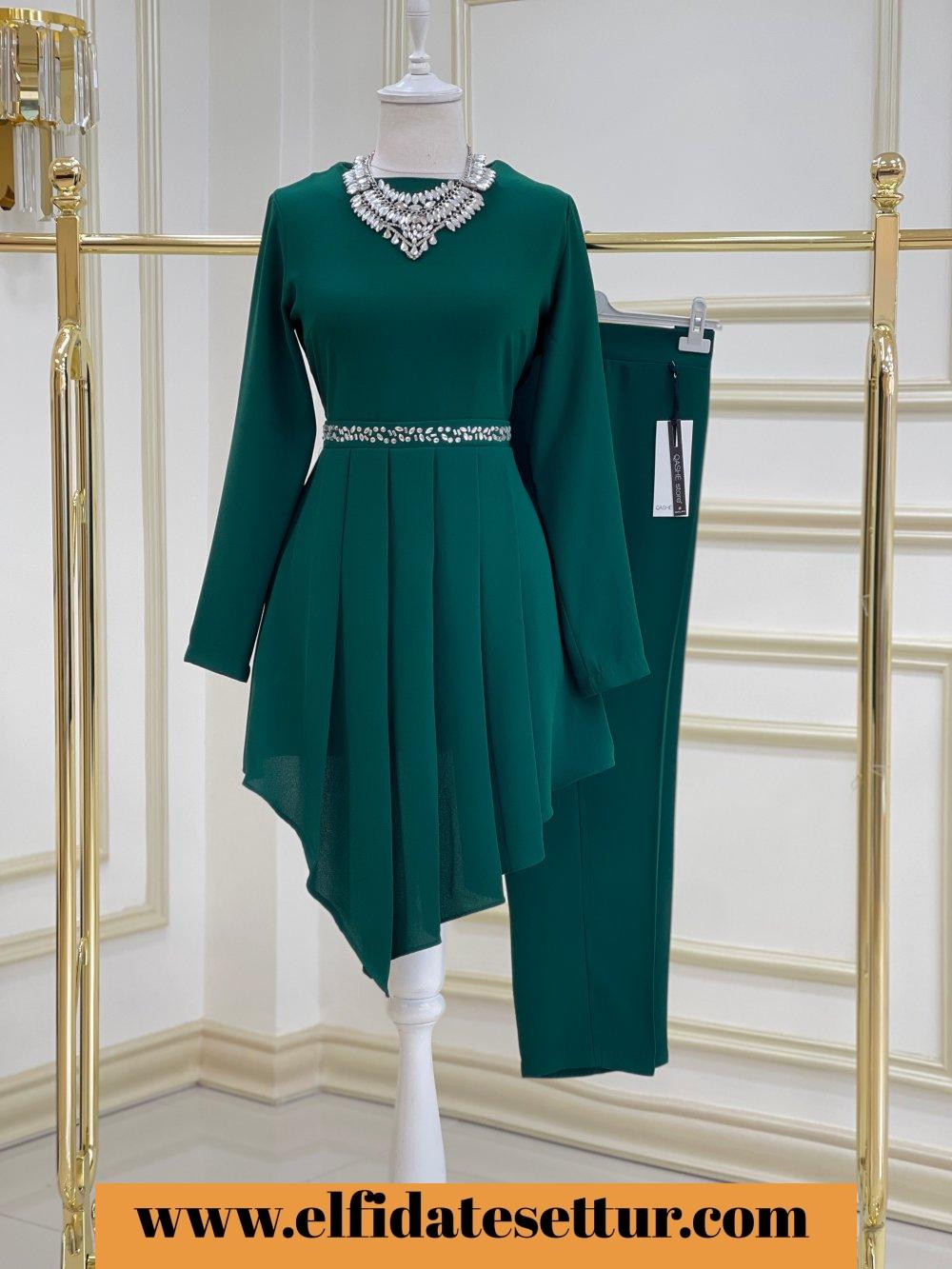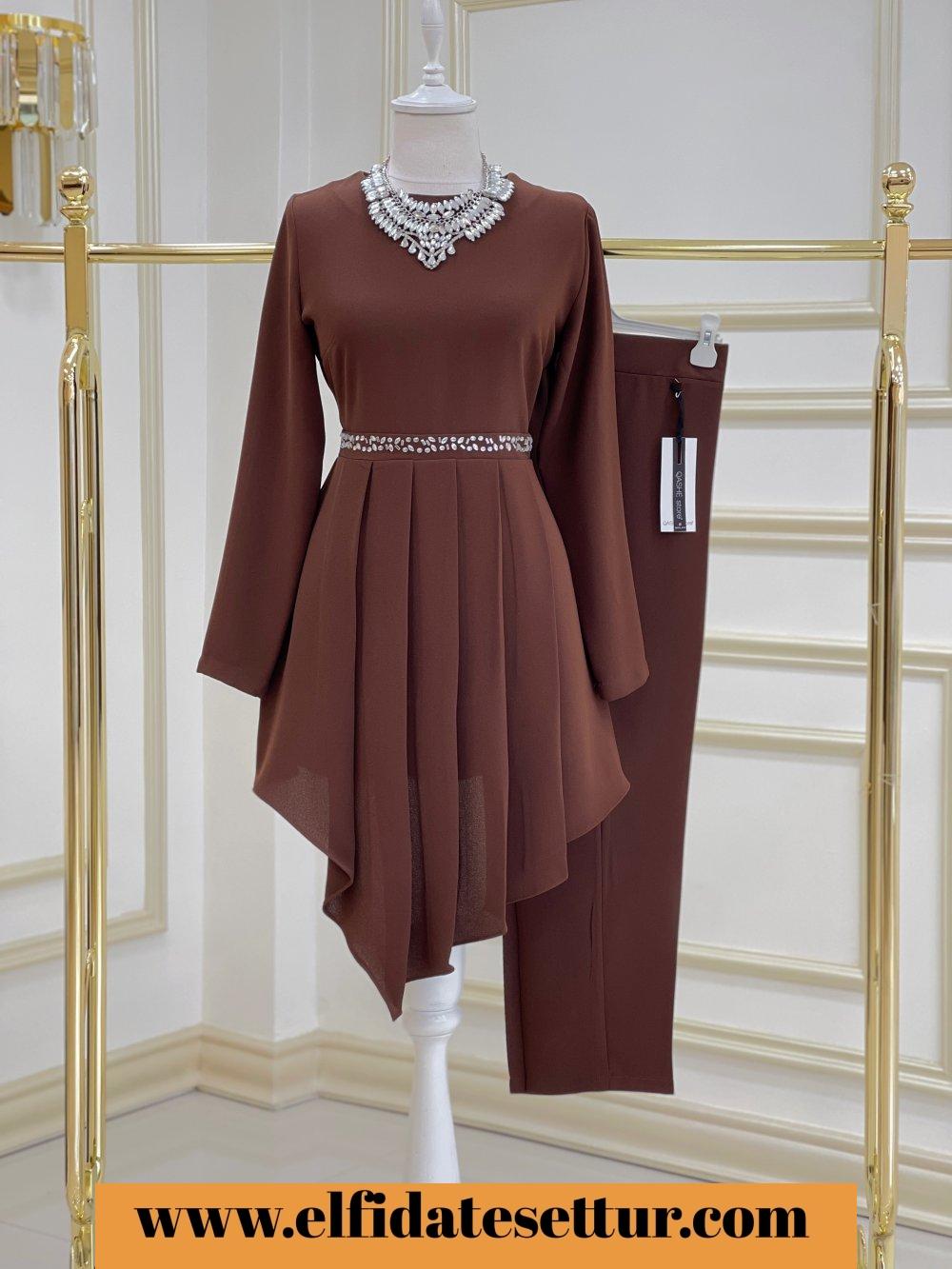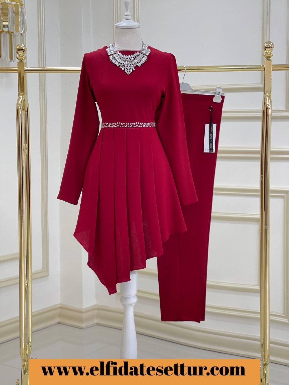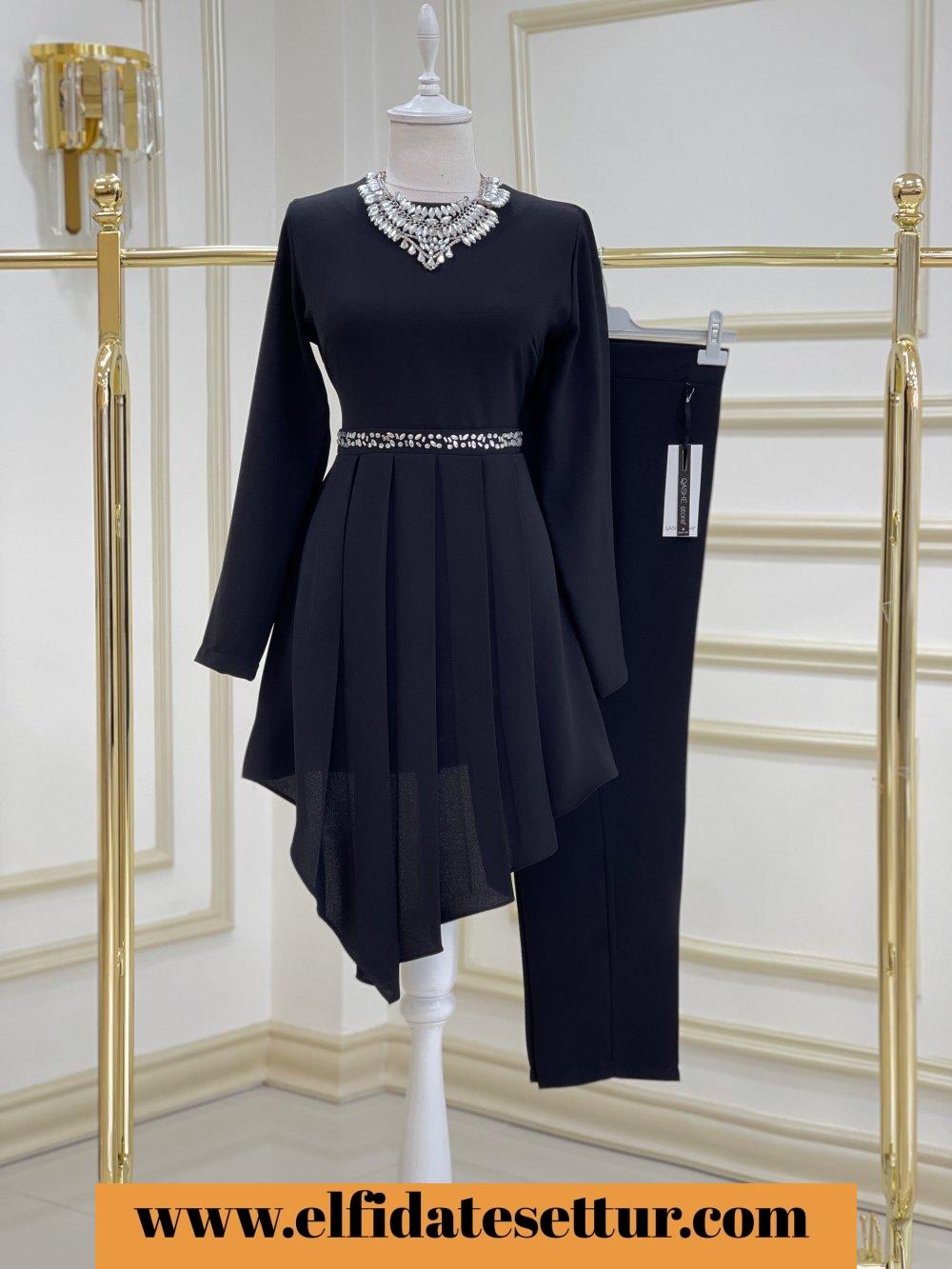 1. Sınıf İthal Krep Kumaştır. 38 Beden Ölçüsü: Tunik boy: 105 Göğüs: 98 cm Omuz: 37 cm Tunik bel kısmı taş detaylıdır. Pantolon boy: 95 cm Pantolon beli lastiklidir.
