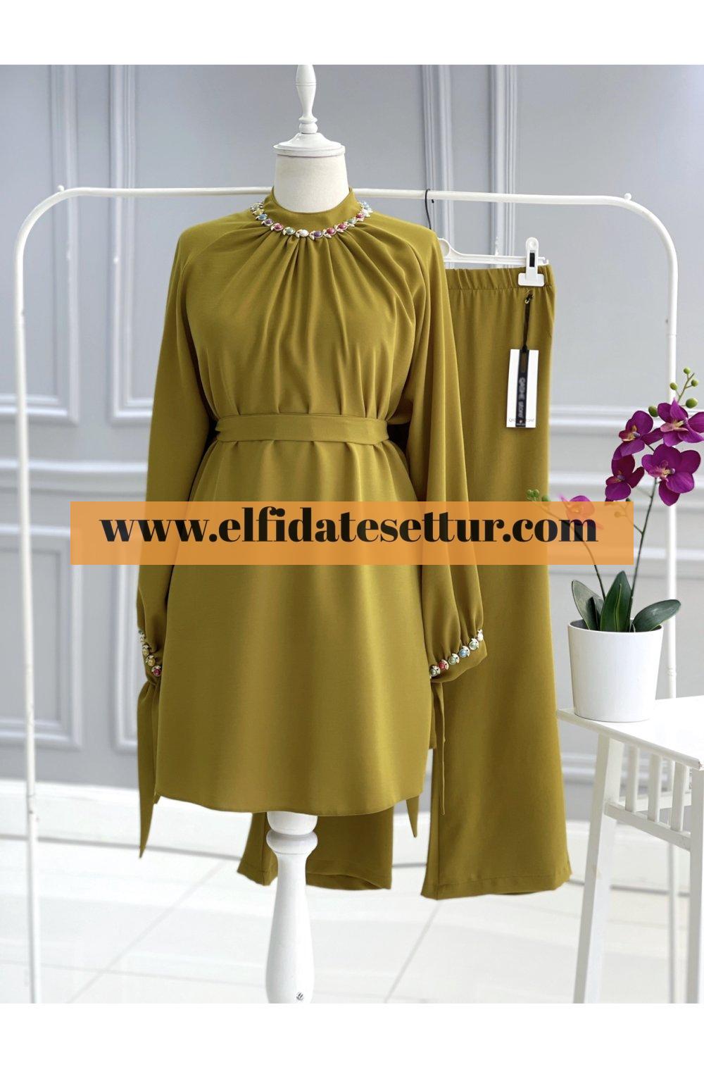 1. Sınıf İthal Krep Kumaştır. Tunik boy: 90 cm Pantolon boy: 95 cm pantolon beli lastiklidir. 1- 38 Beden aralığındadır. 2- 40 Beden aralığındadır. 3- 42 Beden aralığındadır. 4- 44 Beden aralığındadır. 5- 46 Beden aralığındadır. 6- 48 Beden aralığındadır.