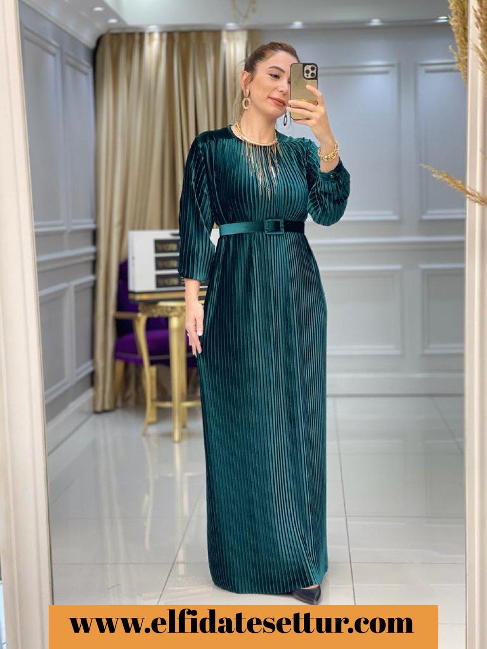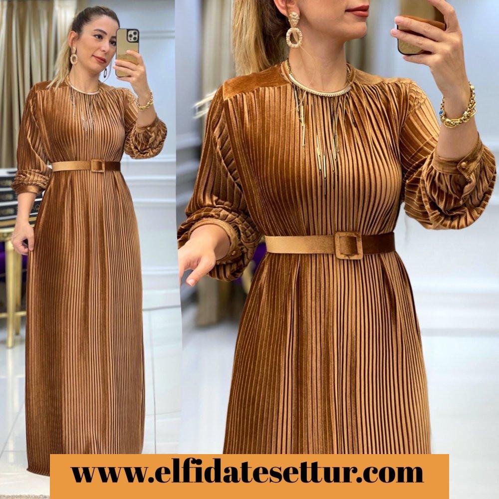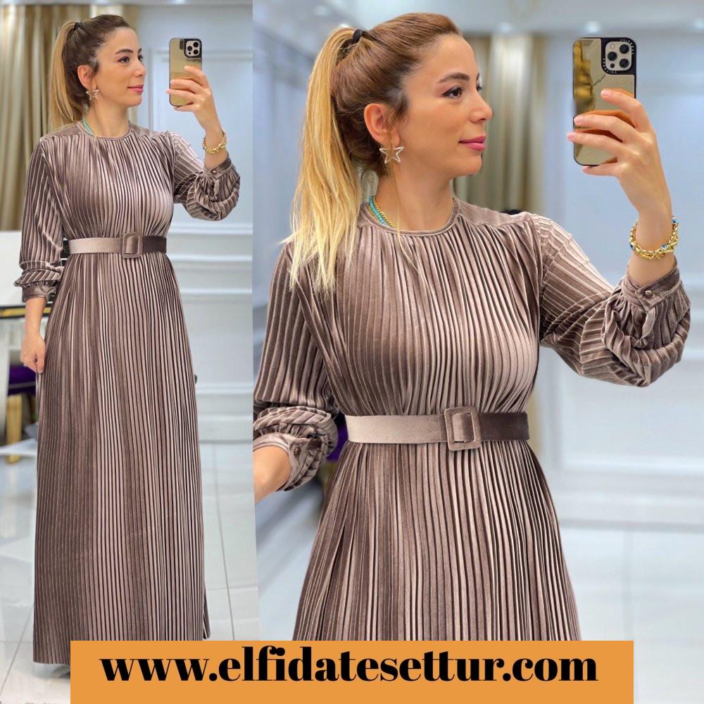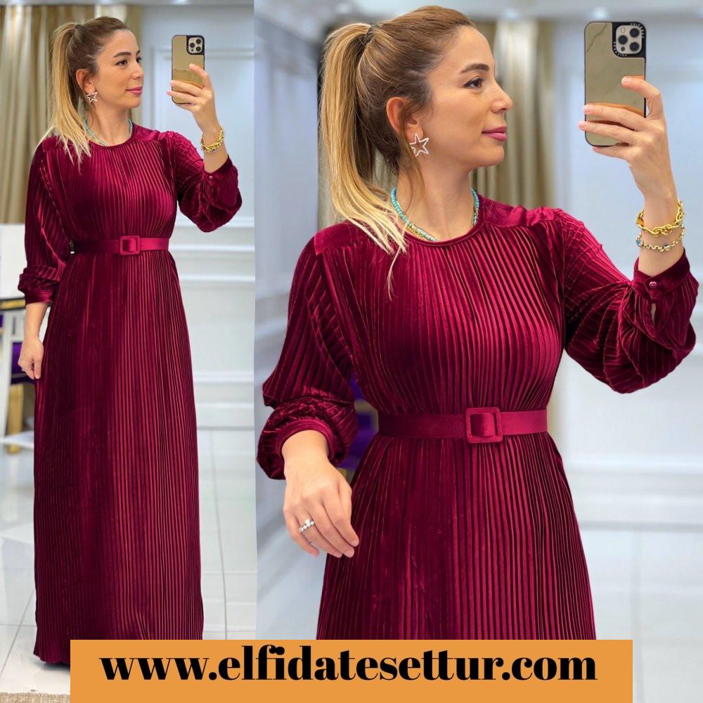 🌷ROJDA KADİFE PİLİSELİ ELBİSE