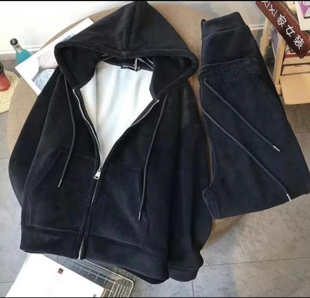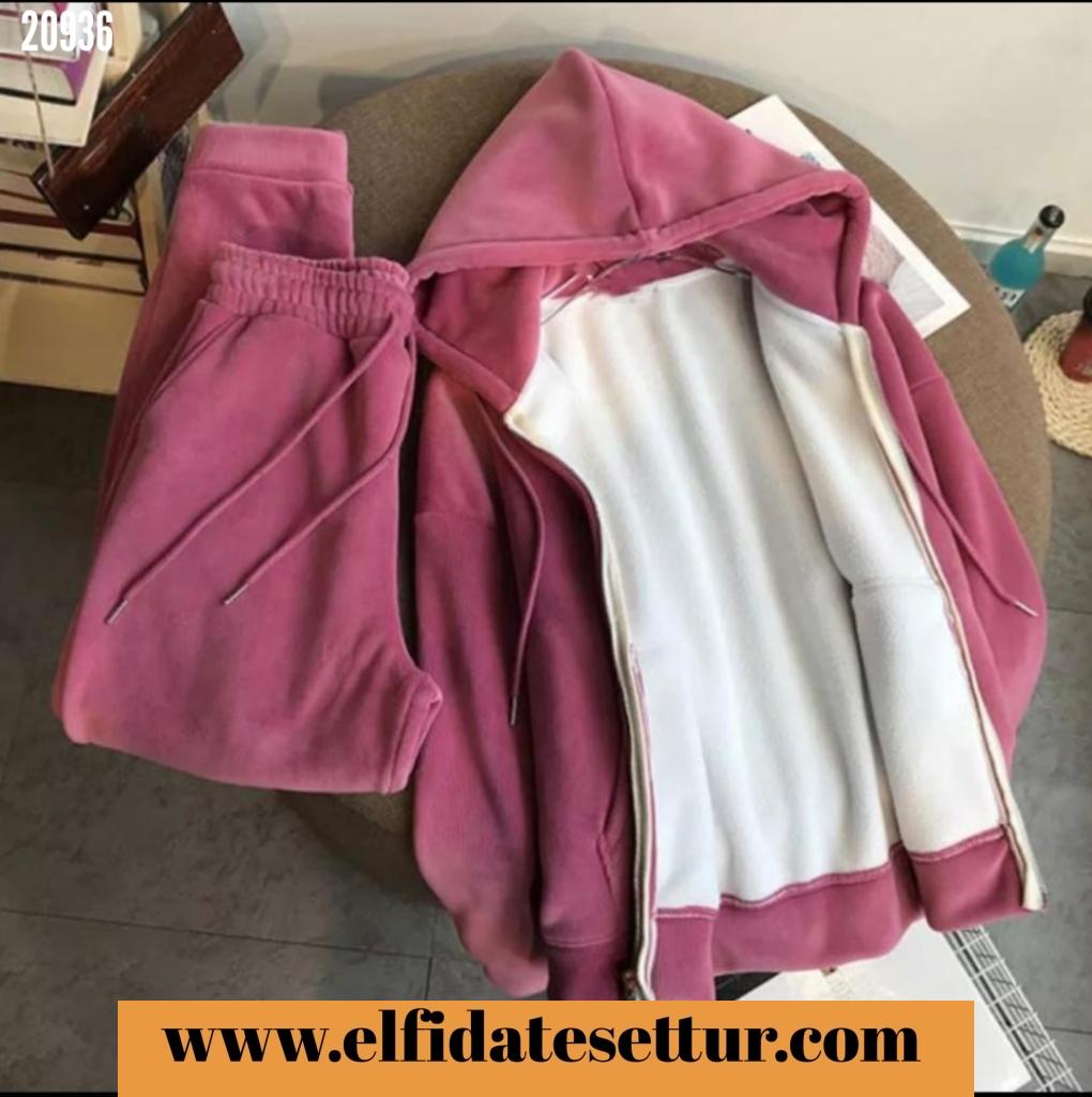 ❤️İçi polar kapüşonlu fermuarlı ithal kadife takım