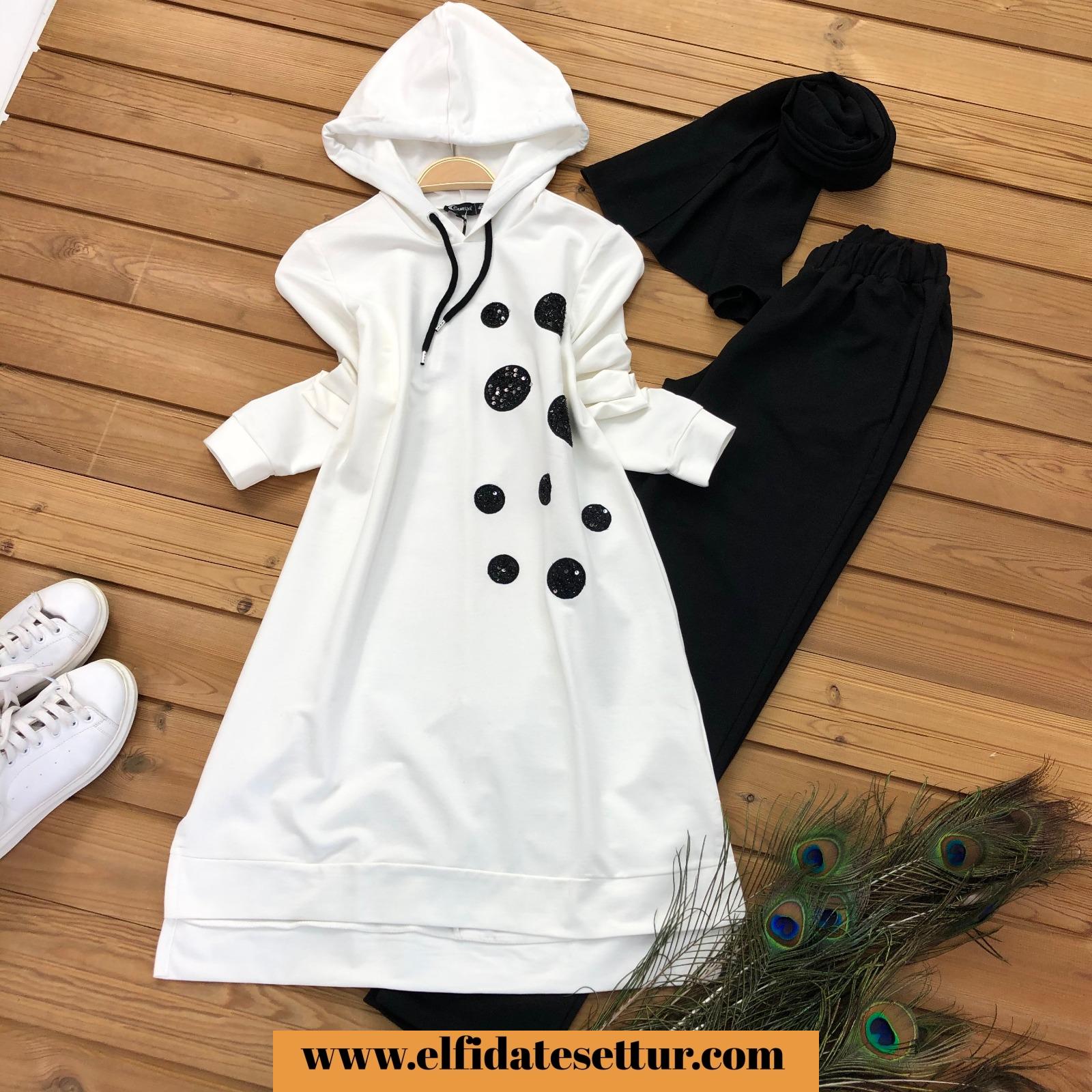 Tam kalıp birebir bedendir. Mevsimliktir. Pantolon beli lastiklidir. Kapüşonlu ve yakası bağcıklıdır. Hafif esneme payı vardır.
