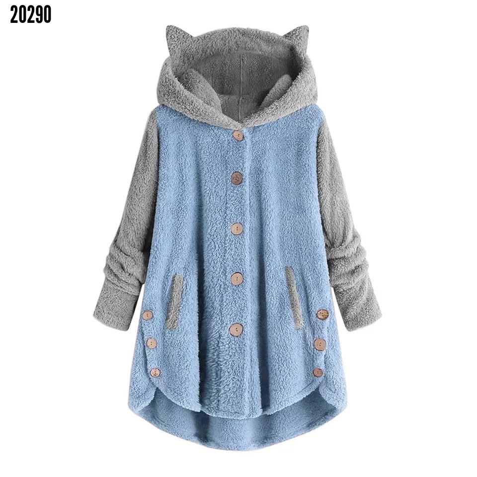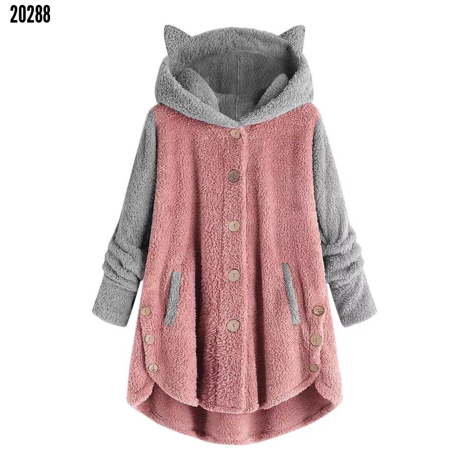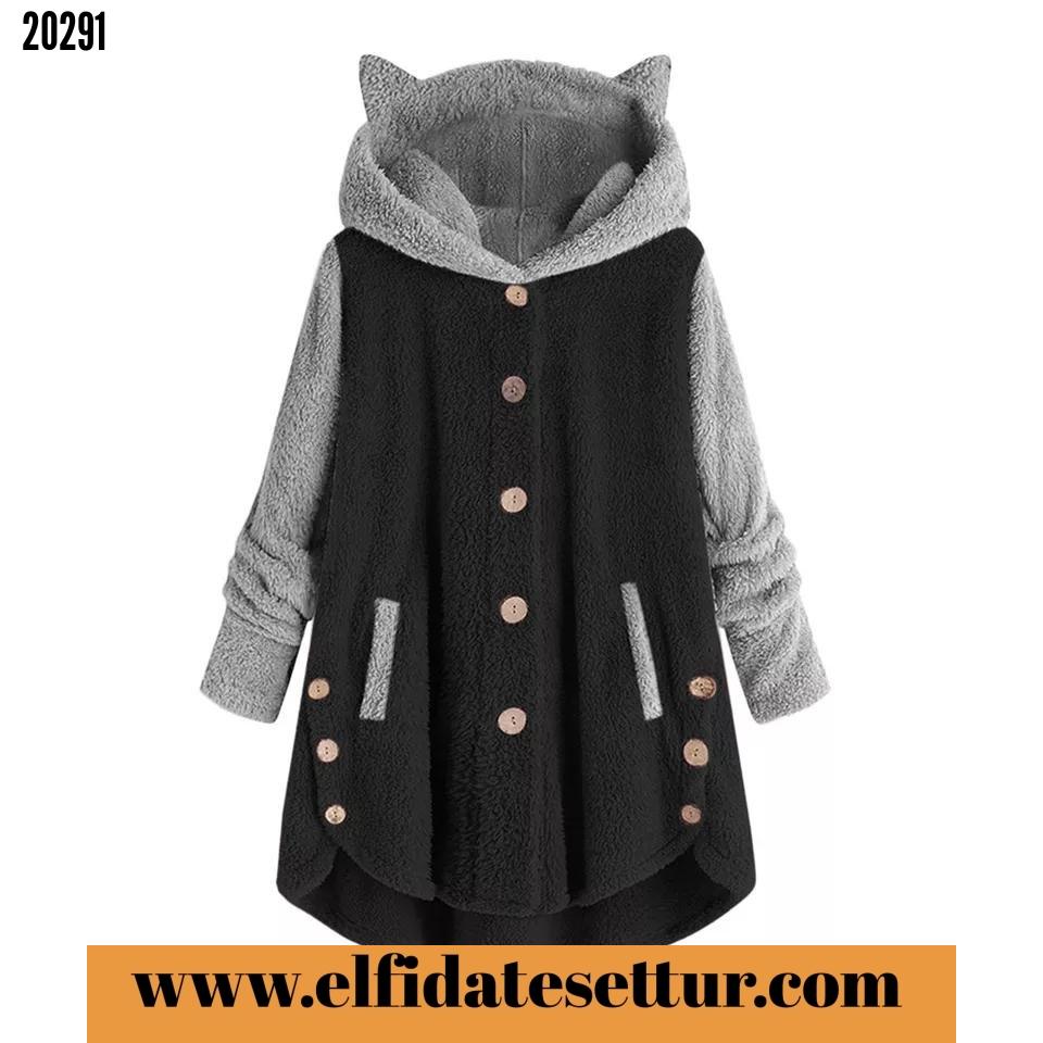 ❤️Kapşonlu düğme detay peluş ceket
